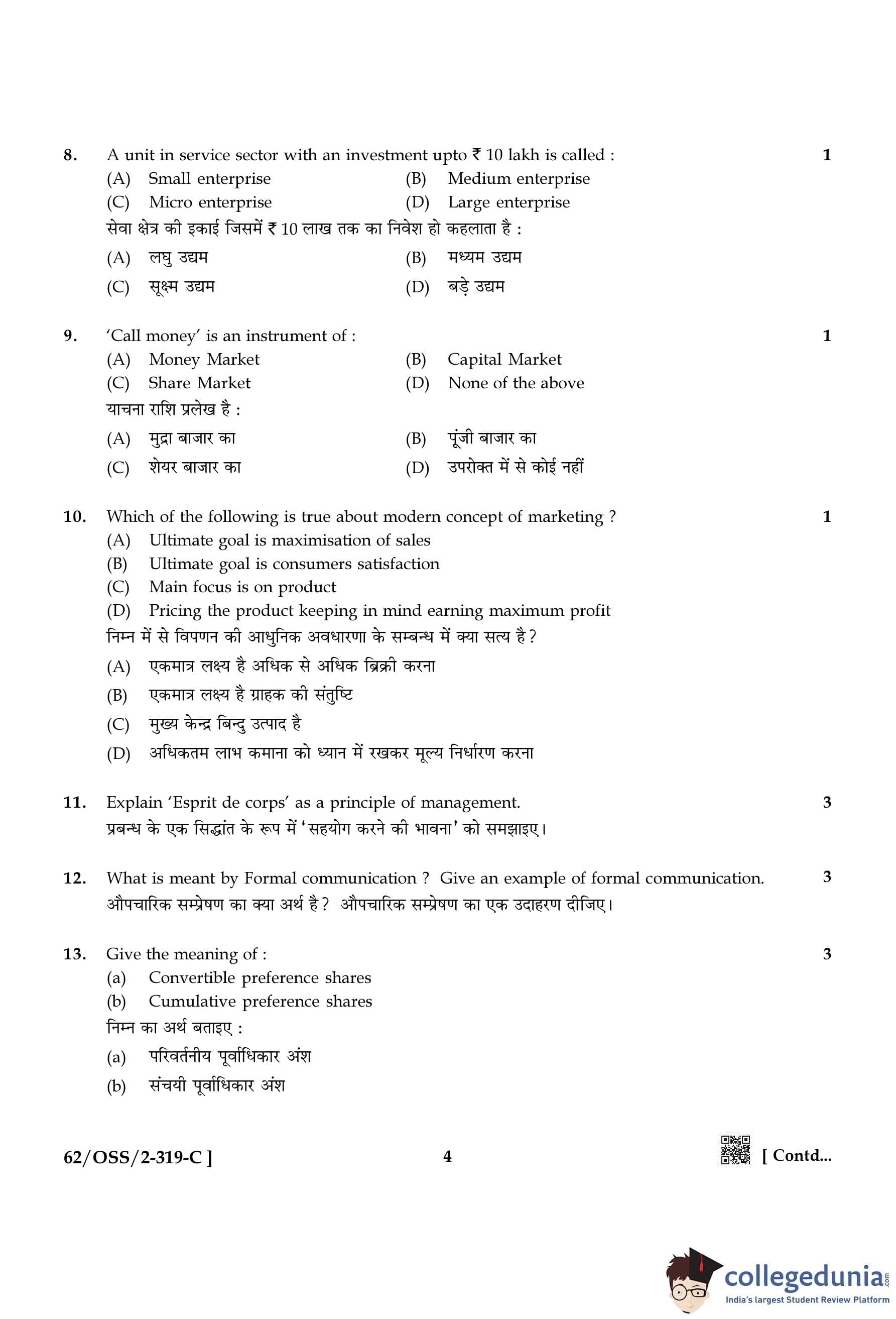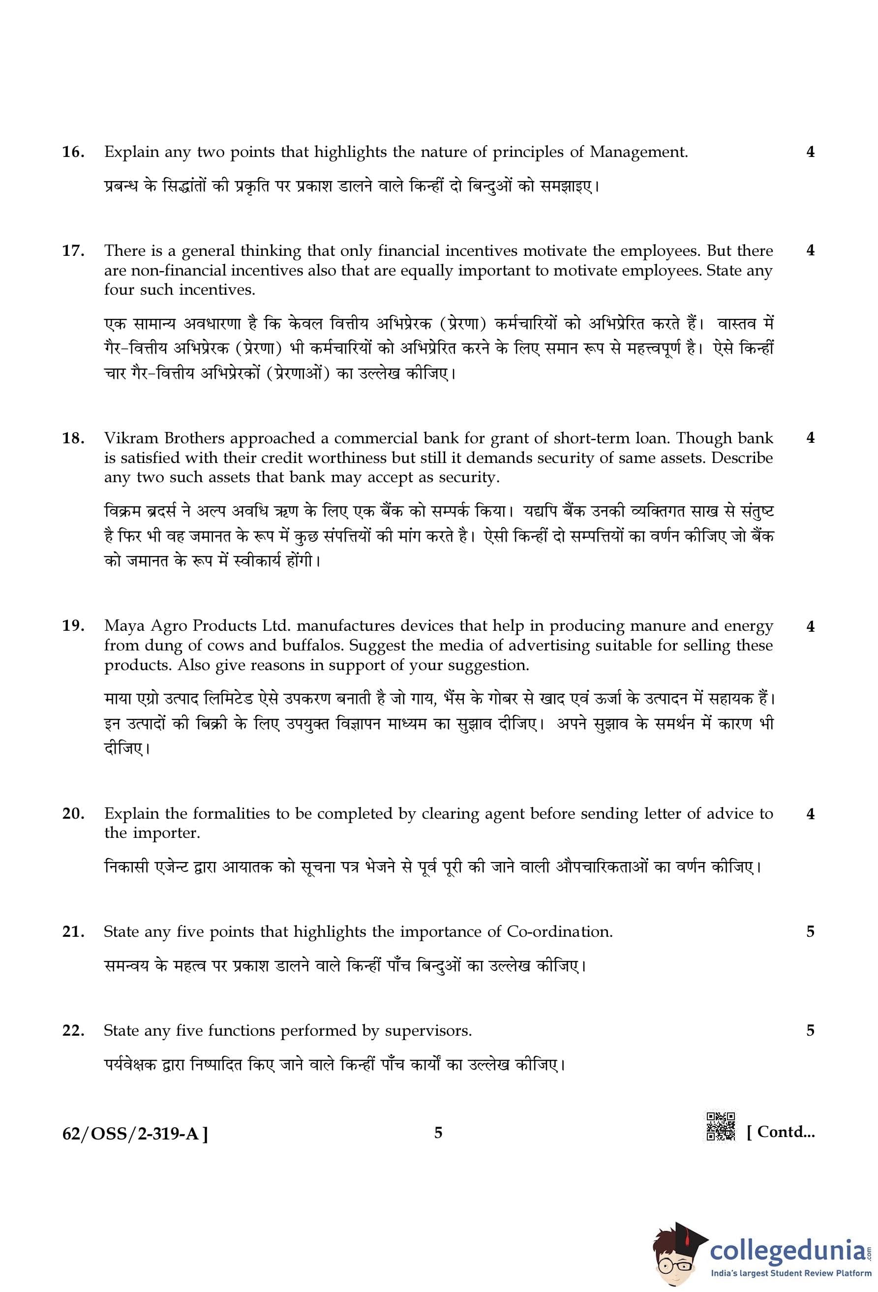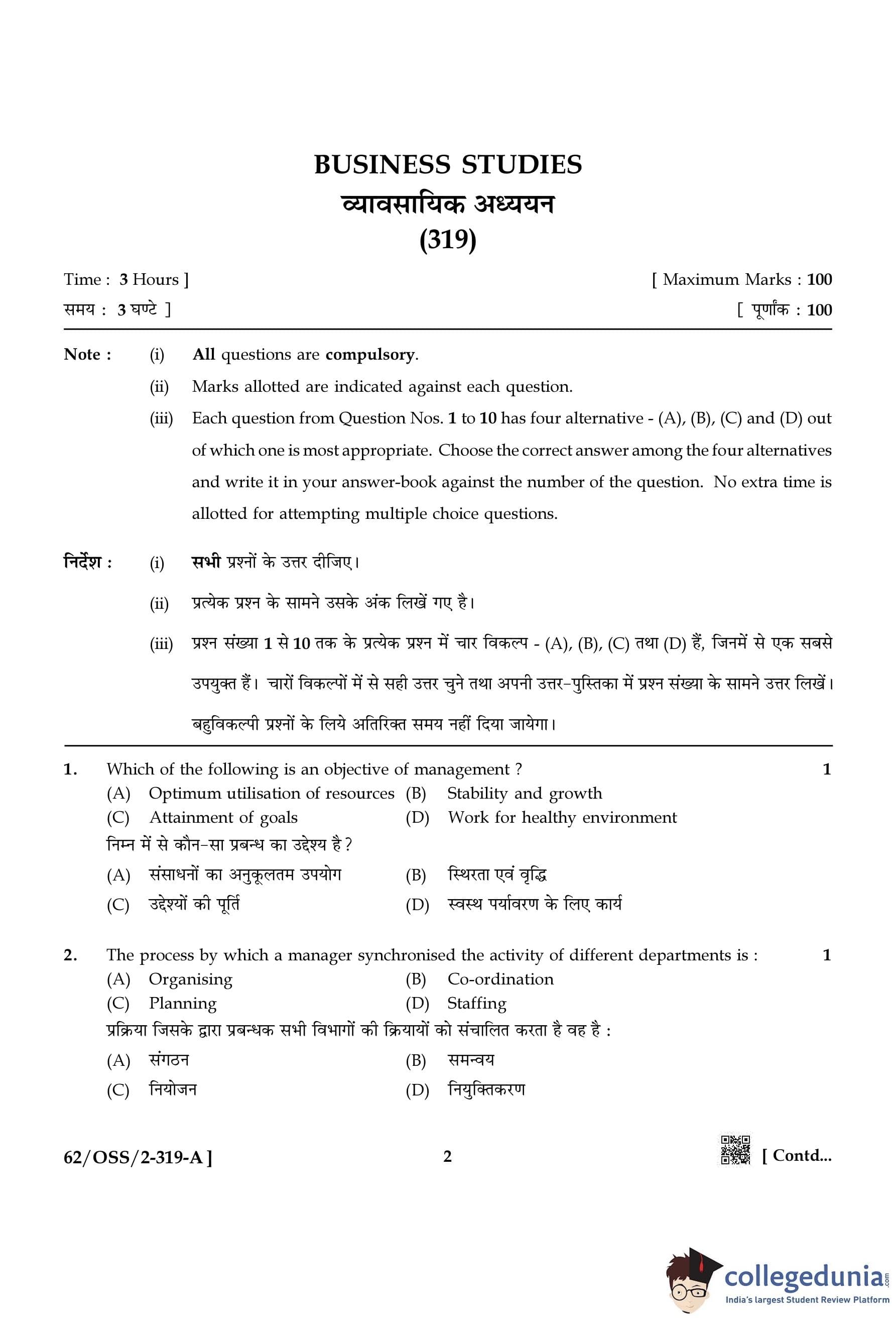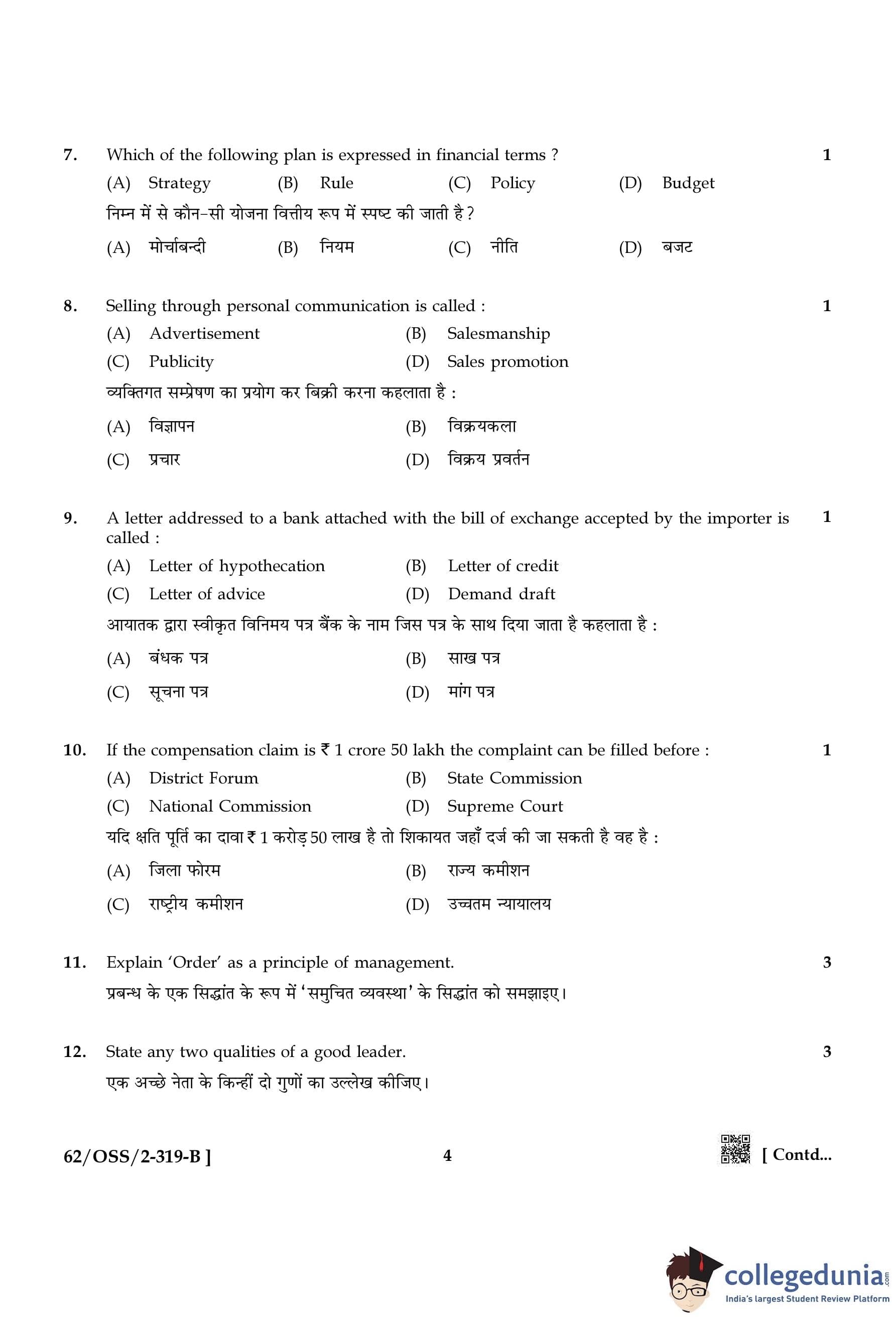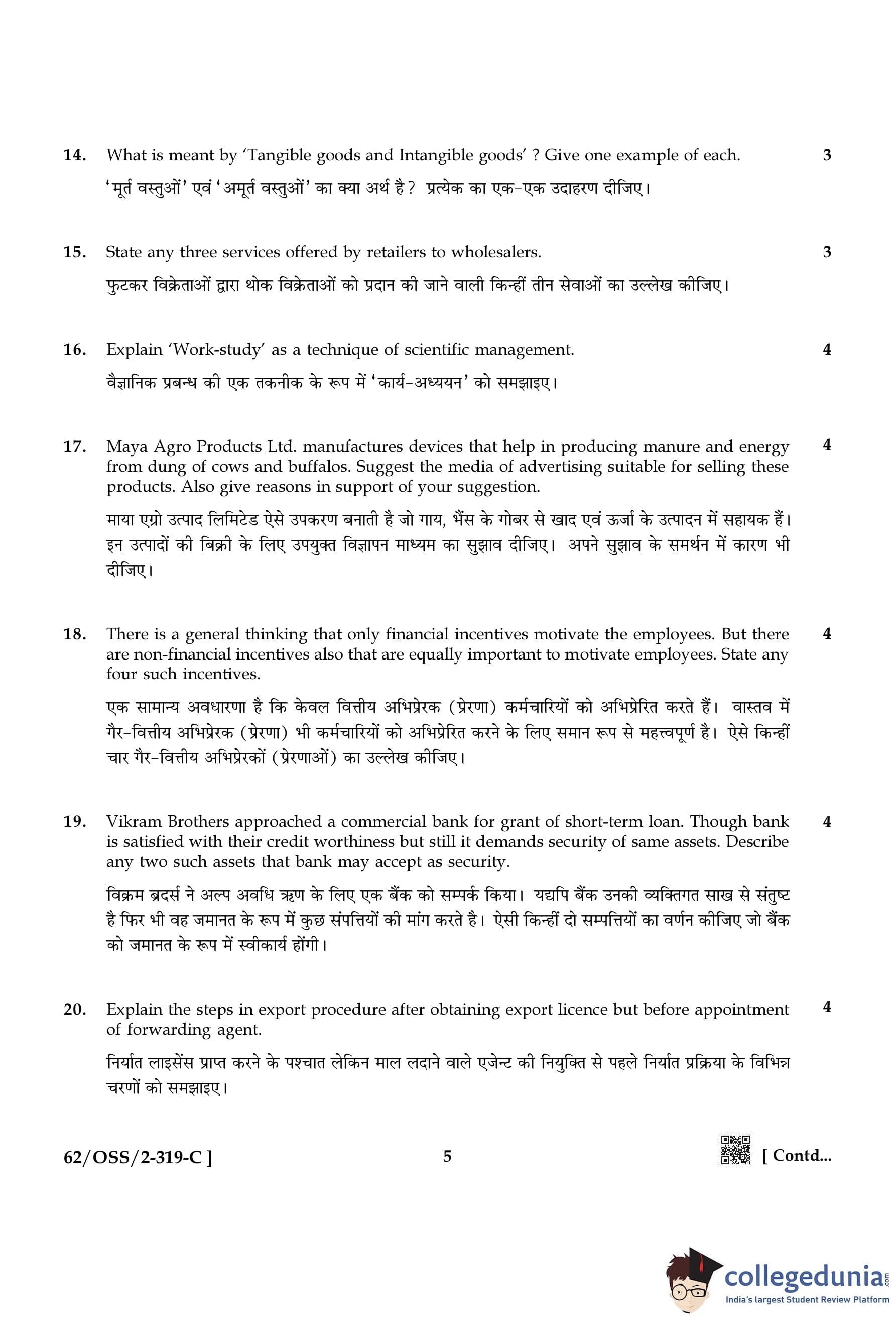 NIOS Class 12 Business Studies Compartment Question Paper 2021 with Answer Key