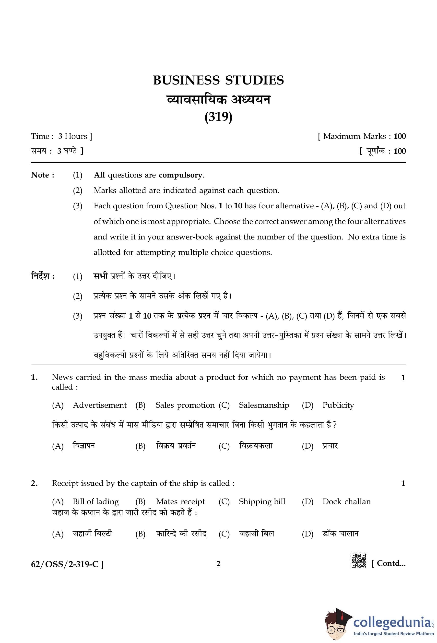 | NIOS Class 12 Business Studies Question Paper 2021 PDF | NIOS Class 12 Business Studies Answer Key 2021 PDF |