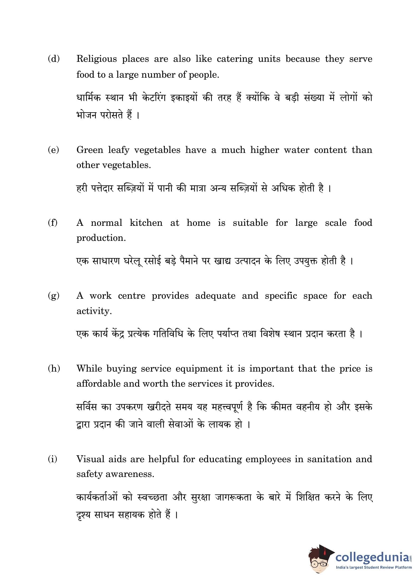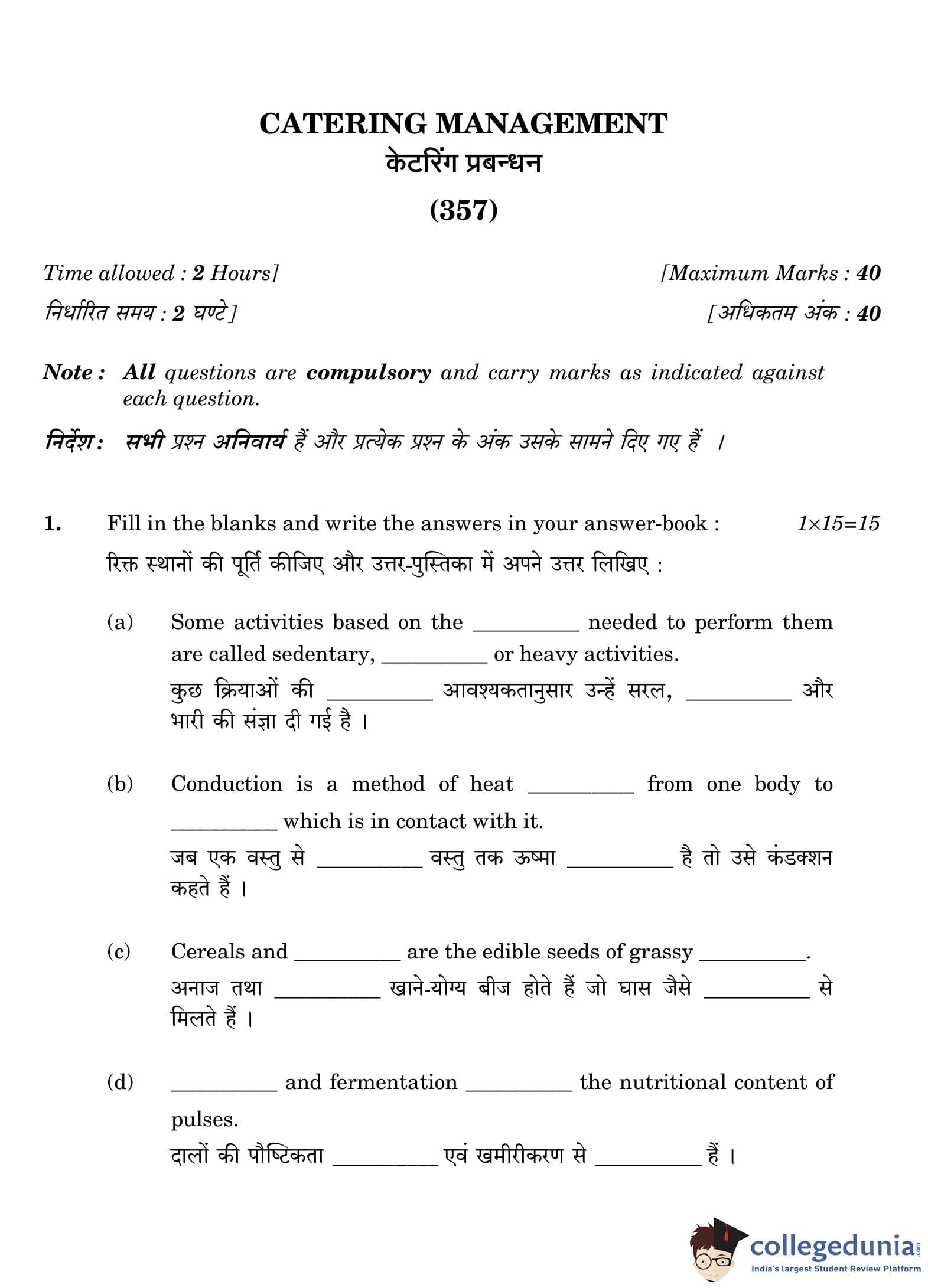 NIOS Class 12 Catering Management Compartment Question Paper 2022 with Answer Key