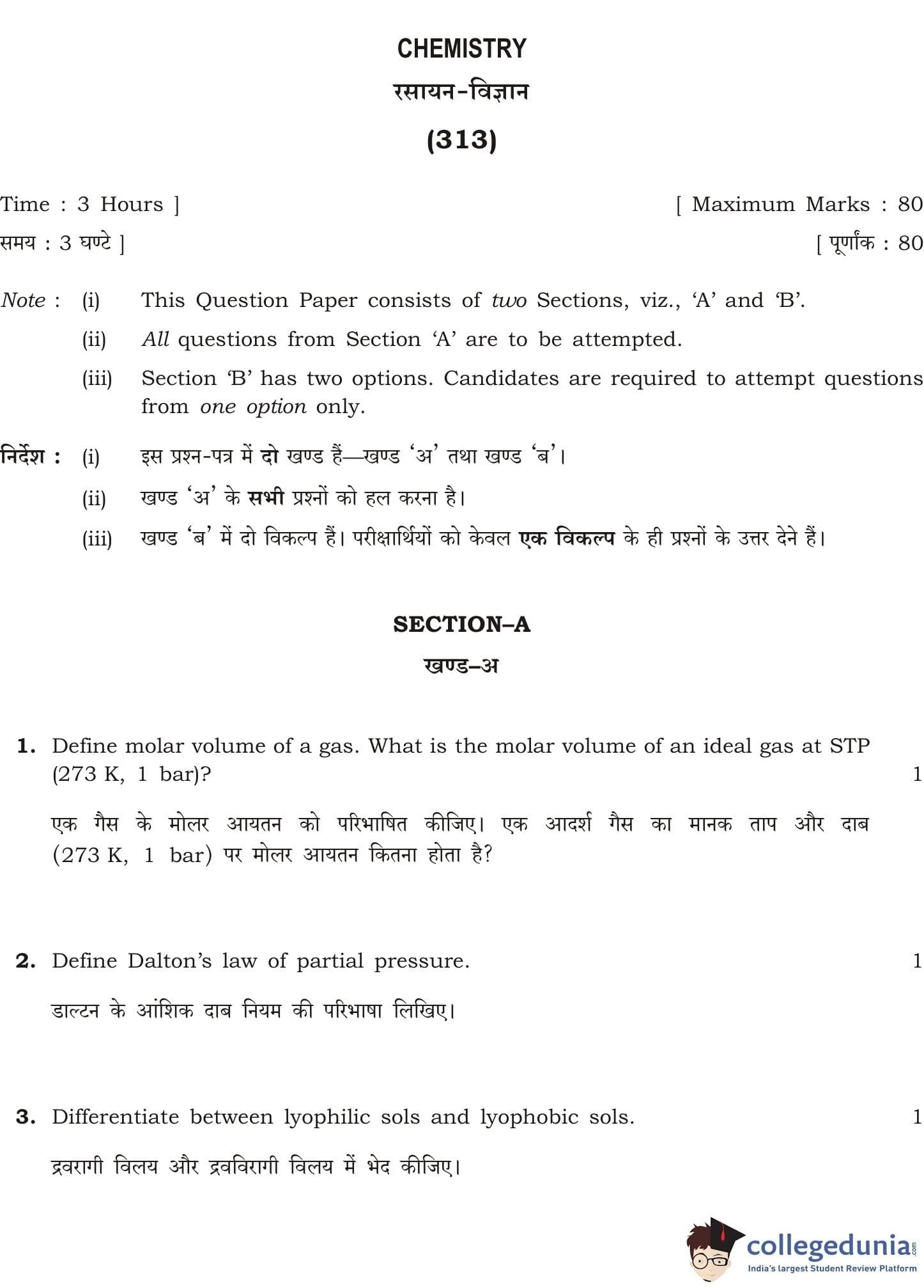 NIOS Class 12 Chemistry Compartment Question Paper 2014 with Answer Key pdf is available for download here. The exam was conducted by National Institute of Open Schooling on September 30, 2014 in the Afternoon Session 2:30 PM to 5:30 PM. The question paper comprised a total of 25 questions divided among 2 sections.