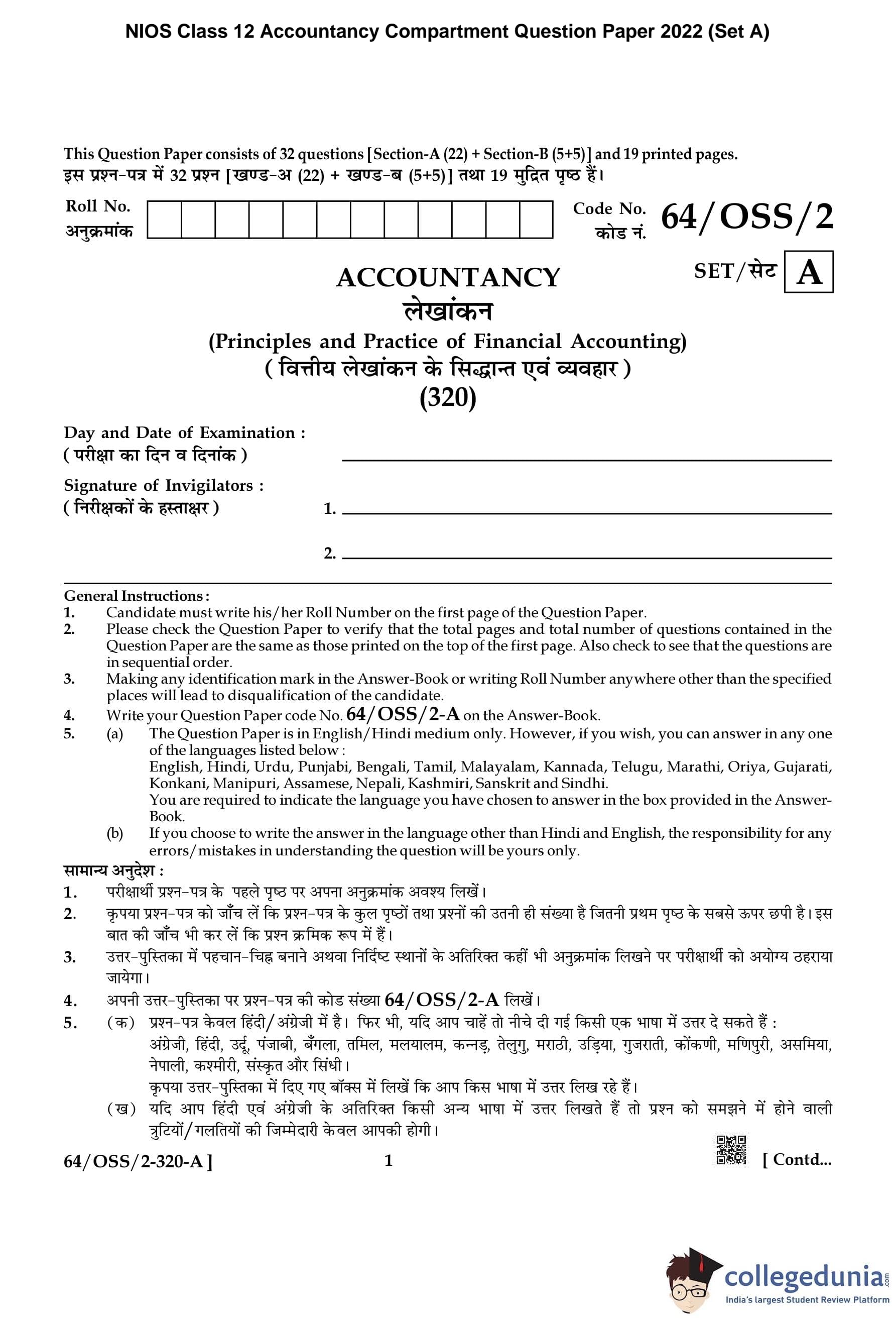NIOS Class 12 Computer Science Compartment Question Paper 2022 with Answer Key pdf (Set C) is available for download here. The exam was conducted by National Institute of Open Schooling on November 19, 2022 in the Afternoon Session 2:30 PM to 5:30 PM. The question paper comprised a total of 31 questions.