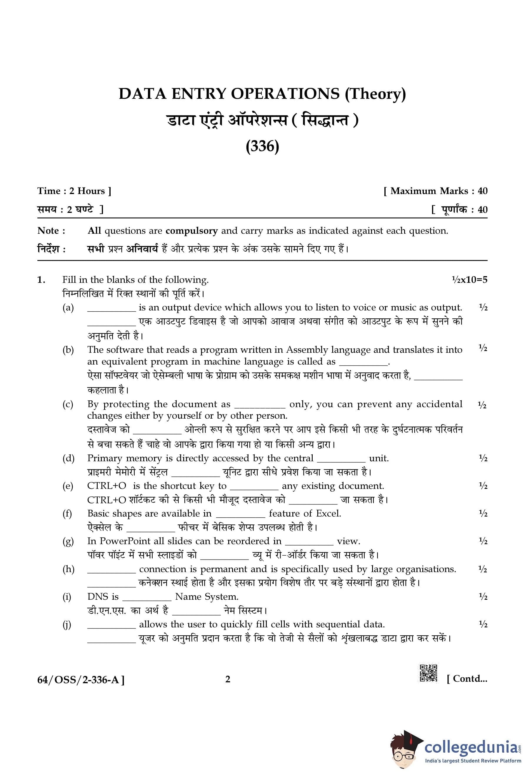 | NIOS Class 12 Data Entry Operations Question Paper 2022 PDF | NIOS Class 12 Data Entry Operations Answer Key 2022 PDF |