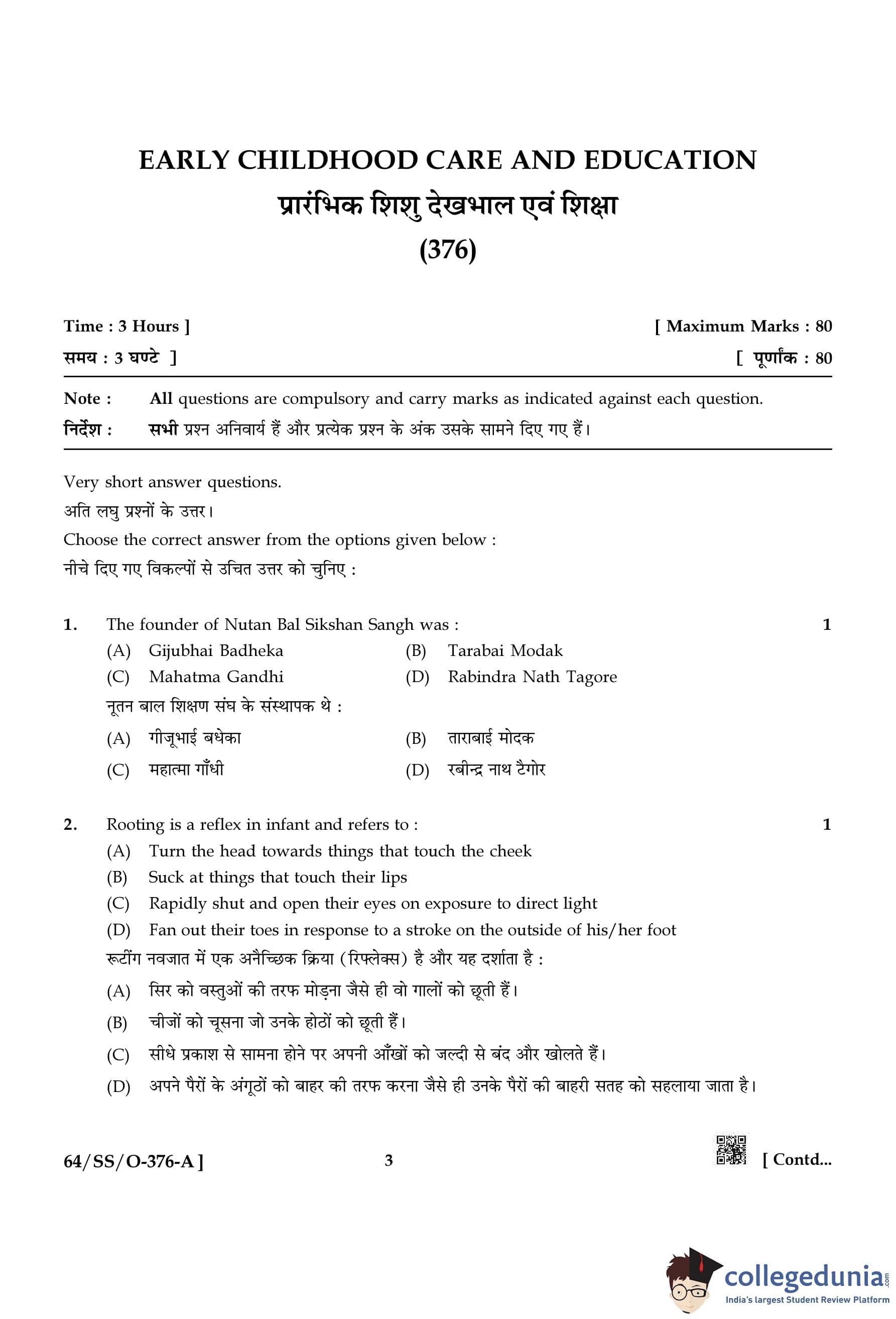 | NIOS Class 12 Early Childhood Care and Education Question Paper 2022 PDF | NIOS Class 12 Early Childhood Care and Education Answer Key 2022 PDF |