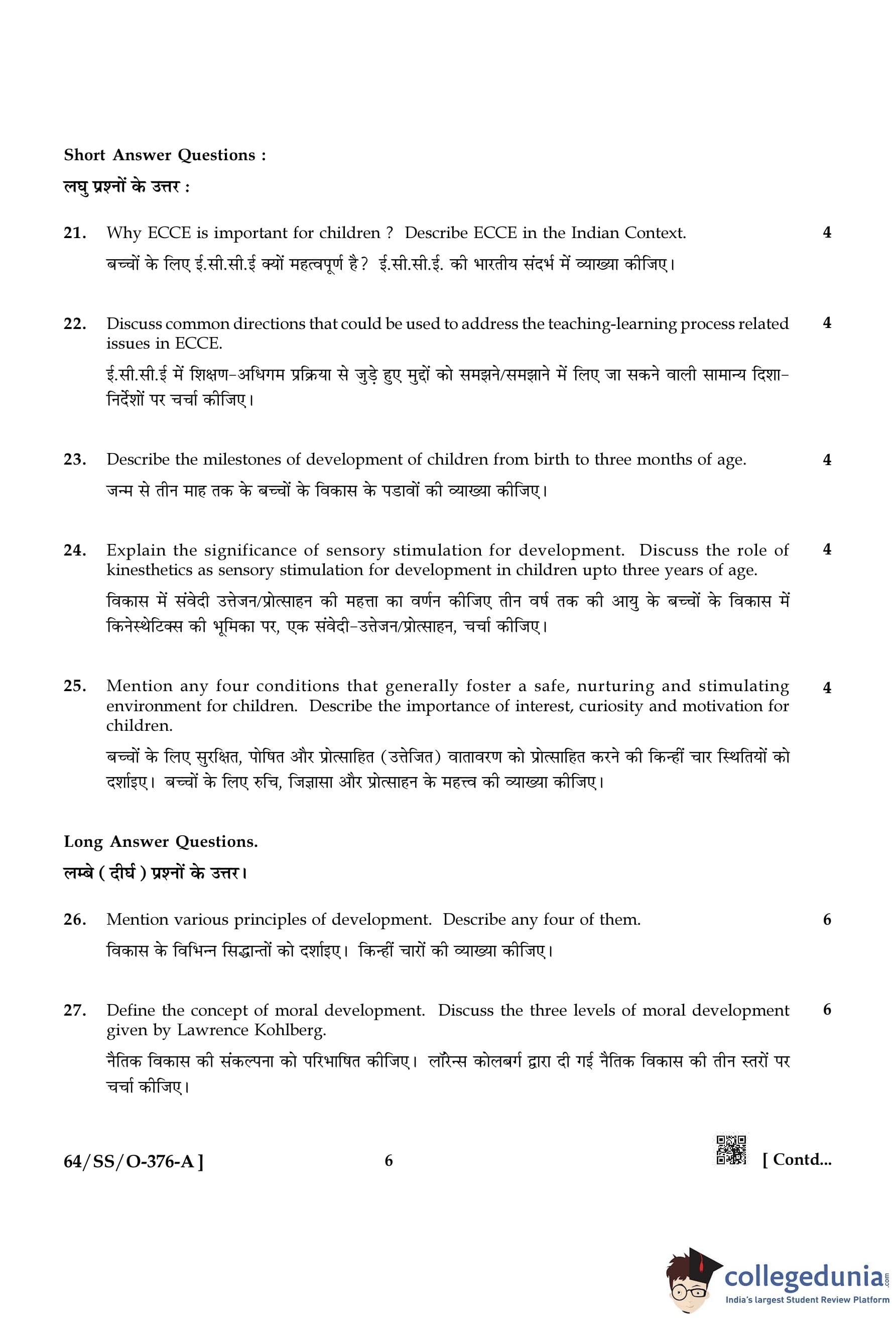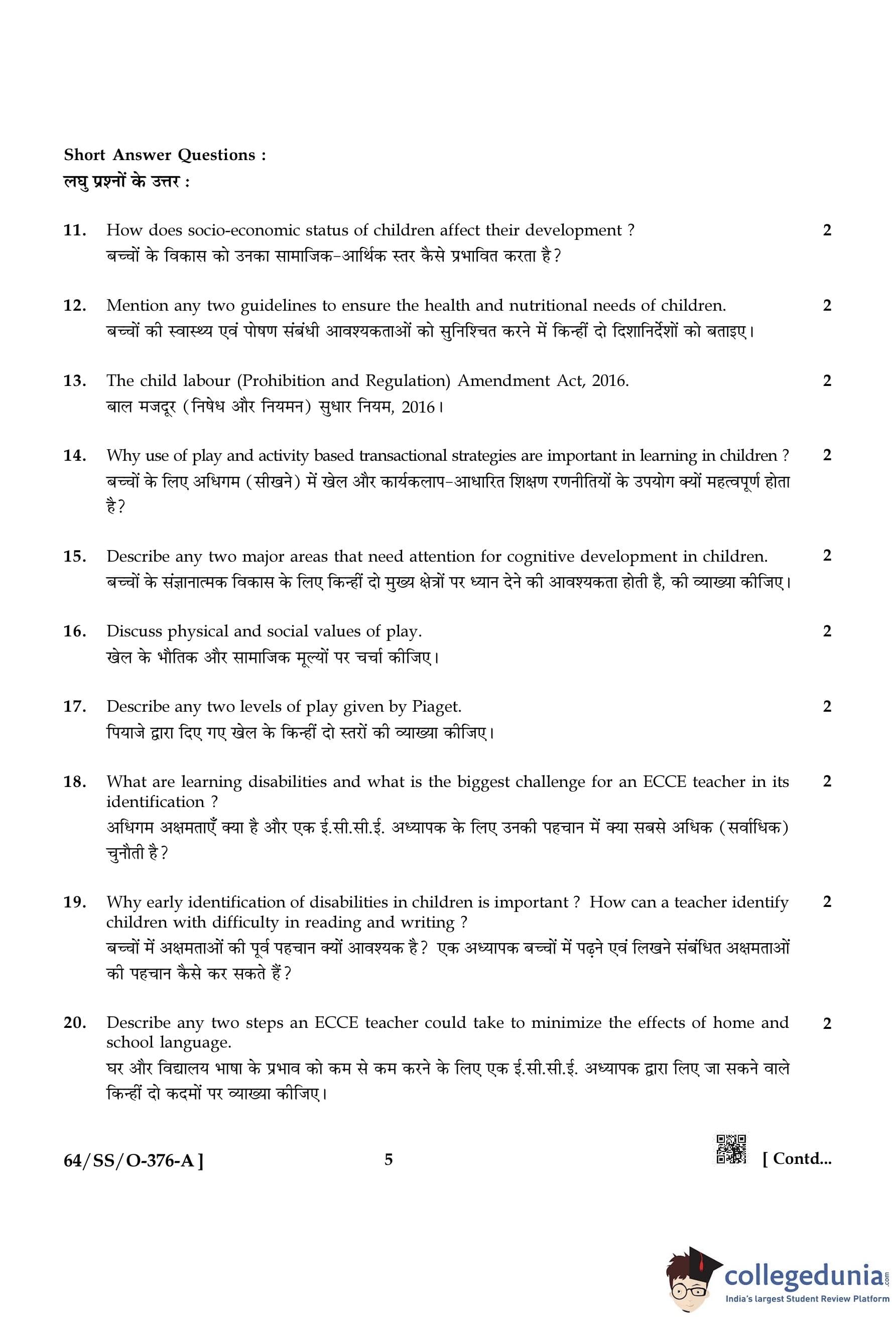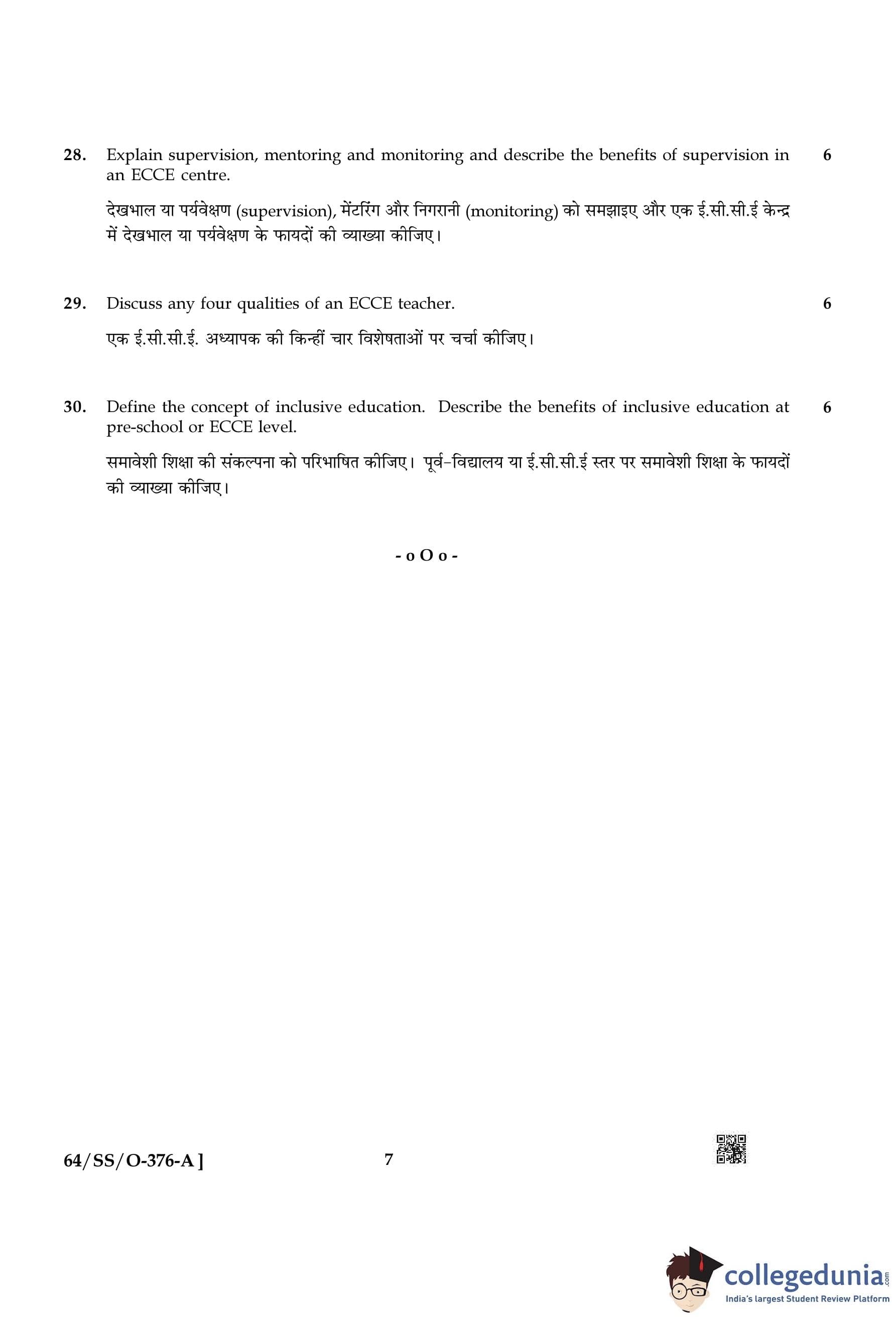 NIOS Class 12 Early Childhood Care and Education Compartment Question Paper 2022 with Answer Key
