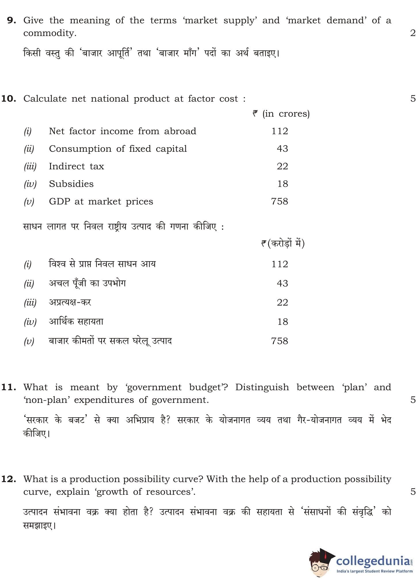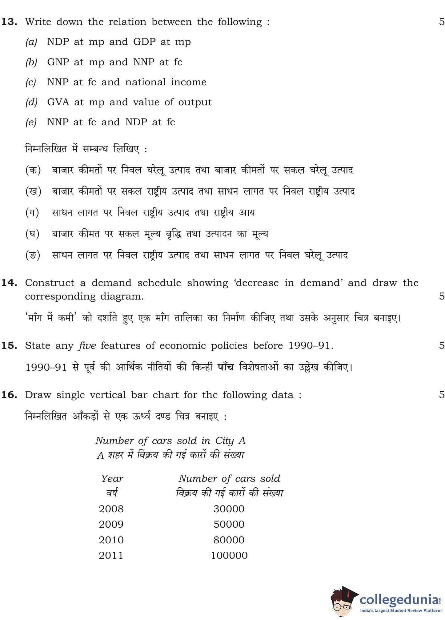 NIOS Class 12 Economics Compartment Question Paper 2013 with Answer Key