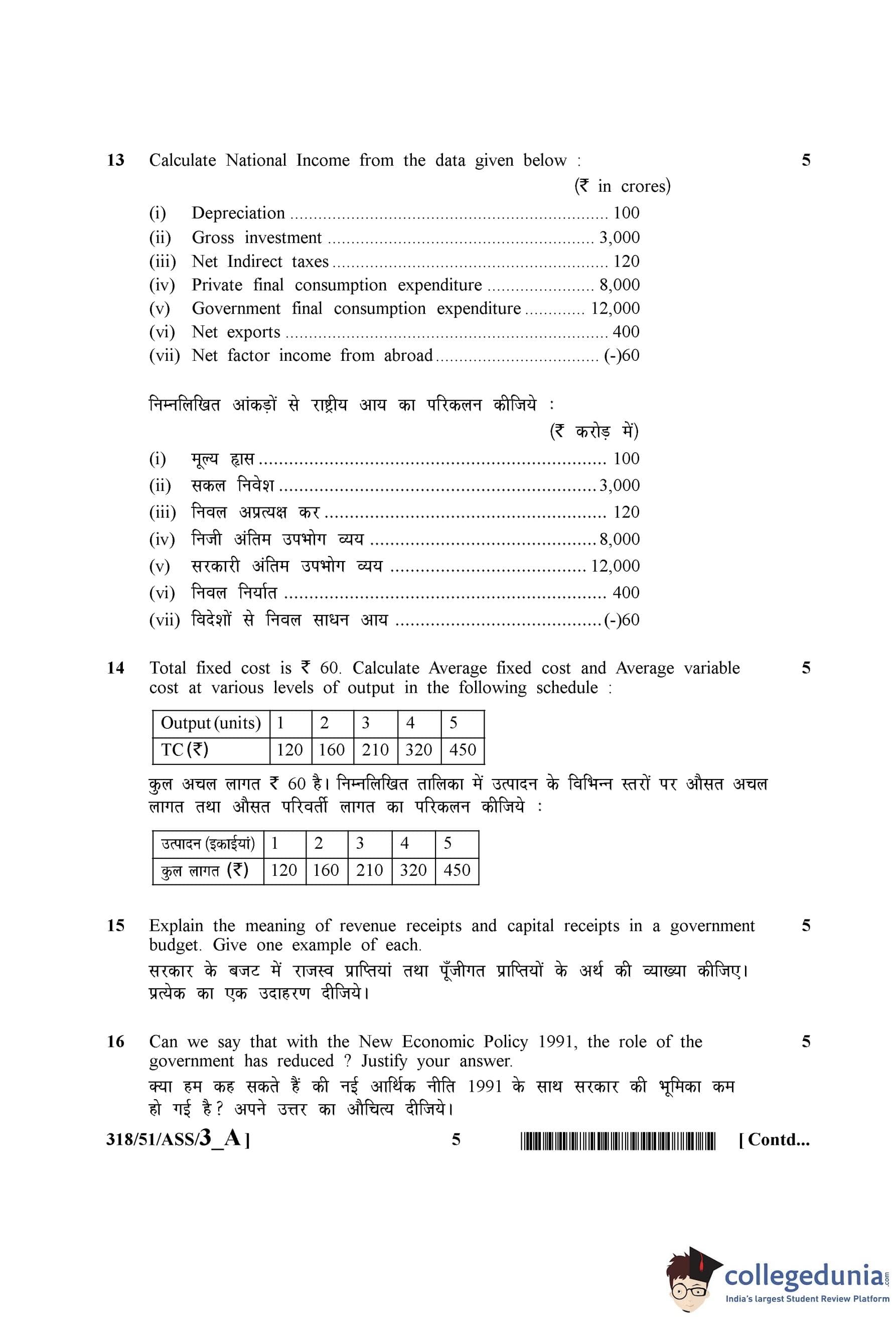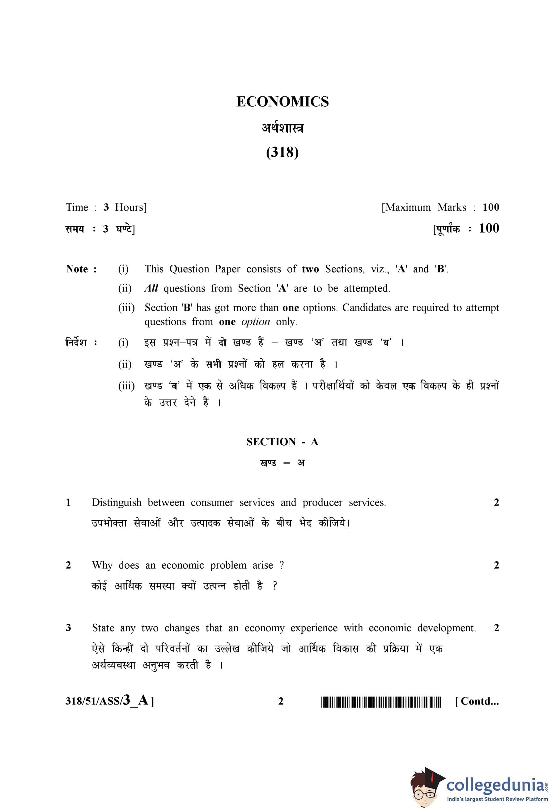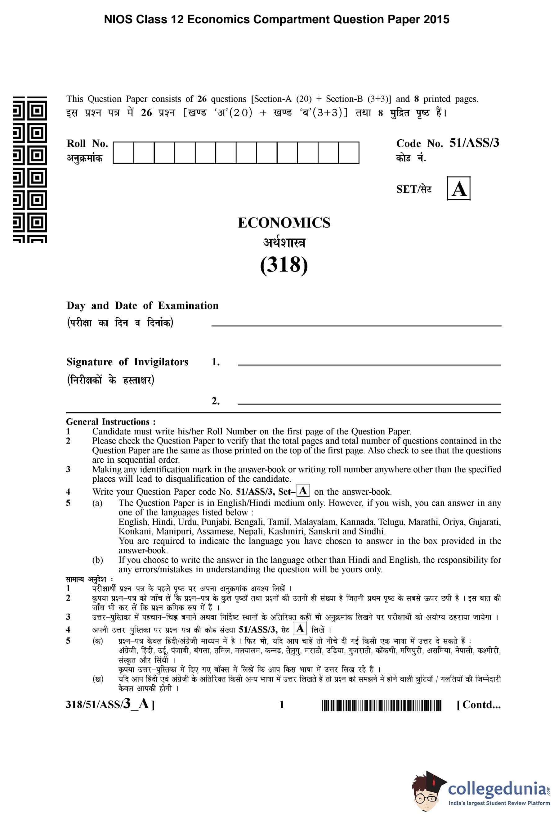 NIOS Class 12 Economics Compartment Question Paper 2015 with Answer Key