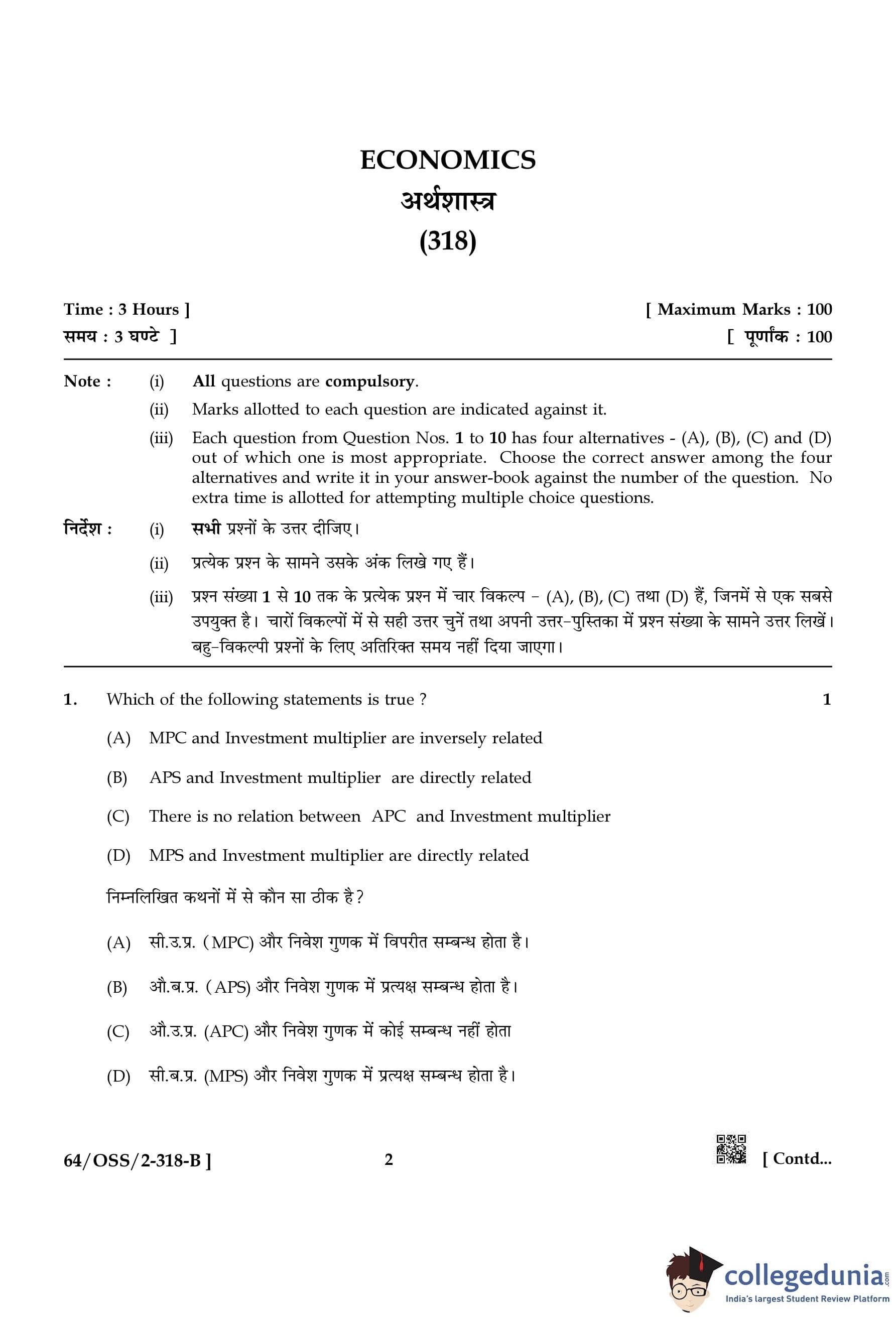 NIOS Class 12 Economics Compartment Question Paper 2022 with Answer Key pdf (Set B) is available for download here. The exam was conducted by National Institute of Open Schooling on November 3, 2022 in the Afternoon Session 2:30 PM to 5:30 PM. The question paper comprised a total of 32 questions.