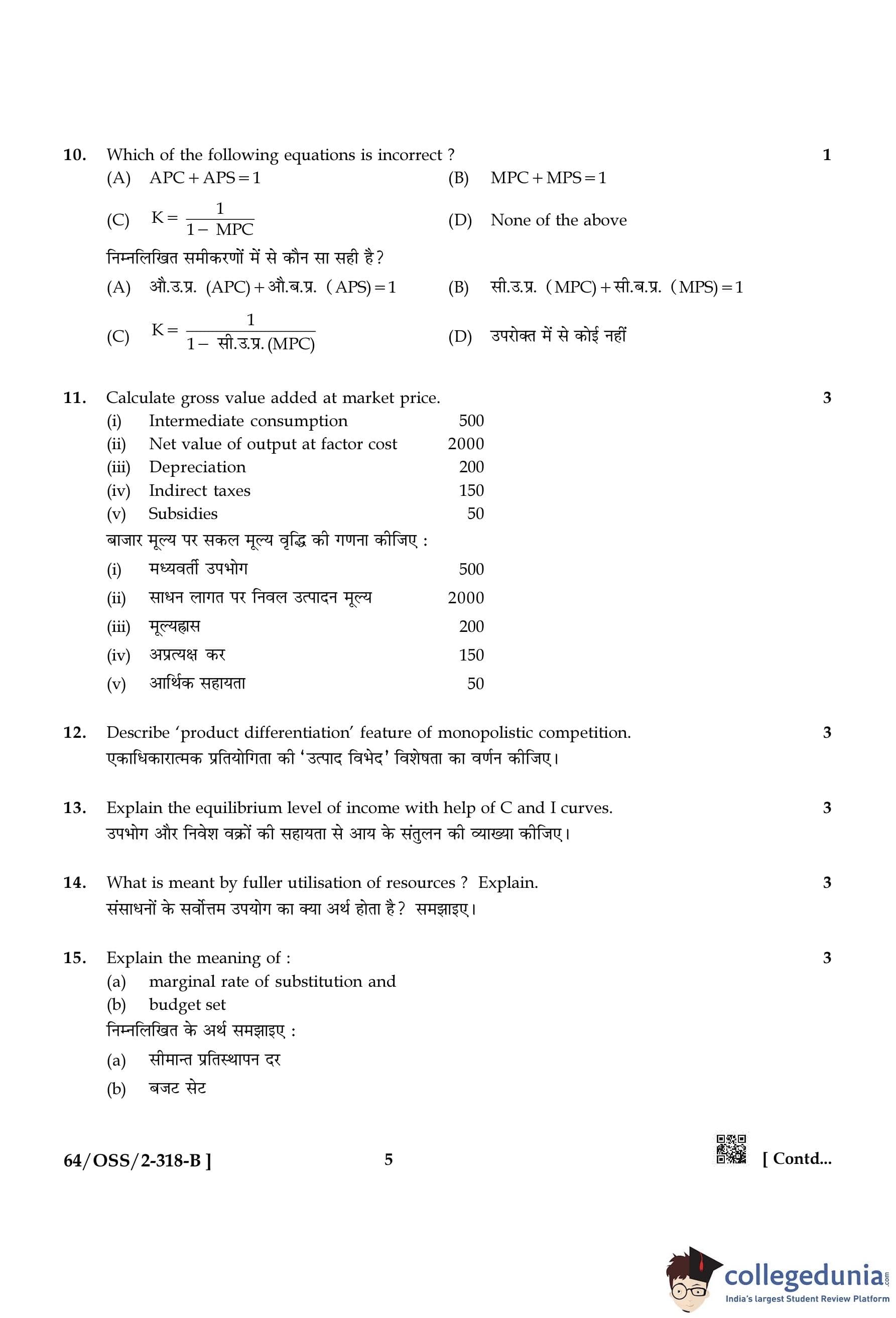 NIOS Class 12 Economics (Set B) Compartment Question Paper 2022 with Answer Key