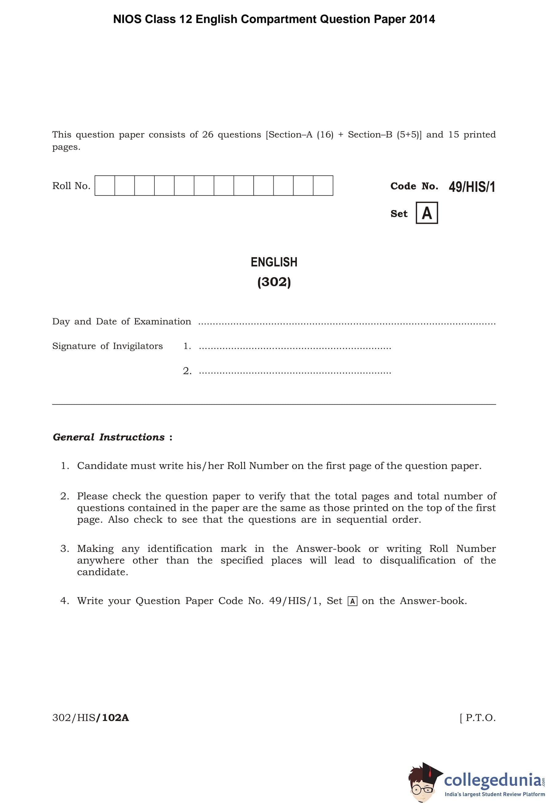 | NIOS Class 12 English Question Paper 2014 PDF | NIOS Class 12 English Answer Key 2014 PDF |