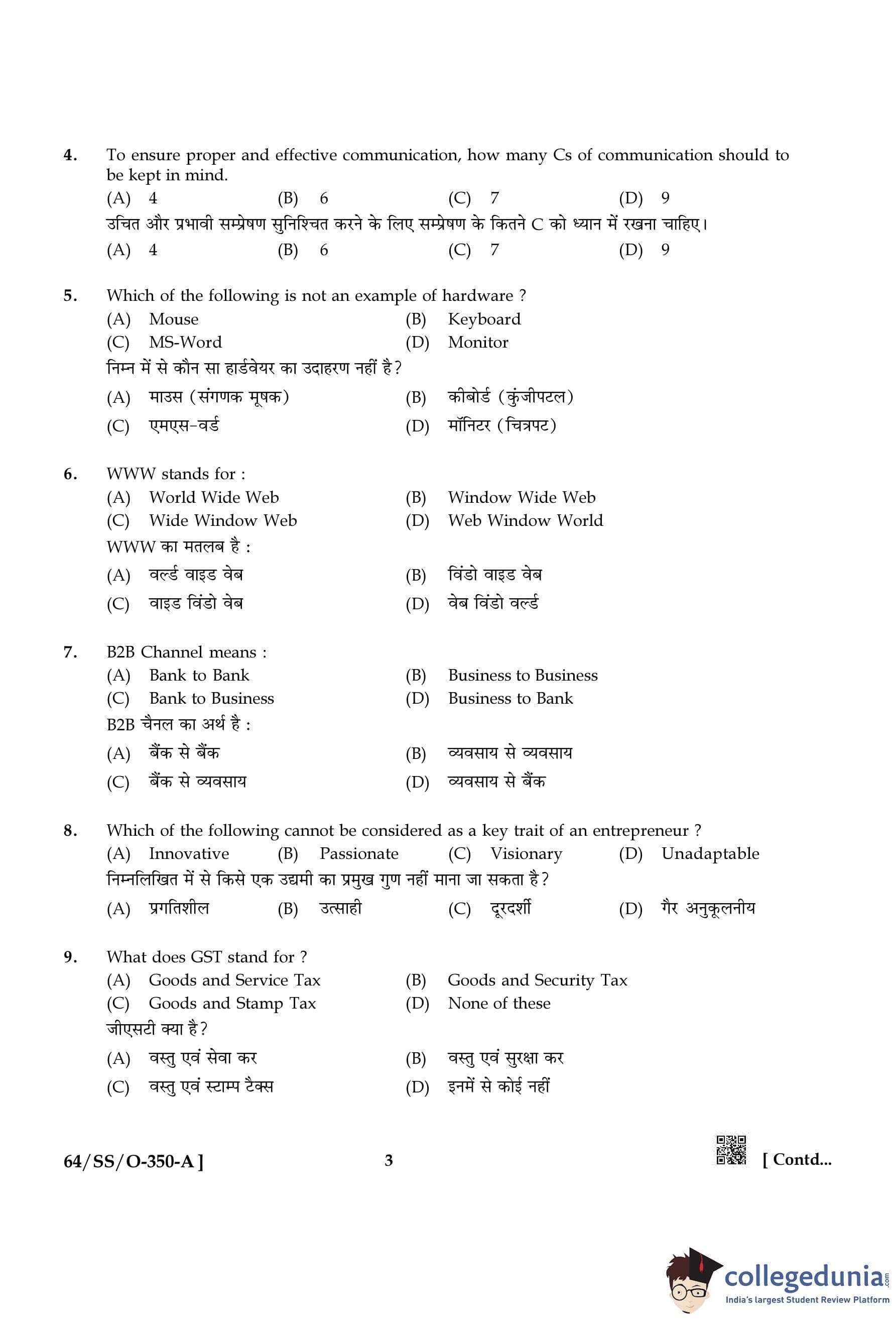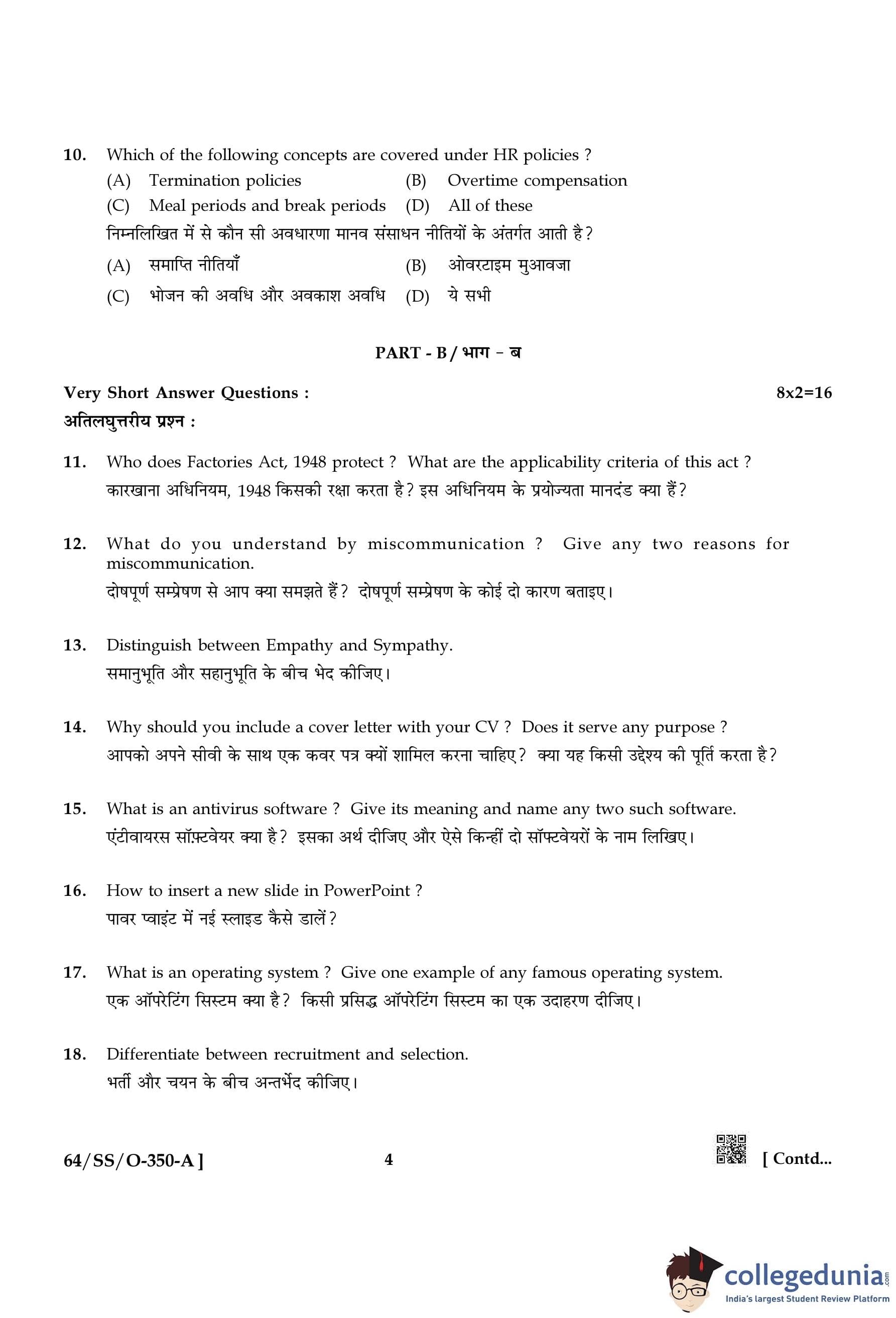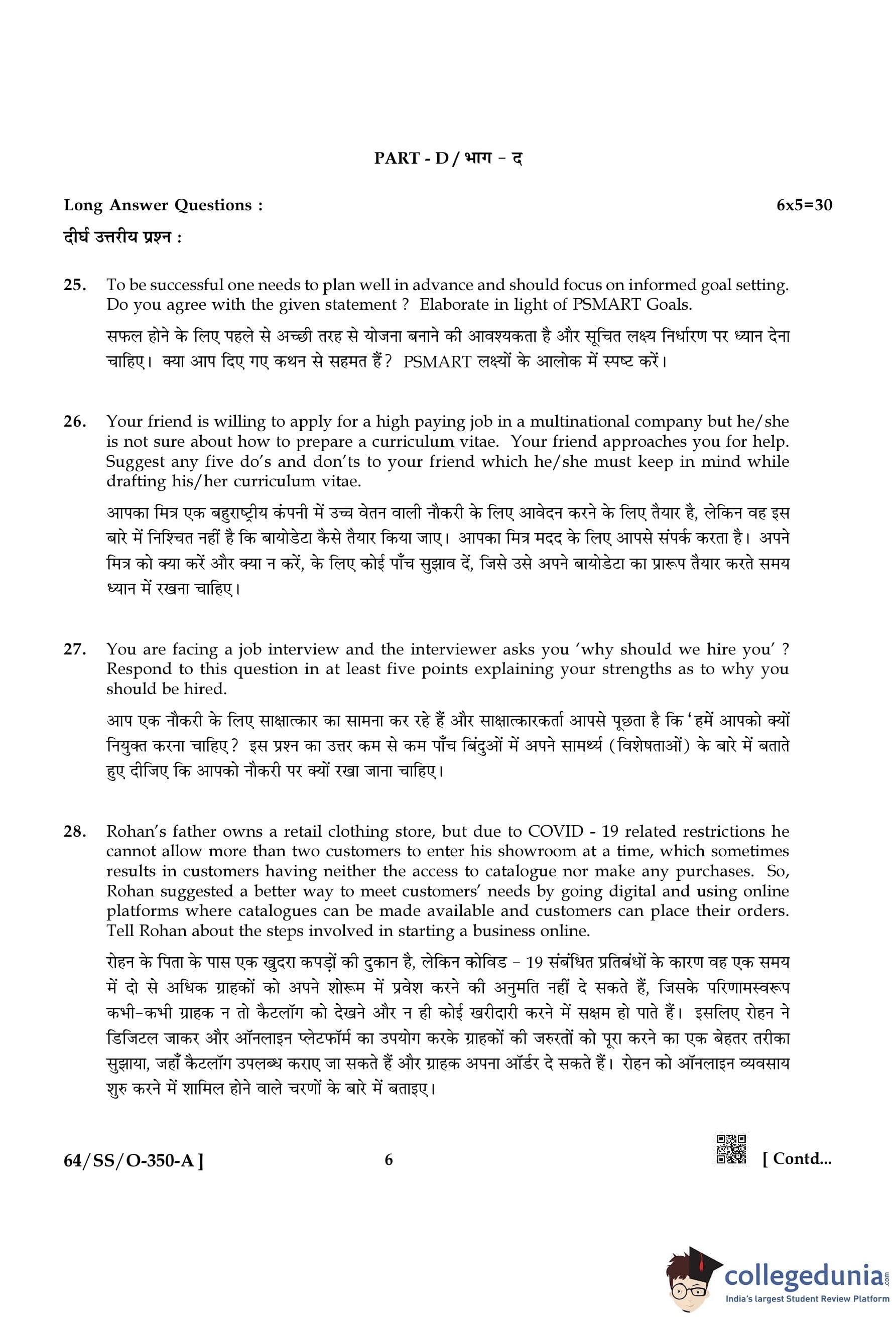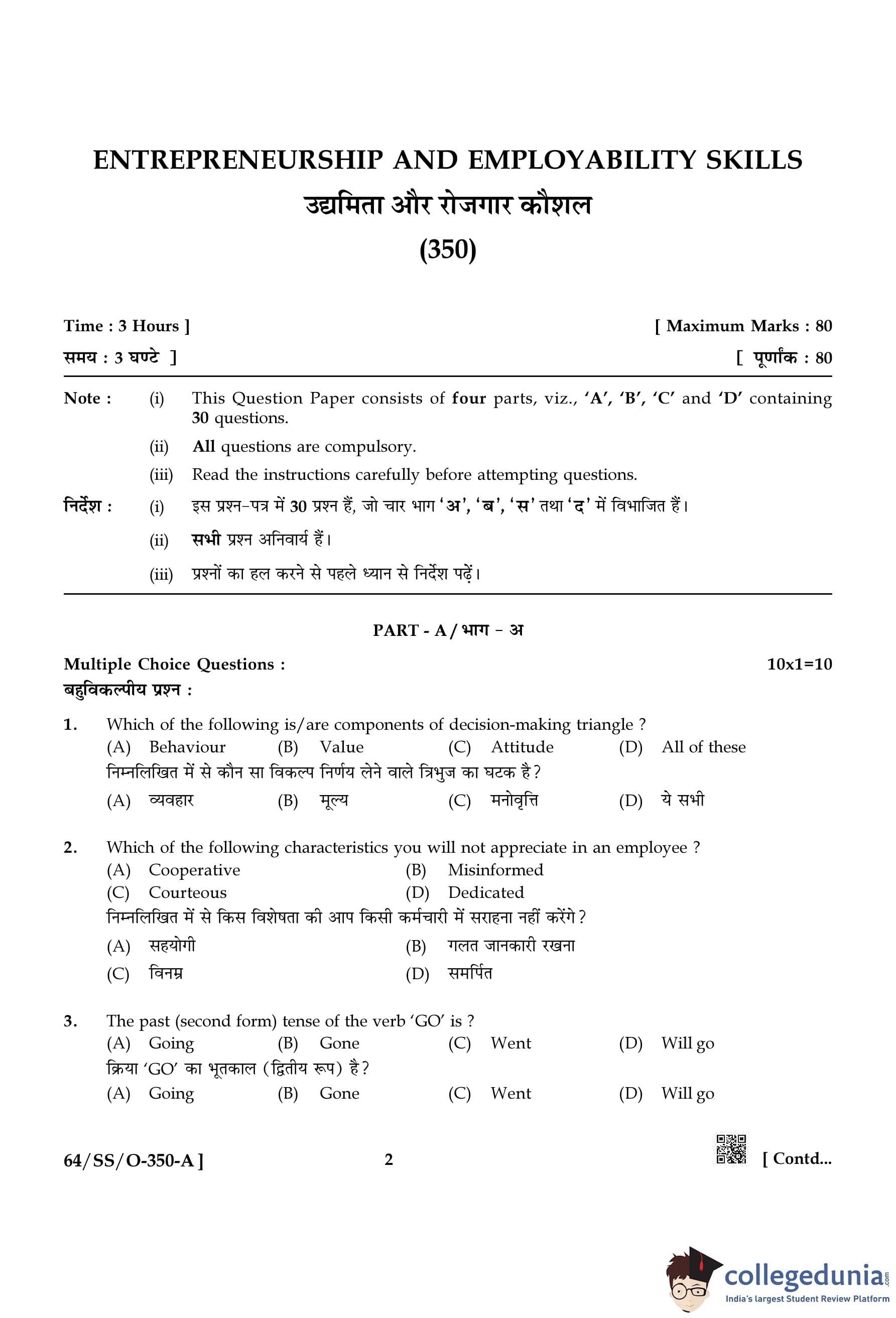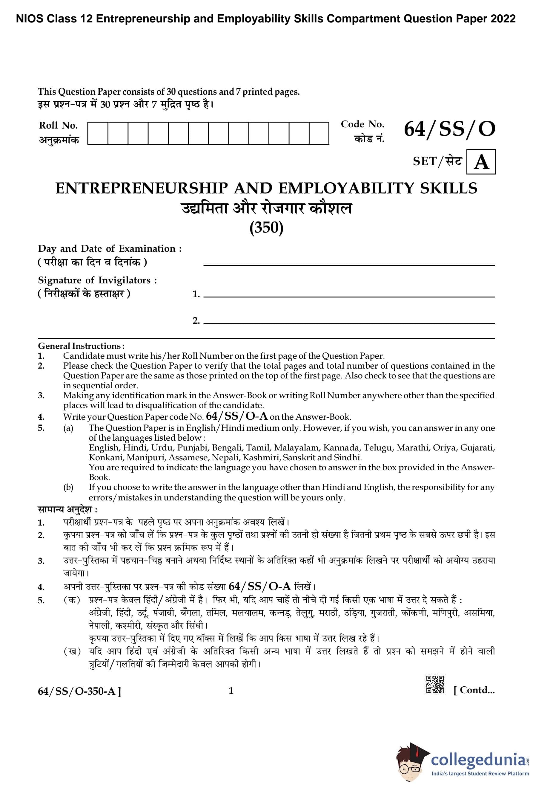 NIOS Class 12 Entrepreneurship and Employability Skills Compartment Question Paper 2022 with Answer Key pdf is available for download here. The exam was conducted by National Institute of Open Schooling on October 15, 2022 in the Afternoon Session 2:30 PM to 5:30 PM. The question paper comprised a total of 30 questions divided among 4 sections.