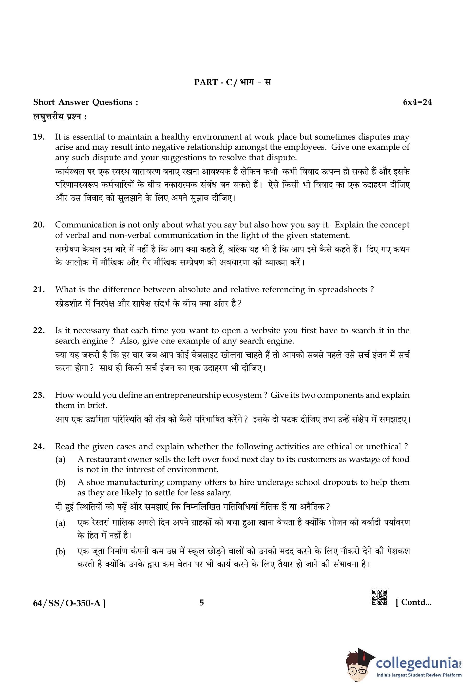NIOS Class 12 Entrepreneurship and Employability Skills Compartment Question Paper 2022 with Answer Key
