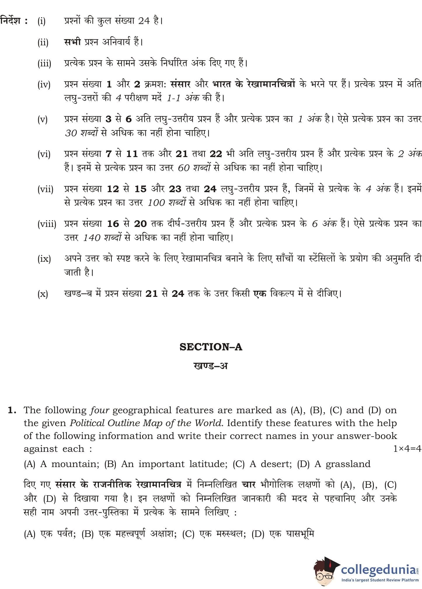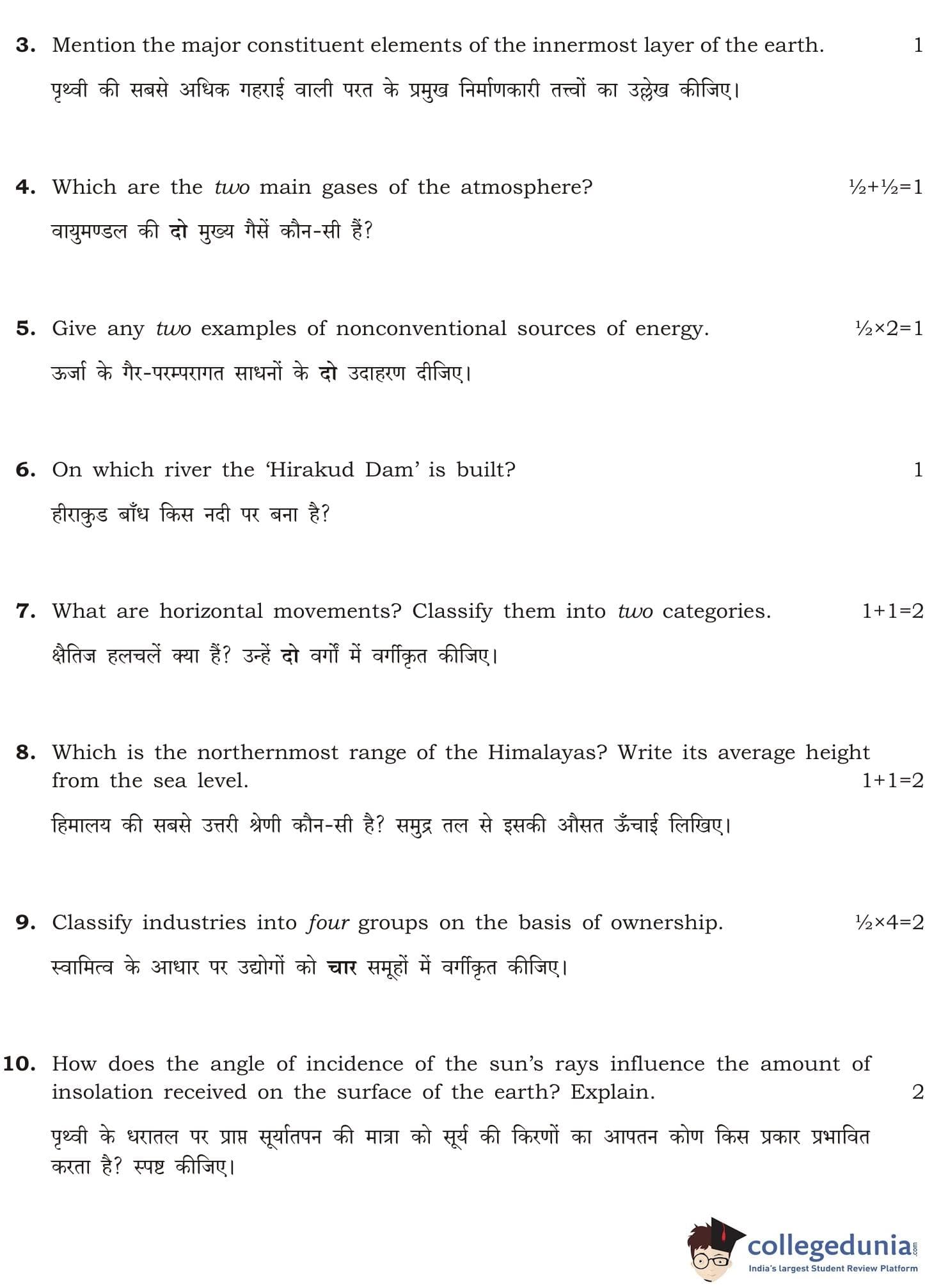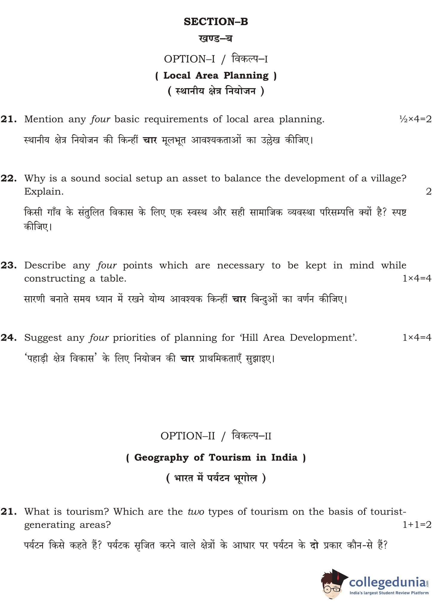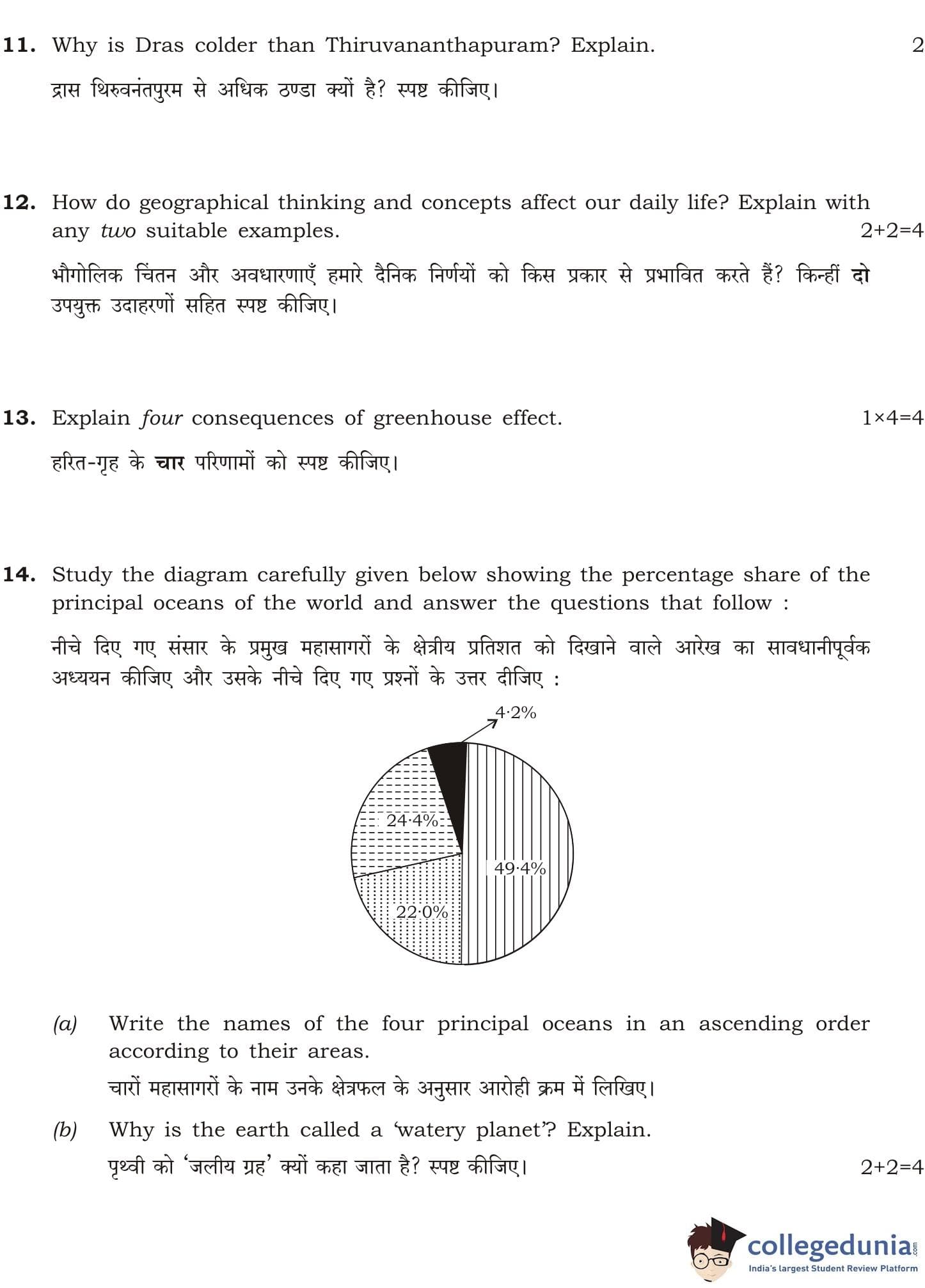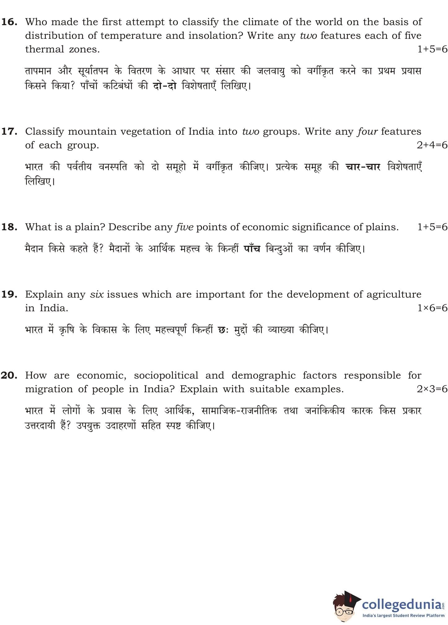 NIOS Class 12 Geography Compartment Question Paper 2014 with Answer Key