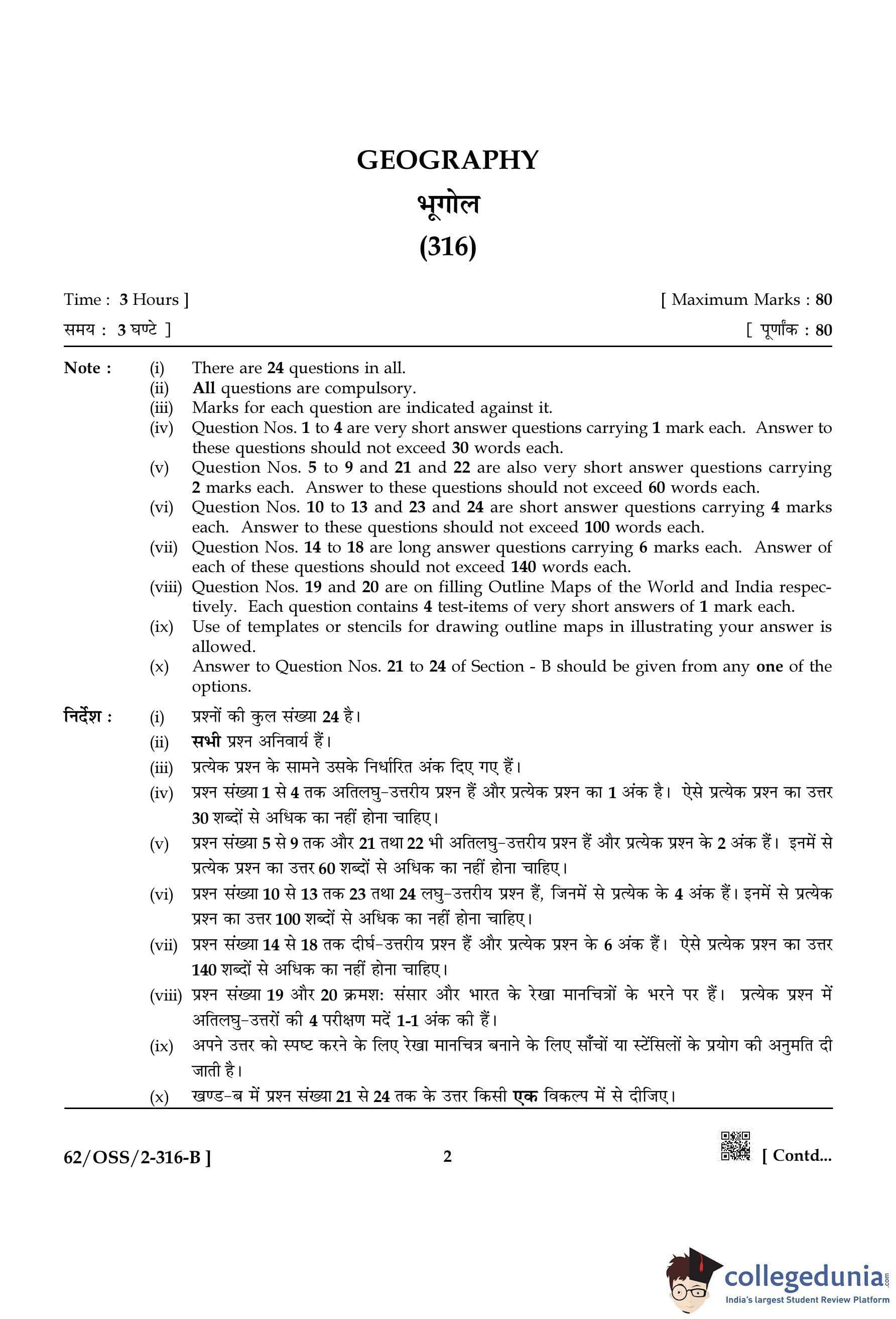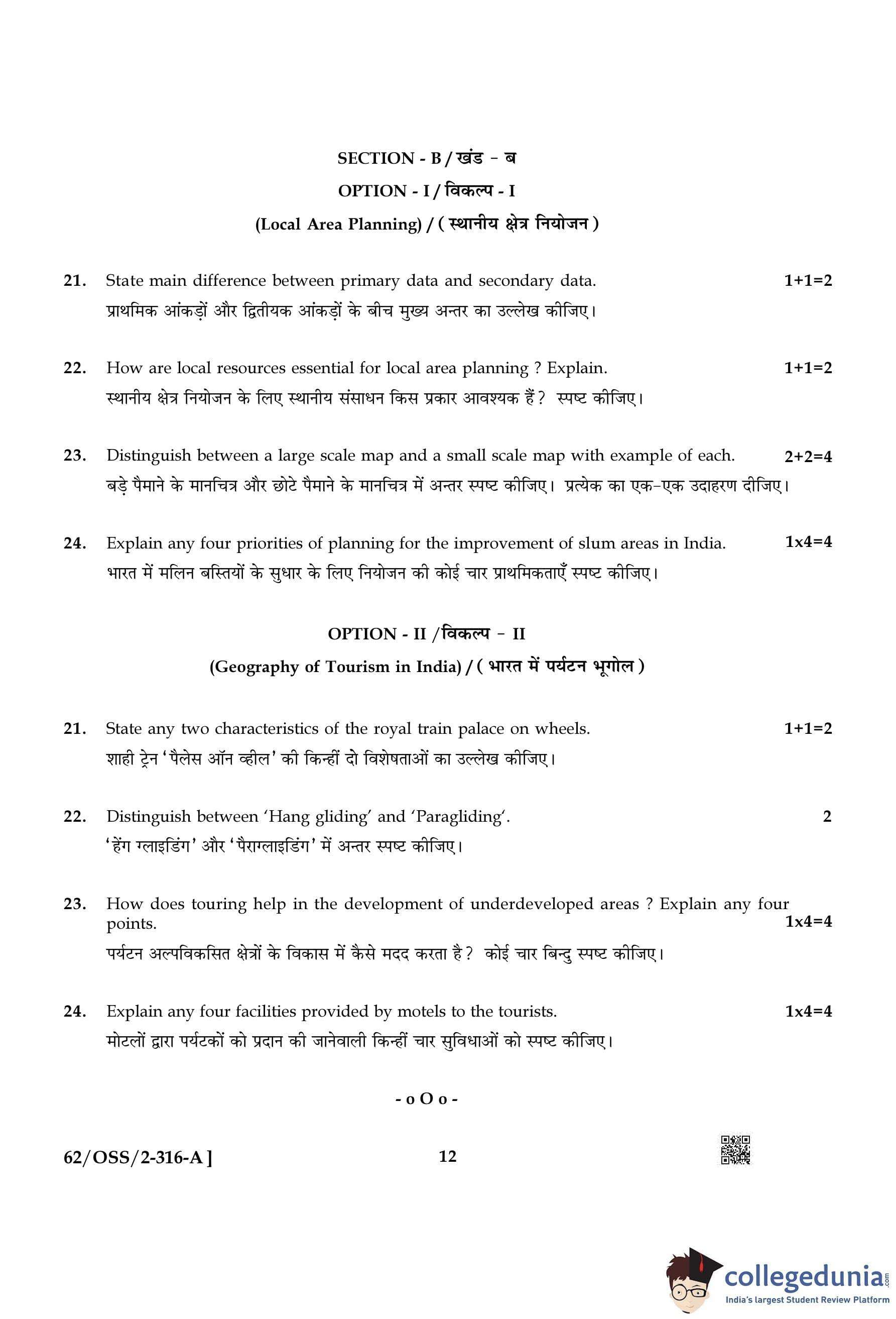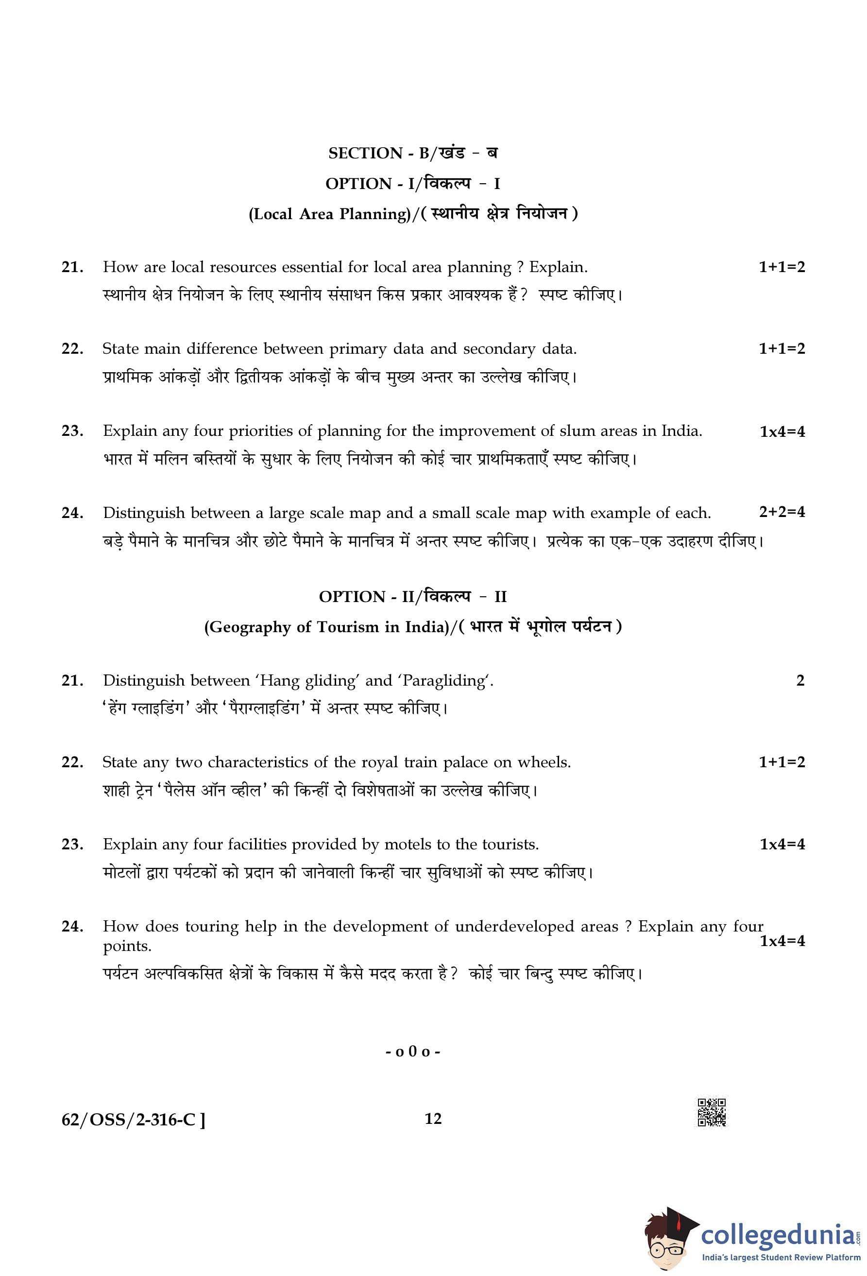 NIOS Class 12 Geography Compartment Question Paper 2021 with Answer Key pdf is available for download here. The exam was conducted by National Institute of Open Schooling on November 25, 2021 in the Afternoon Session 2:30 PM to 5:30 PM. The question paper comprised a total of 24 questions divided among 2 sections.