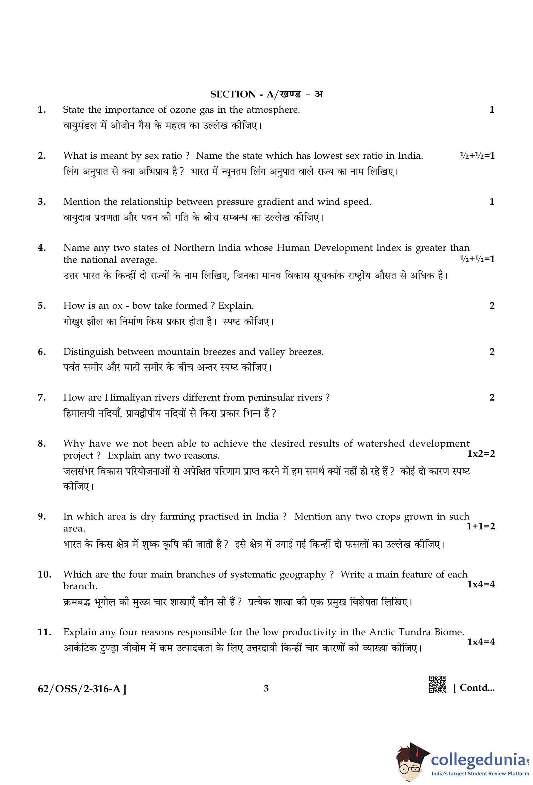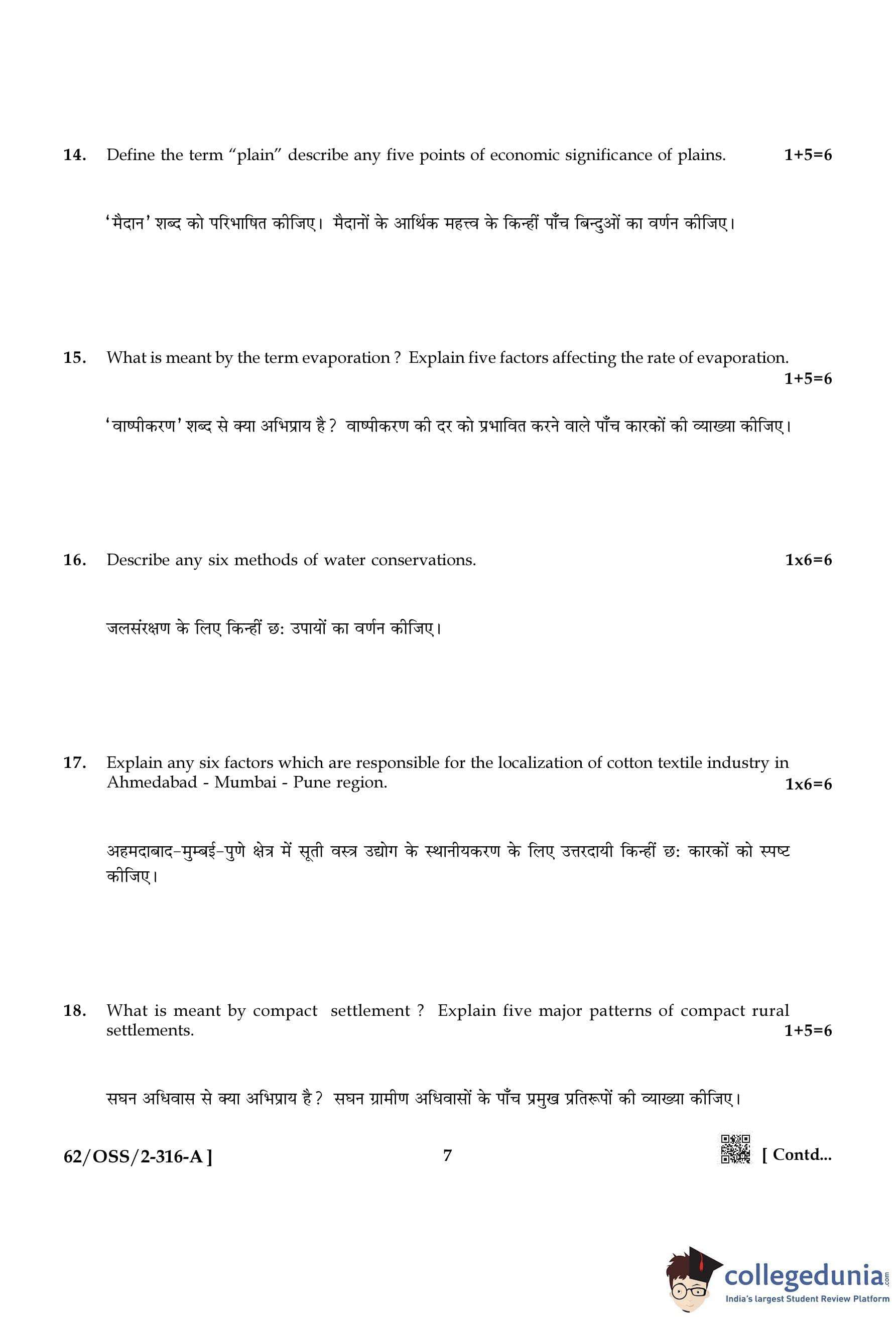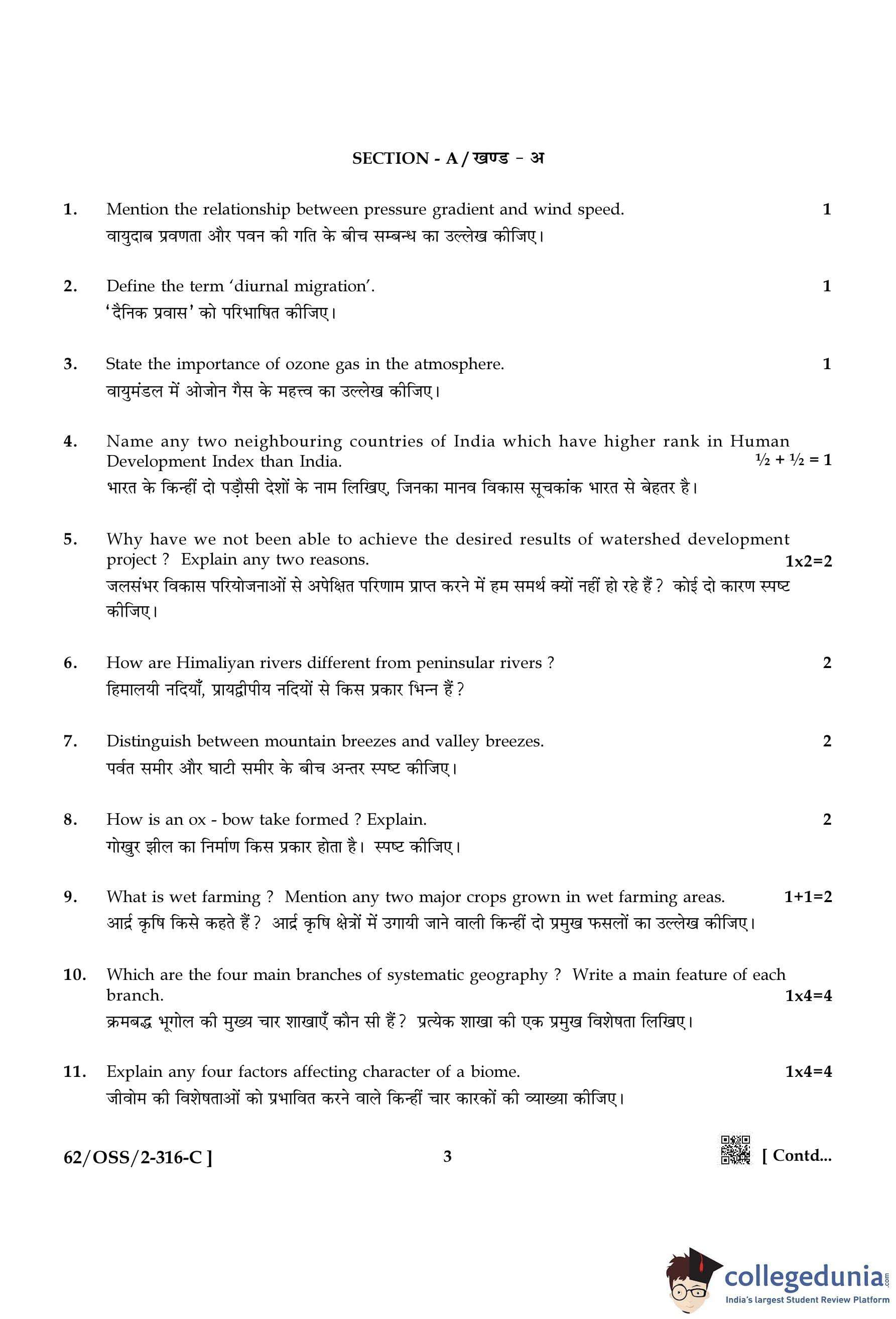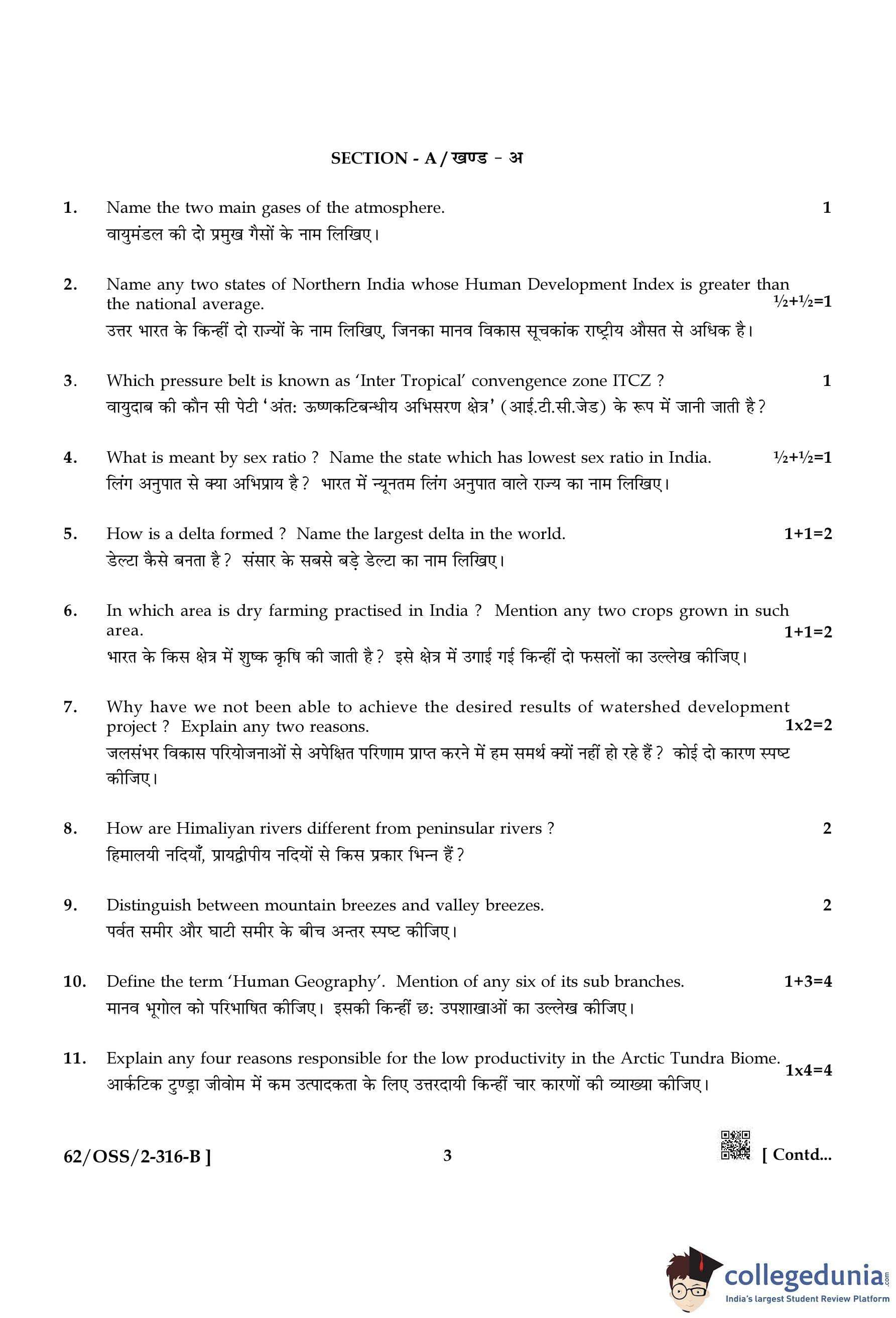 NIOS Class 12 Geography Compartment Question Paper 2021 with Answer Key pdf is available for download here. The exam was conducted by National Institute of Open Schooling on November 25, 2021 in the Afternoon Session 2:30 PM to 5:30 PM. The question paper comprised a total of 24 questions divided among 2 sections.