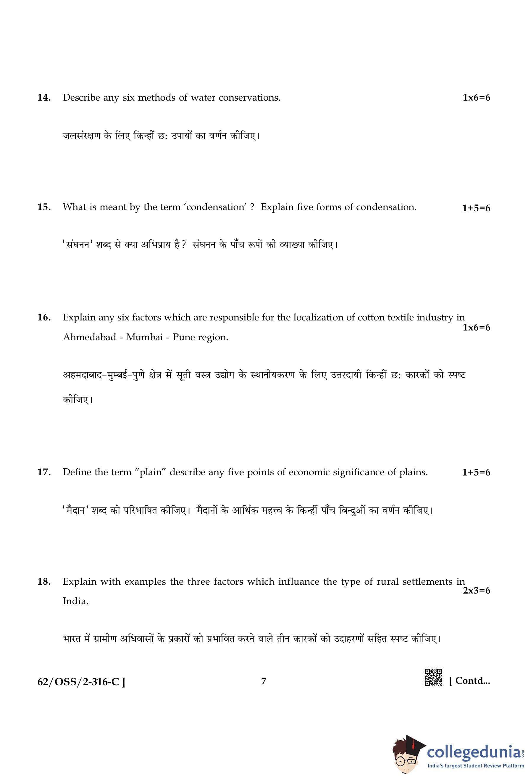 NIOS Class 12 Geography Compartment Question Paper 2021 with Answer Key