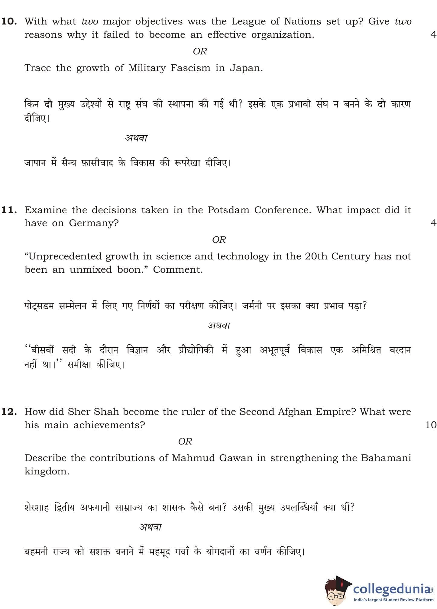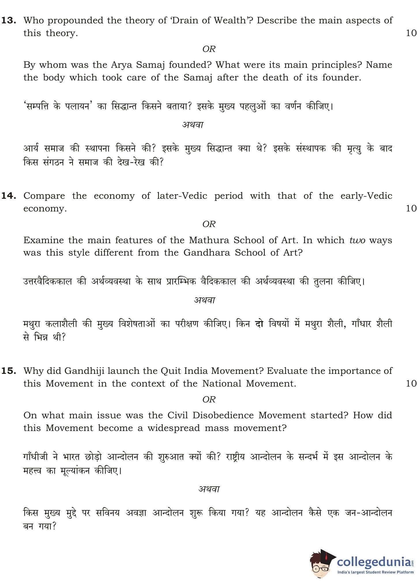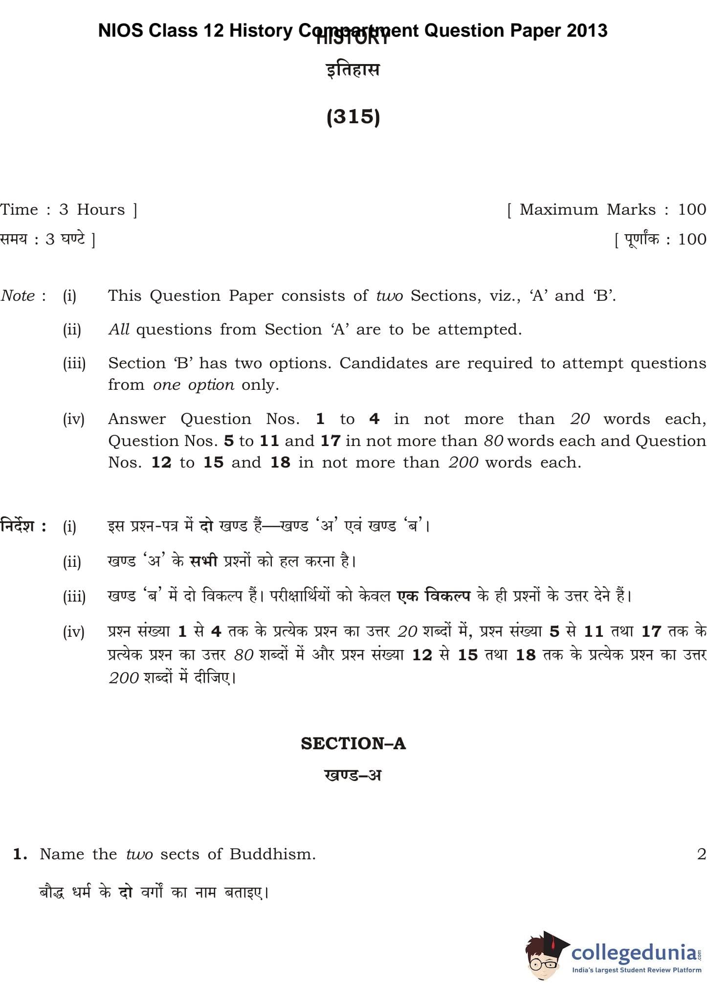 NIOS Class 12 History Compartment Question Paper 2013 with Answer Key