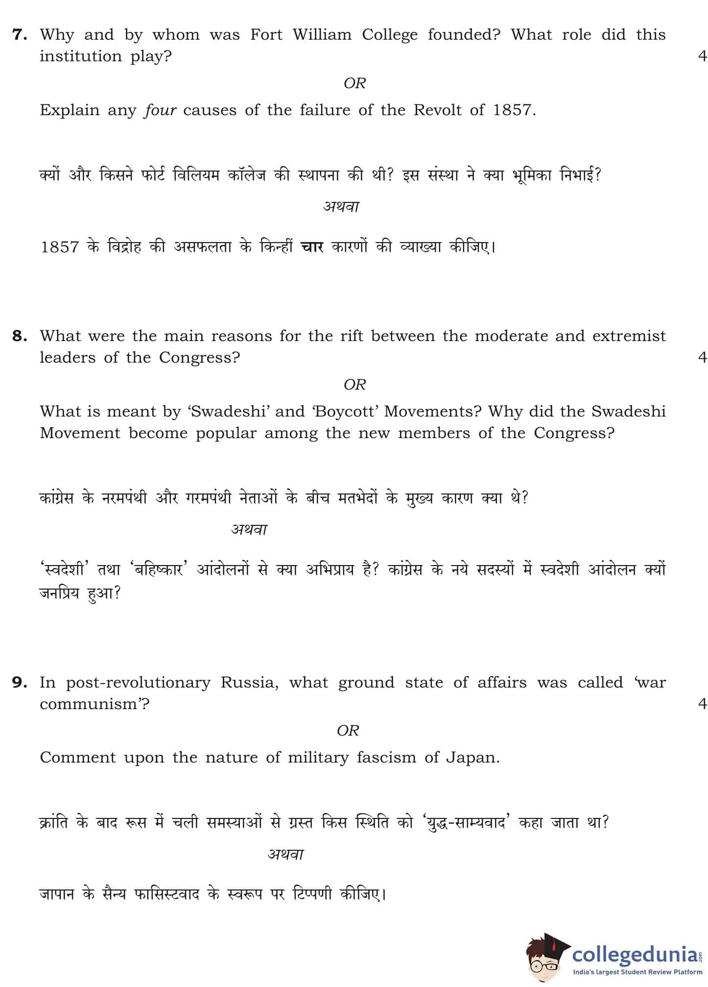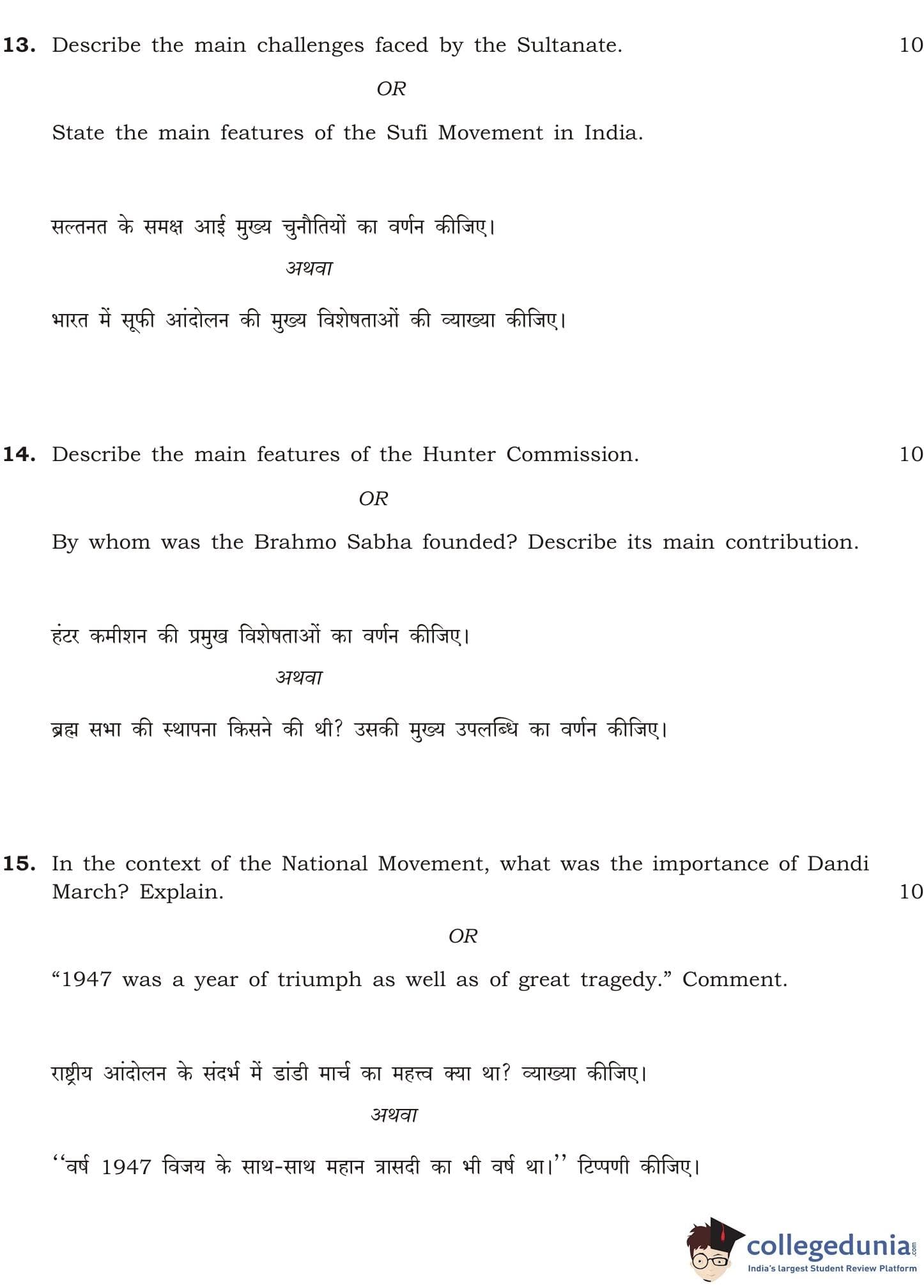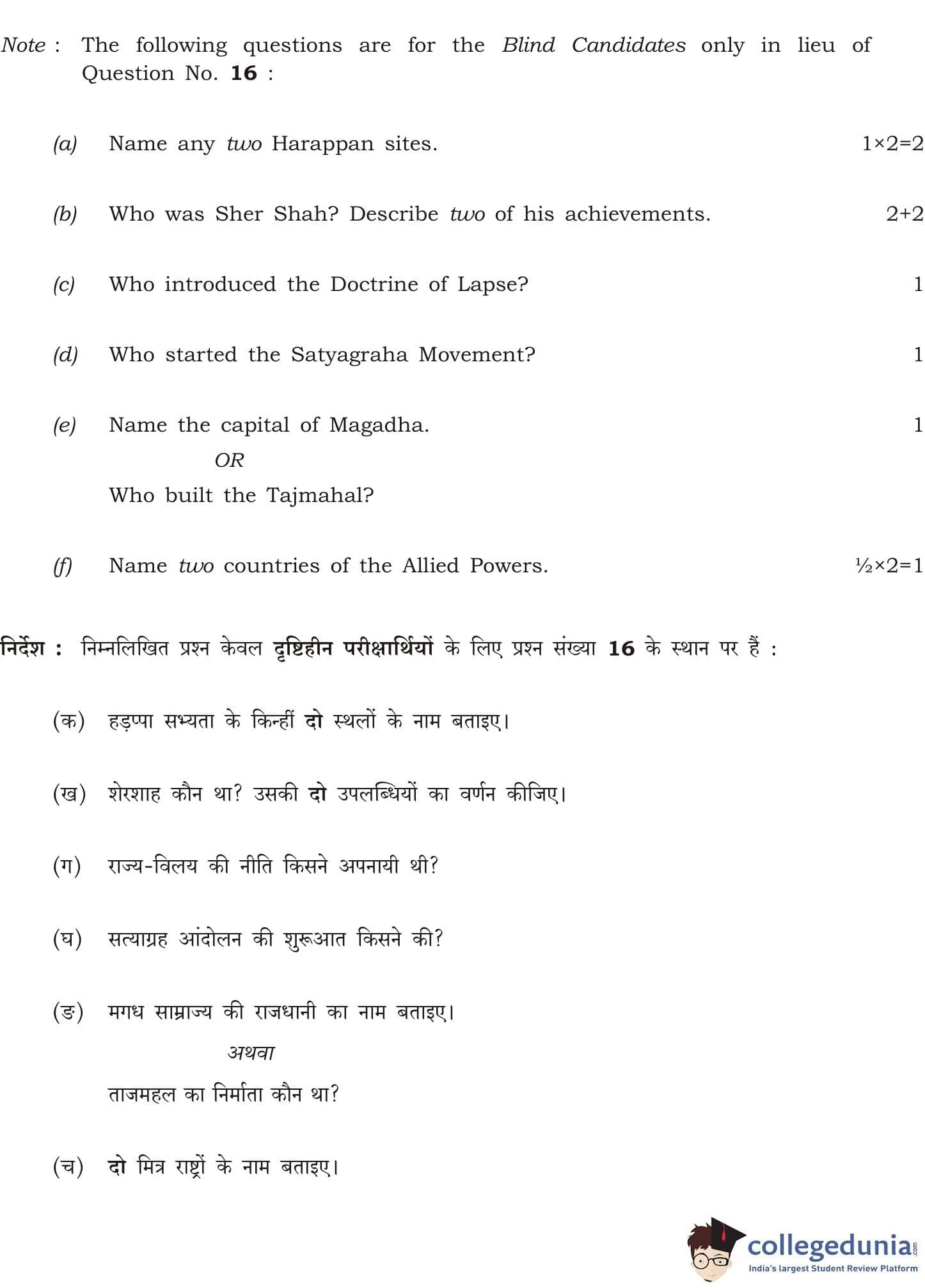 NIOS Class 12 History Compartment Question Paper 2014 with Answer Key