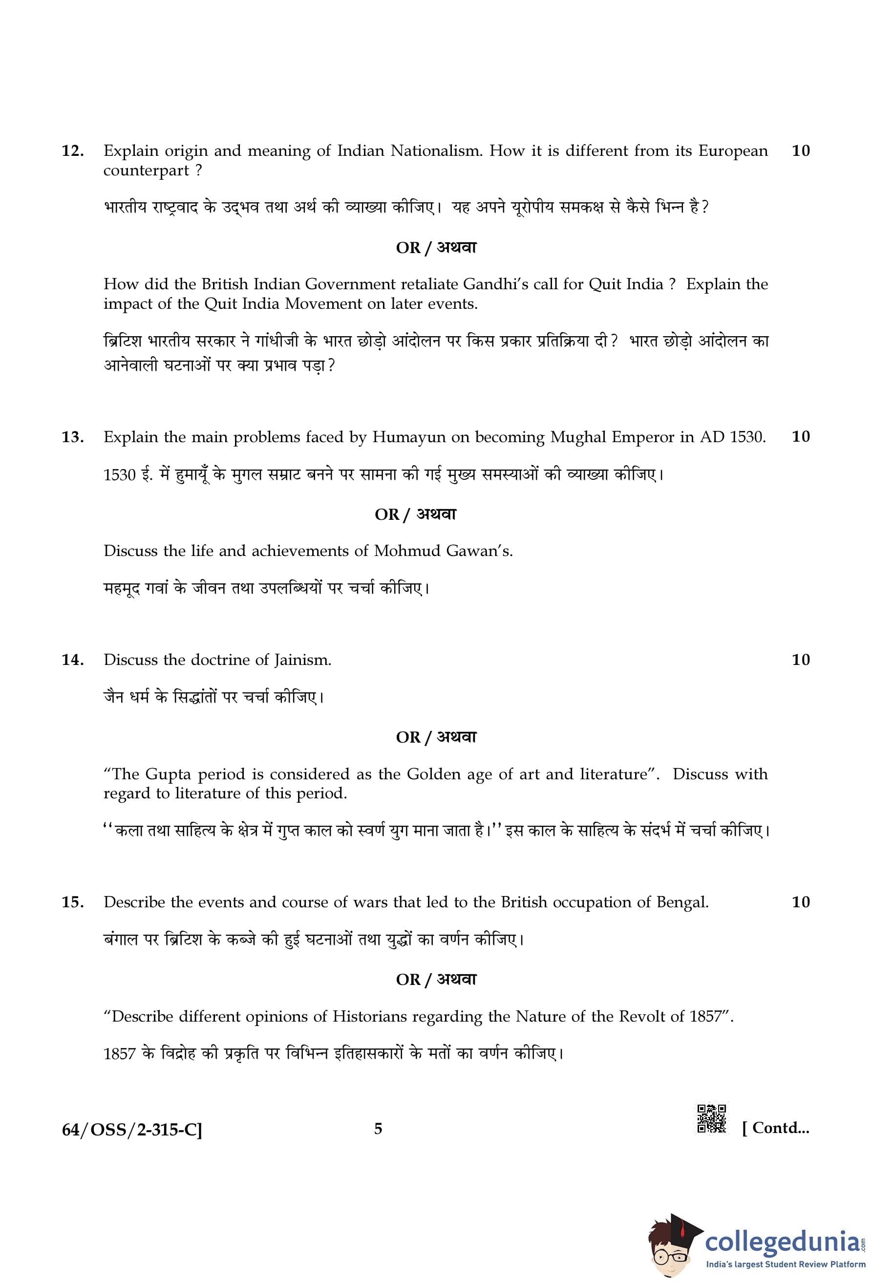 NIOS Class 12 History (Set C) Compartment Question Paper 2022 with Answer Key