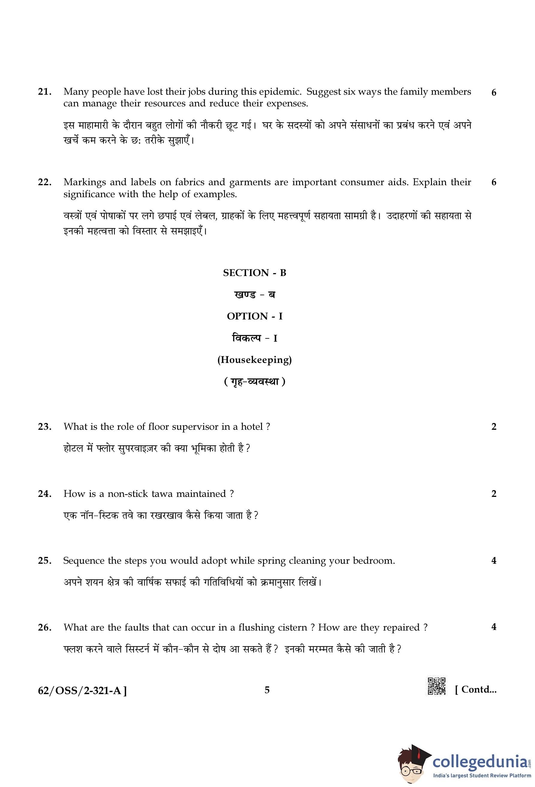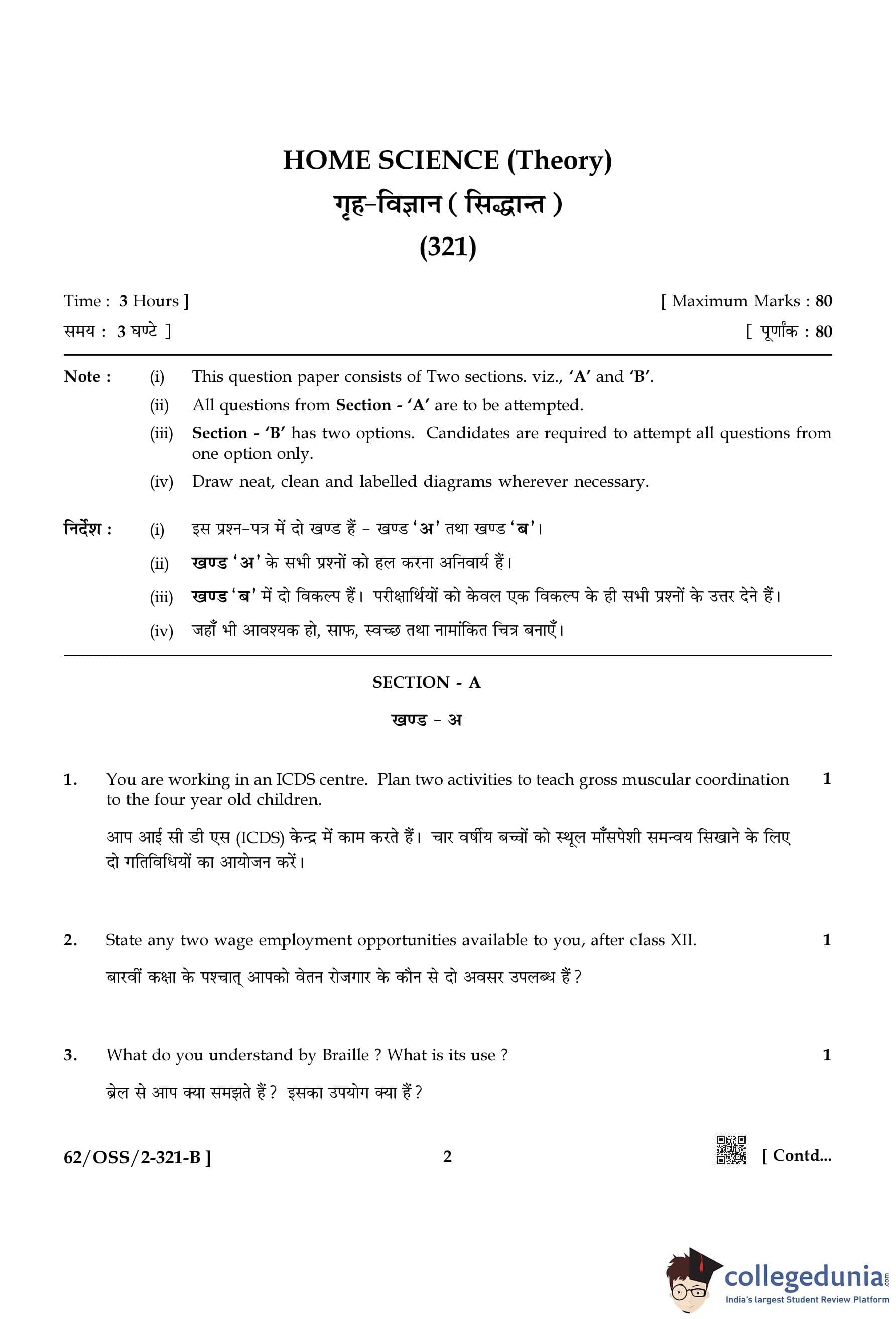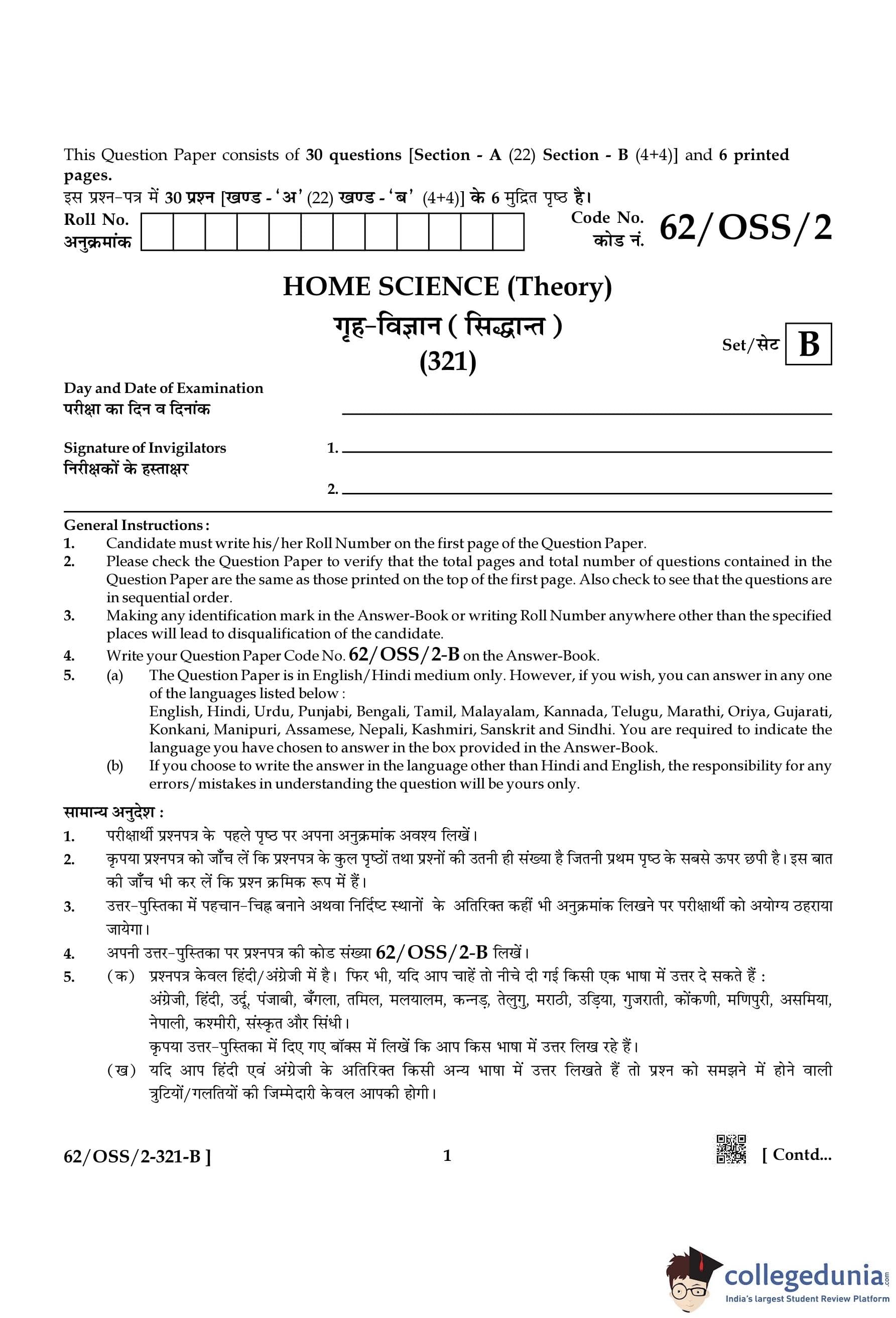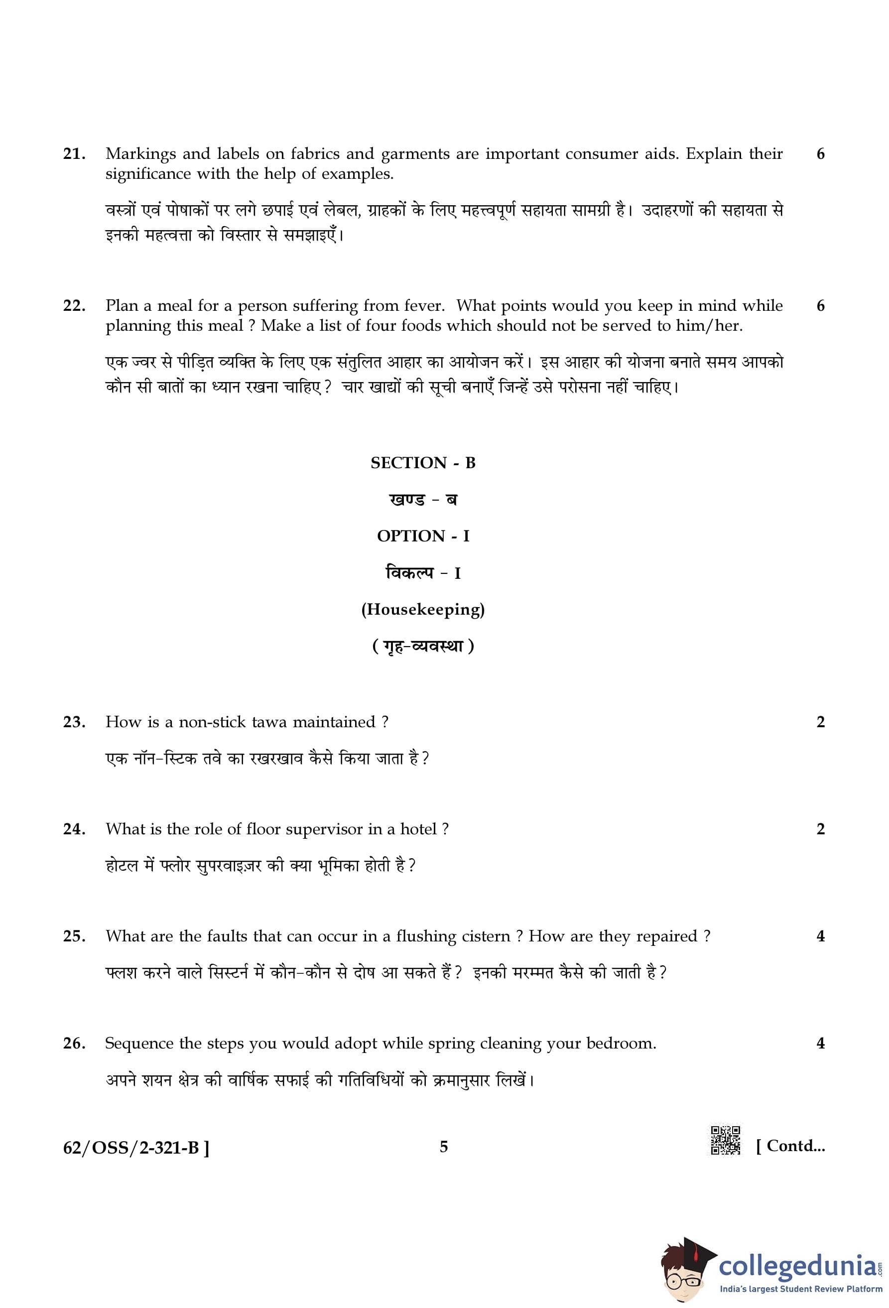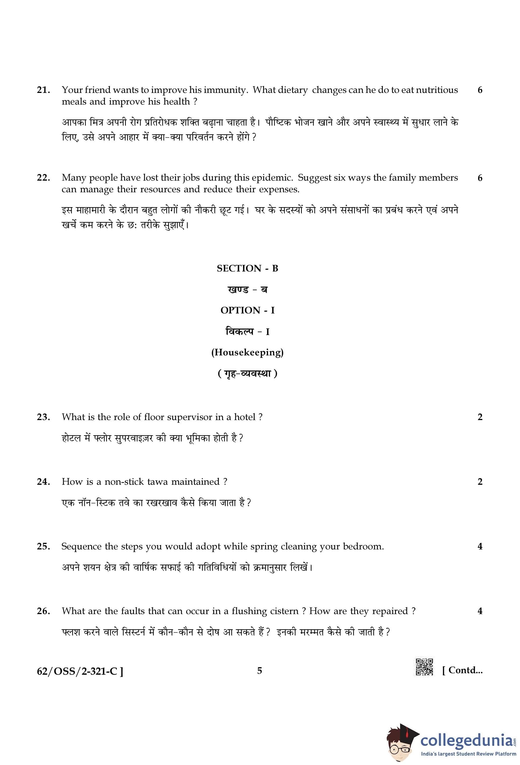 NIOS Class 12 Home Science Compartment Question Paper 2021 with Answer Key pdf is available for download here. The exam was conducted by National Institute of Open Schooling on November 30, 2021 in the Afternoon Session 2:30 PM to 5:30 PM. The question paper comprised a total of 26 questions divided among 2 sections.