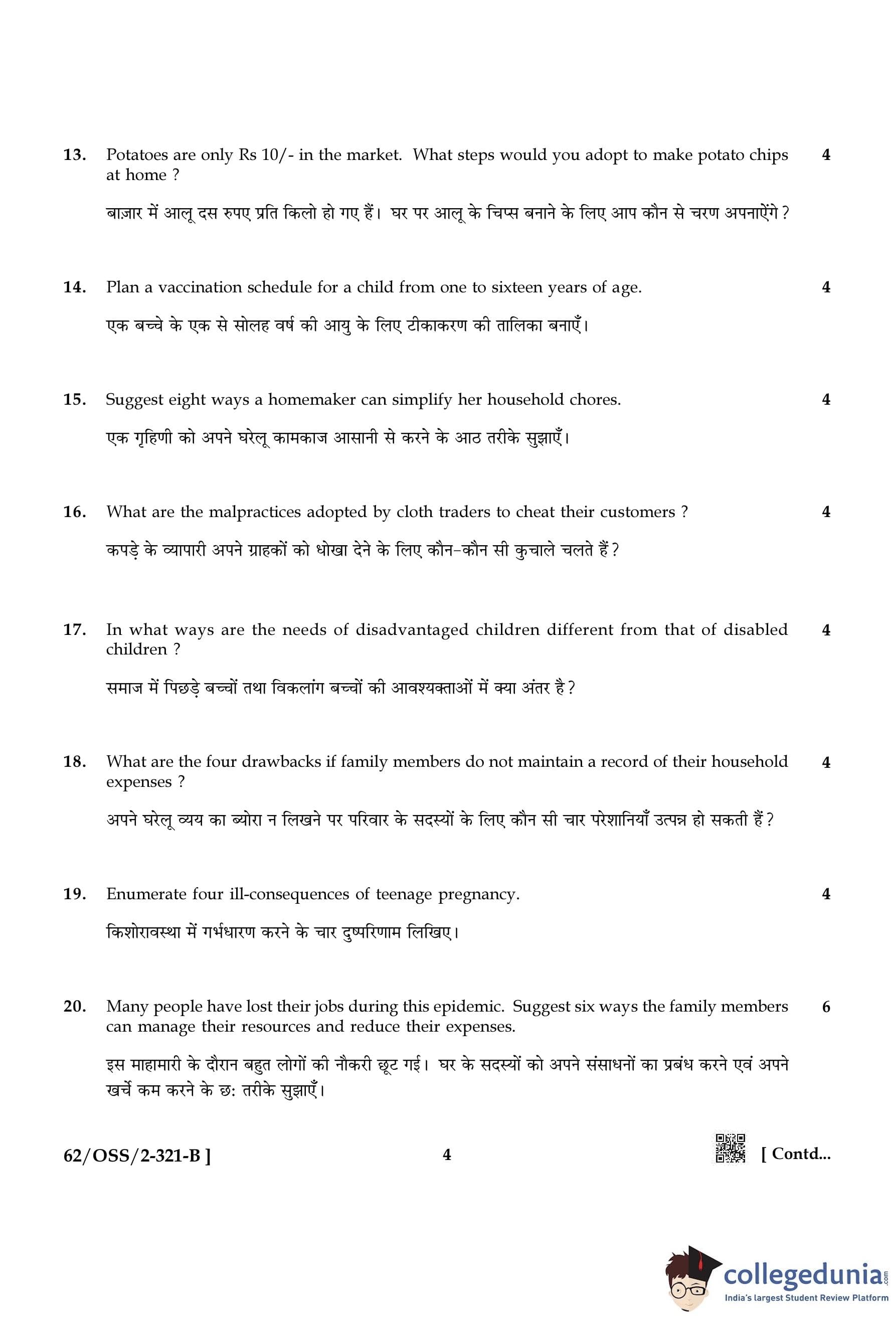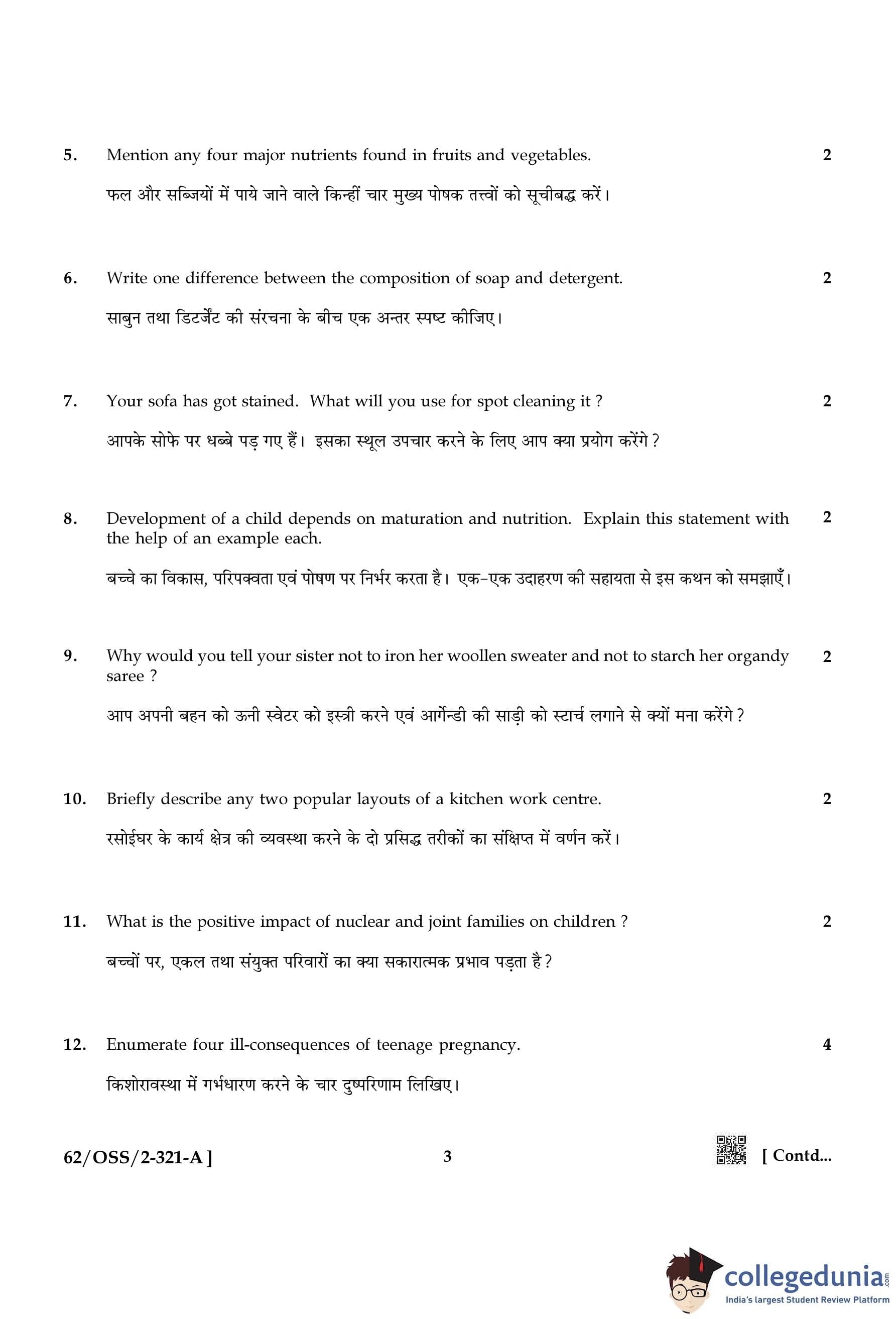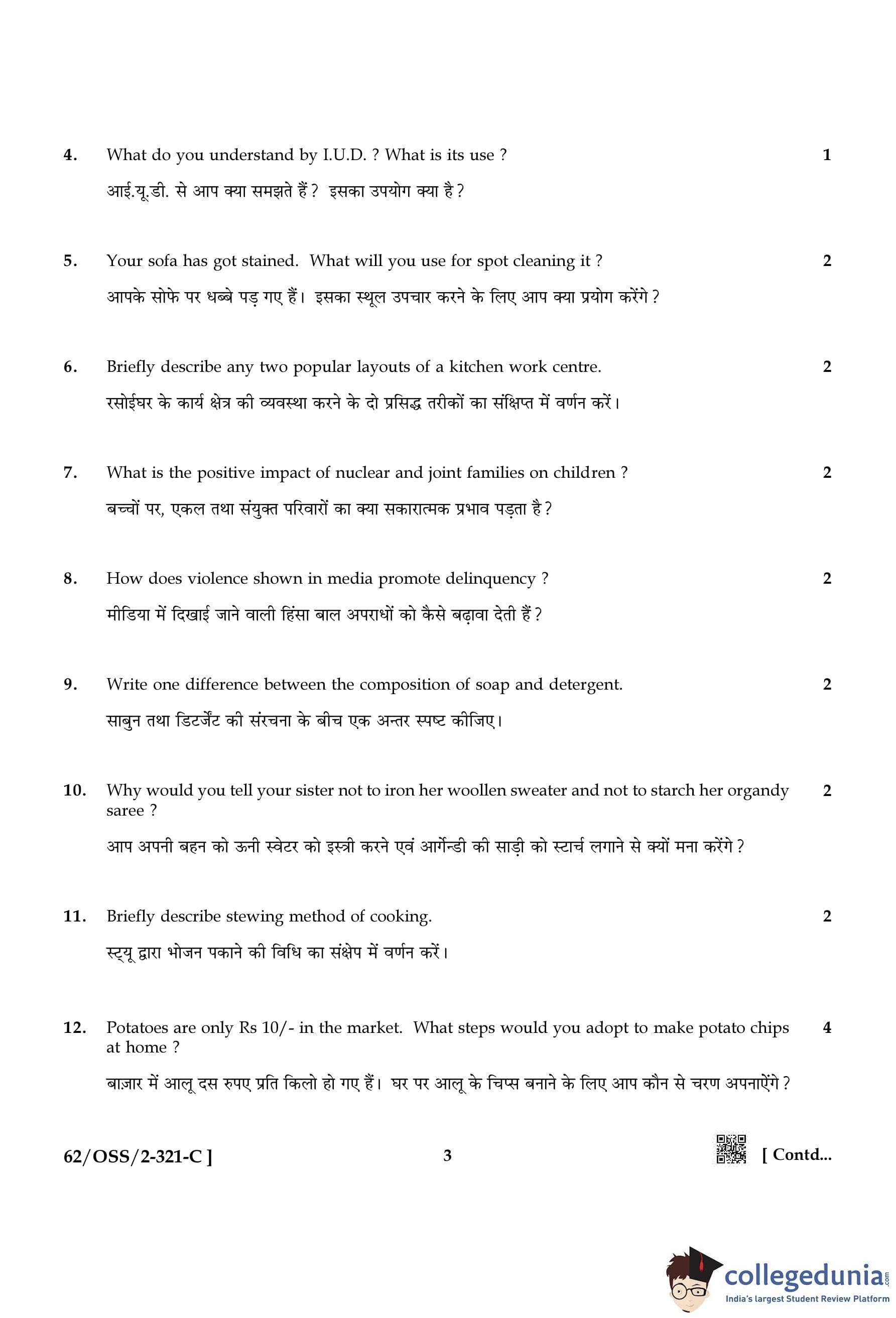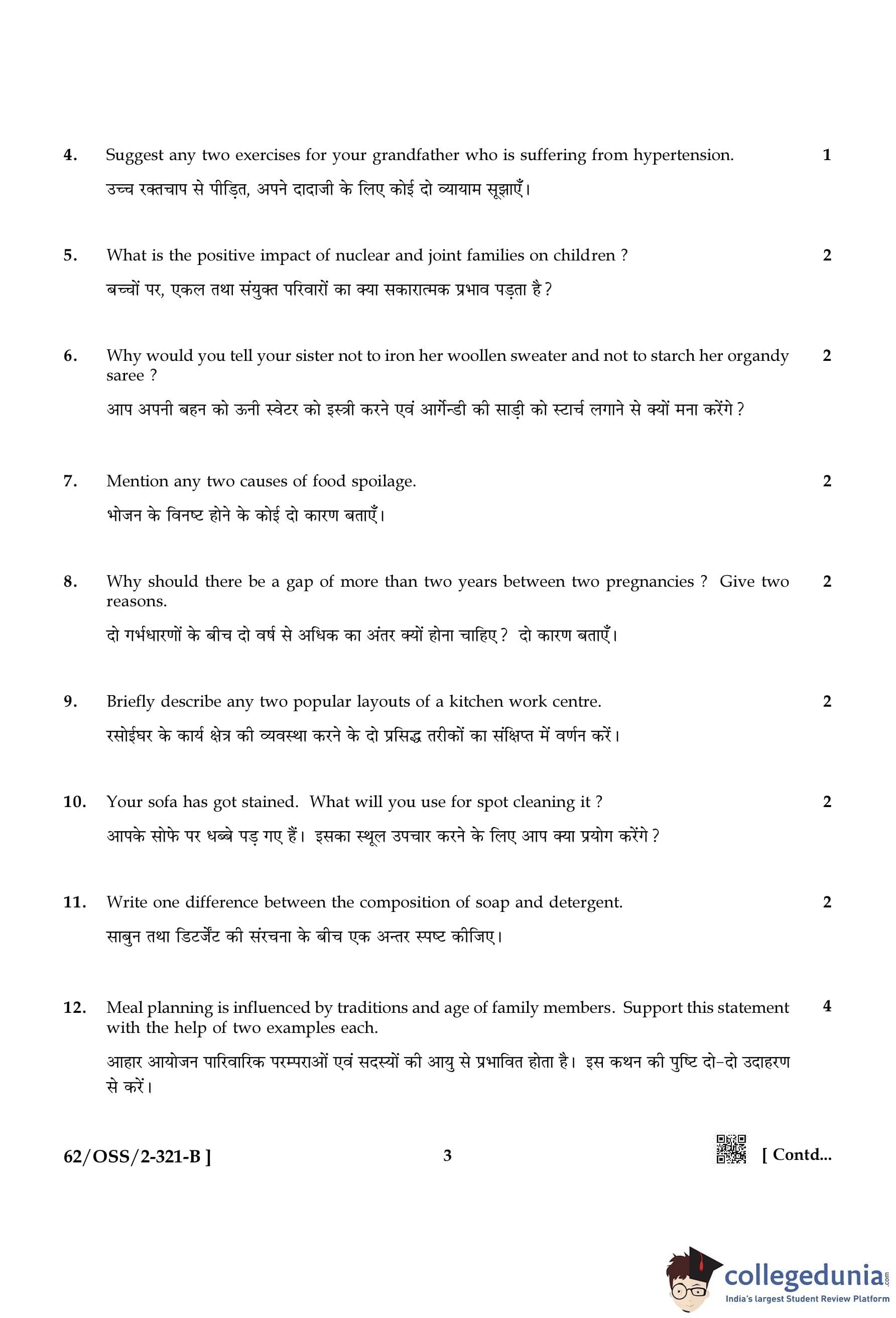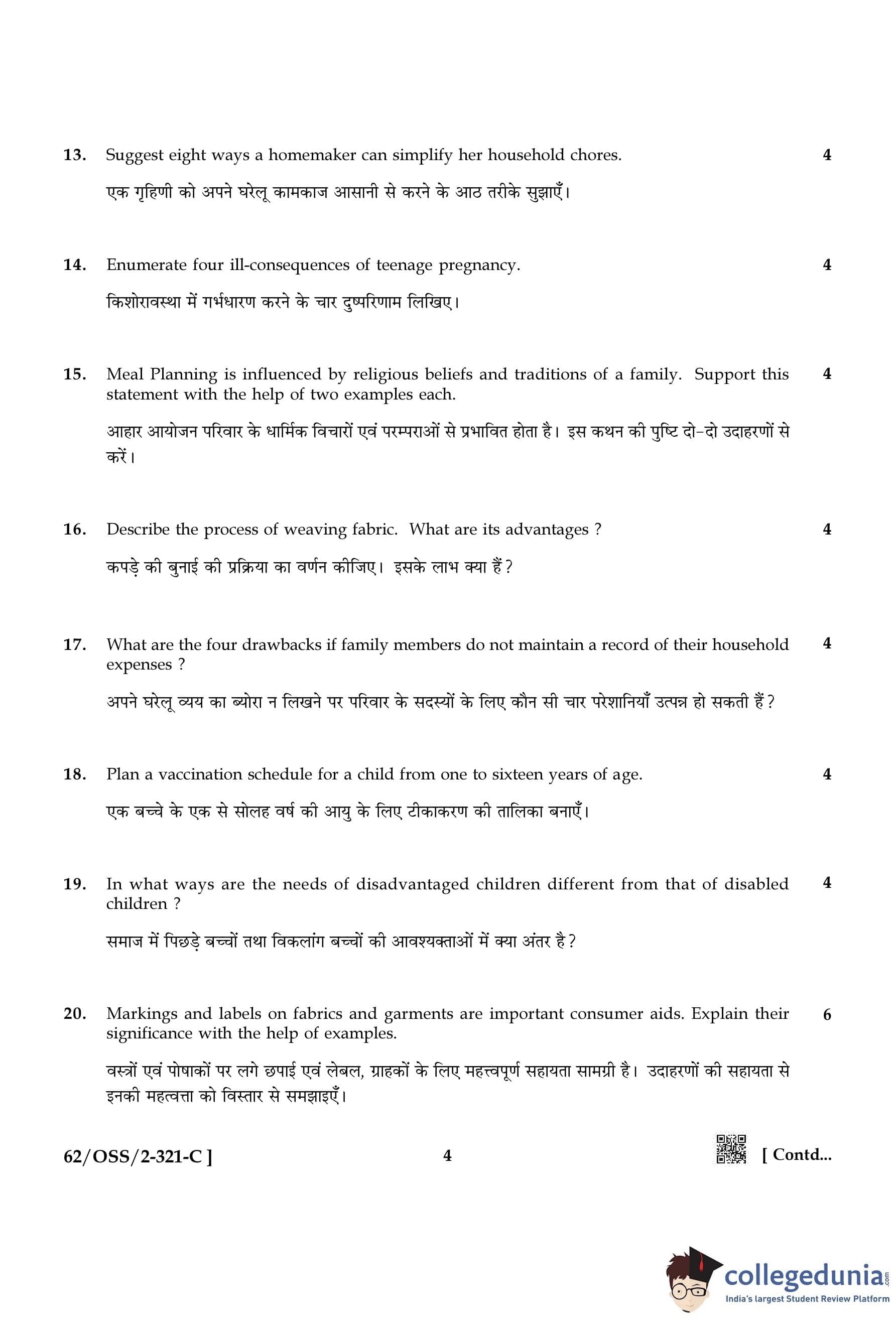 NIOS Class 12 Home Science Compartment Question Paper 2021 with Answer Key