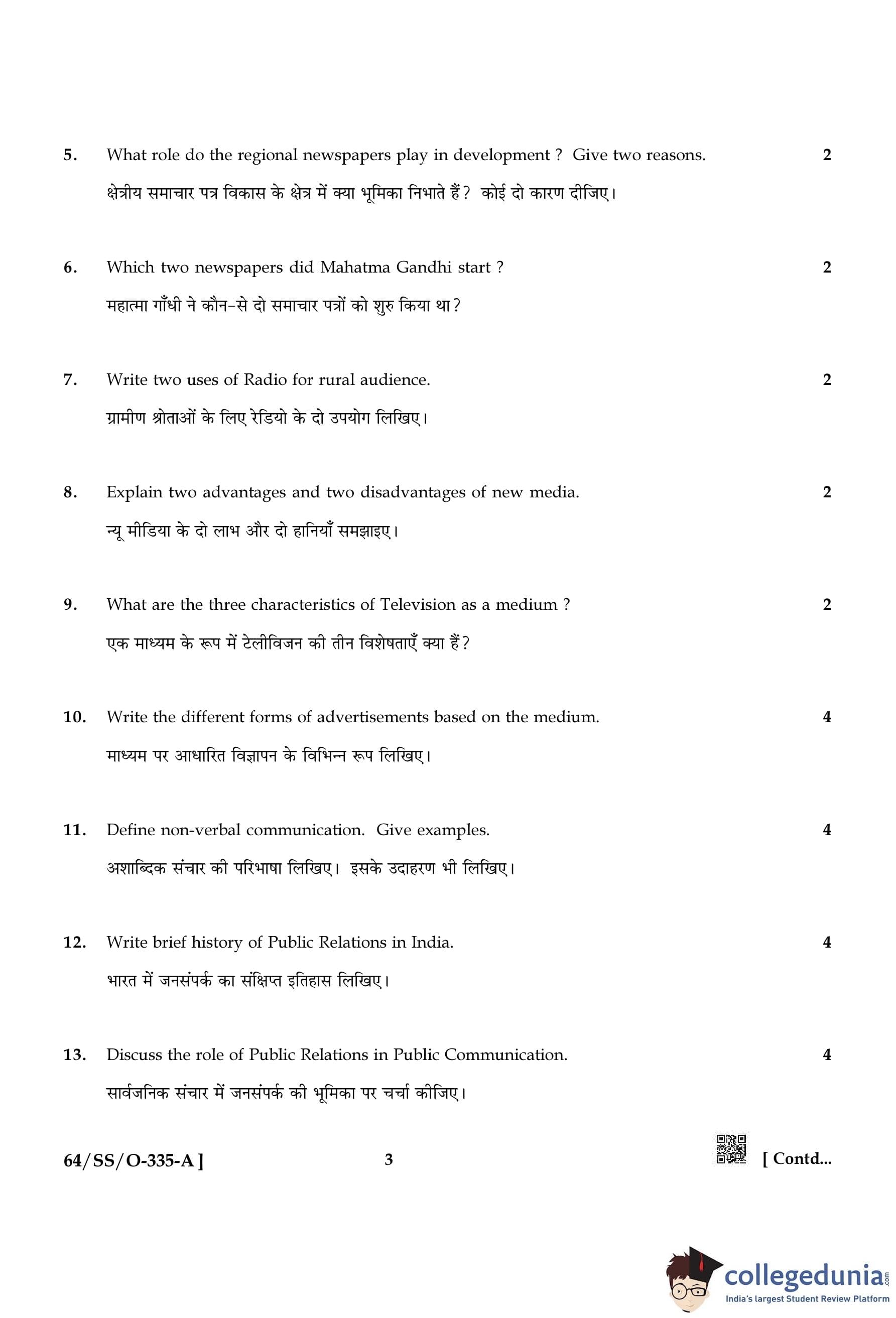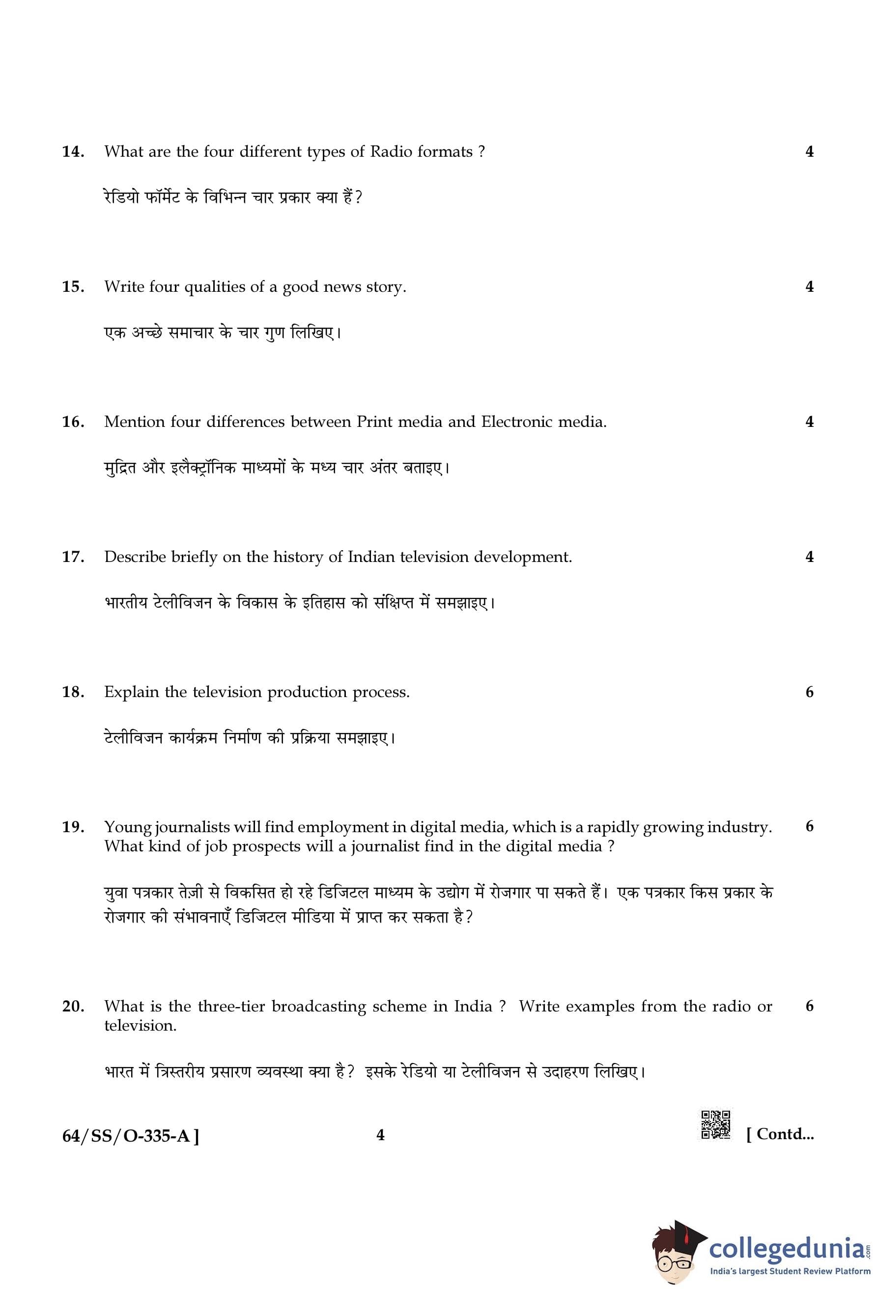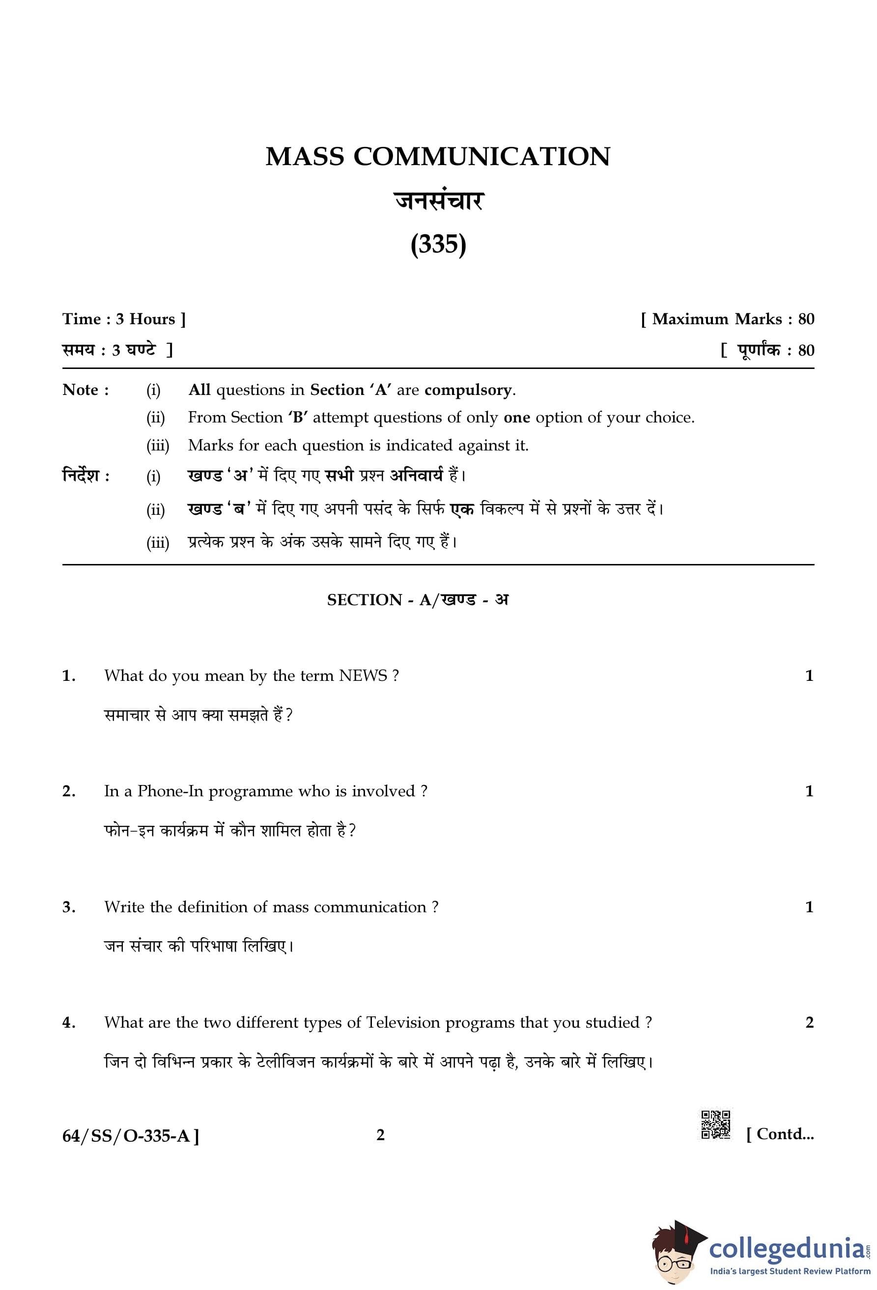 NIOS Class 12 Mass Communication Compartment Question Paper 2022 with Answer Key pdf is available for download here. The exam was conducted by National Institute of Open Schooling on November 5, 2022 in the Afternoon Session 2:30 PM to 5:30 PM. The question paper comprised a total of 25 questions divided among 2 sections.