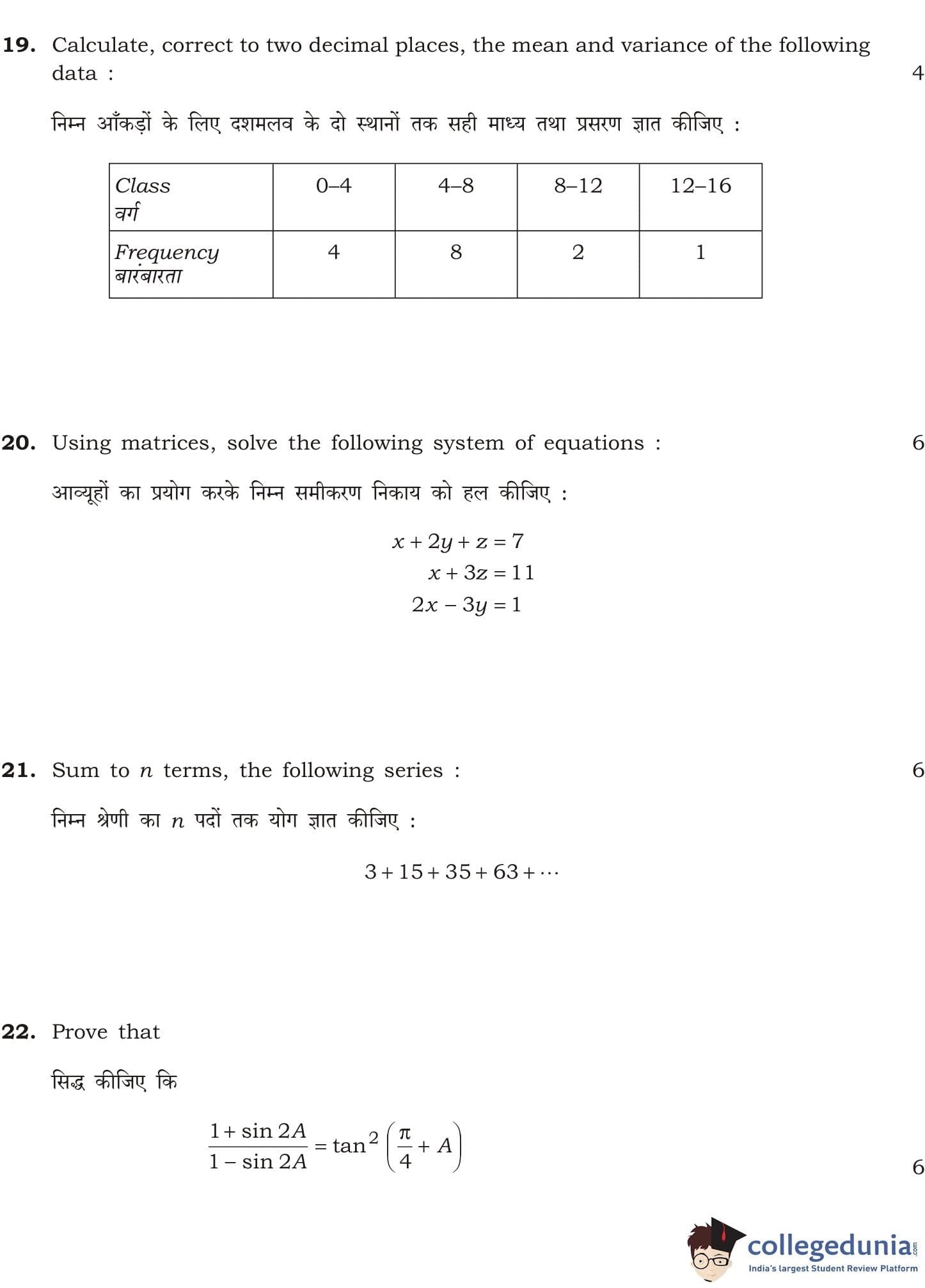 NIOS Class 12 Mathematics Compartment Question Paper 2014 with Answer Key
