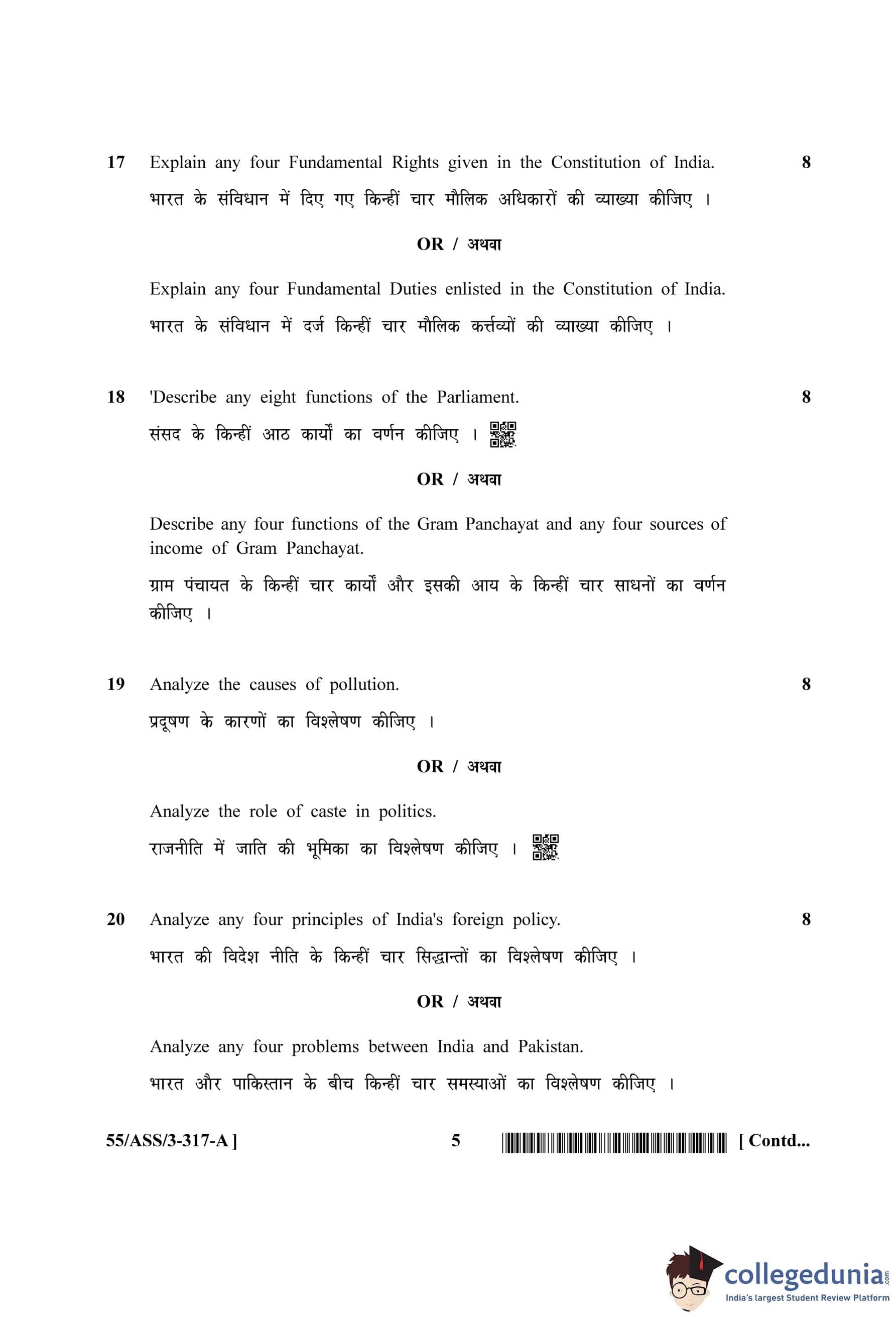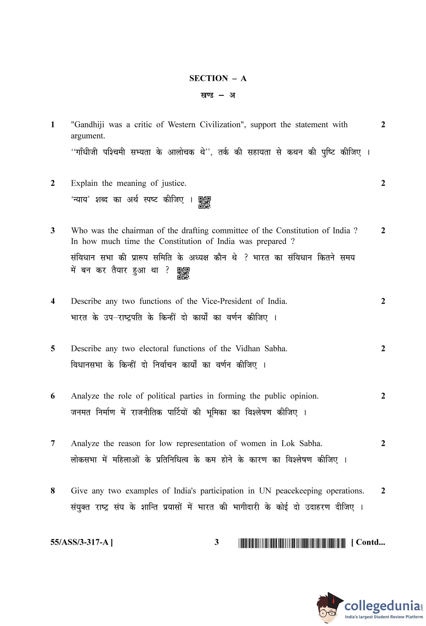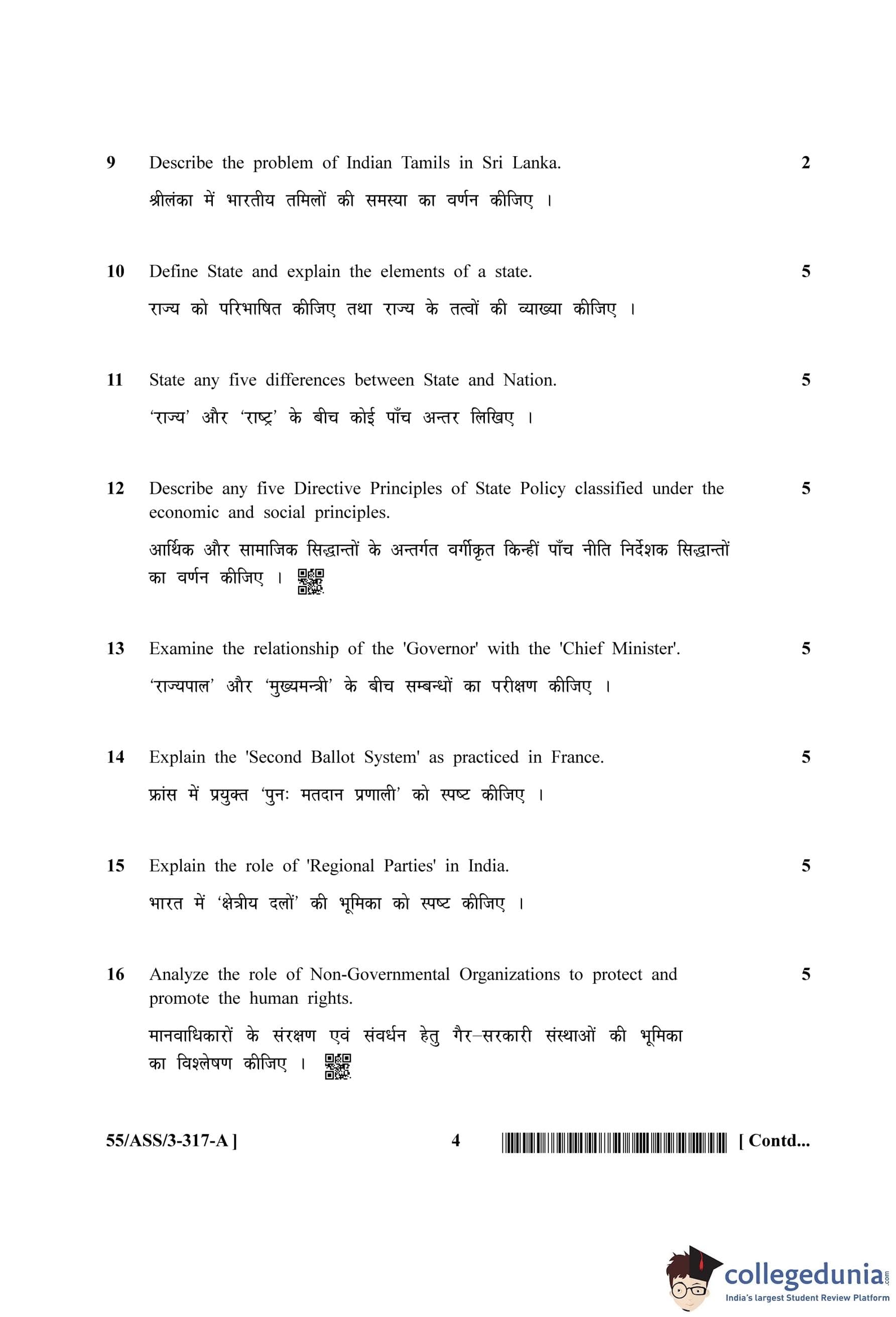 NIOS Class 12 Political Science Compartment Question Paper 2017 with Answer Key