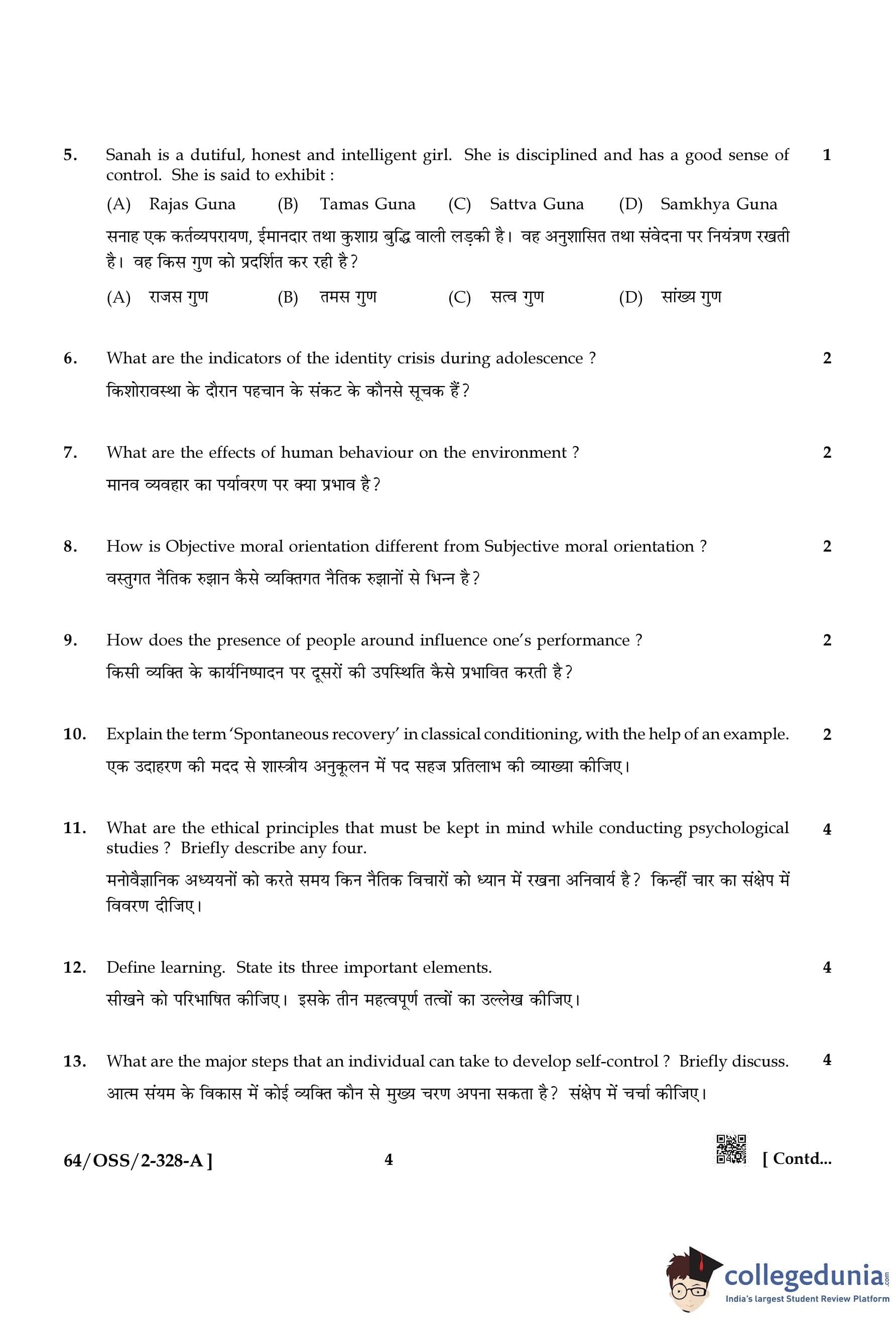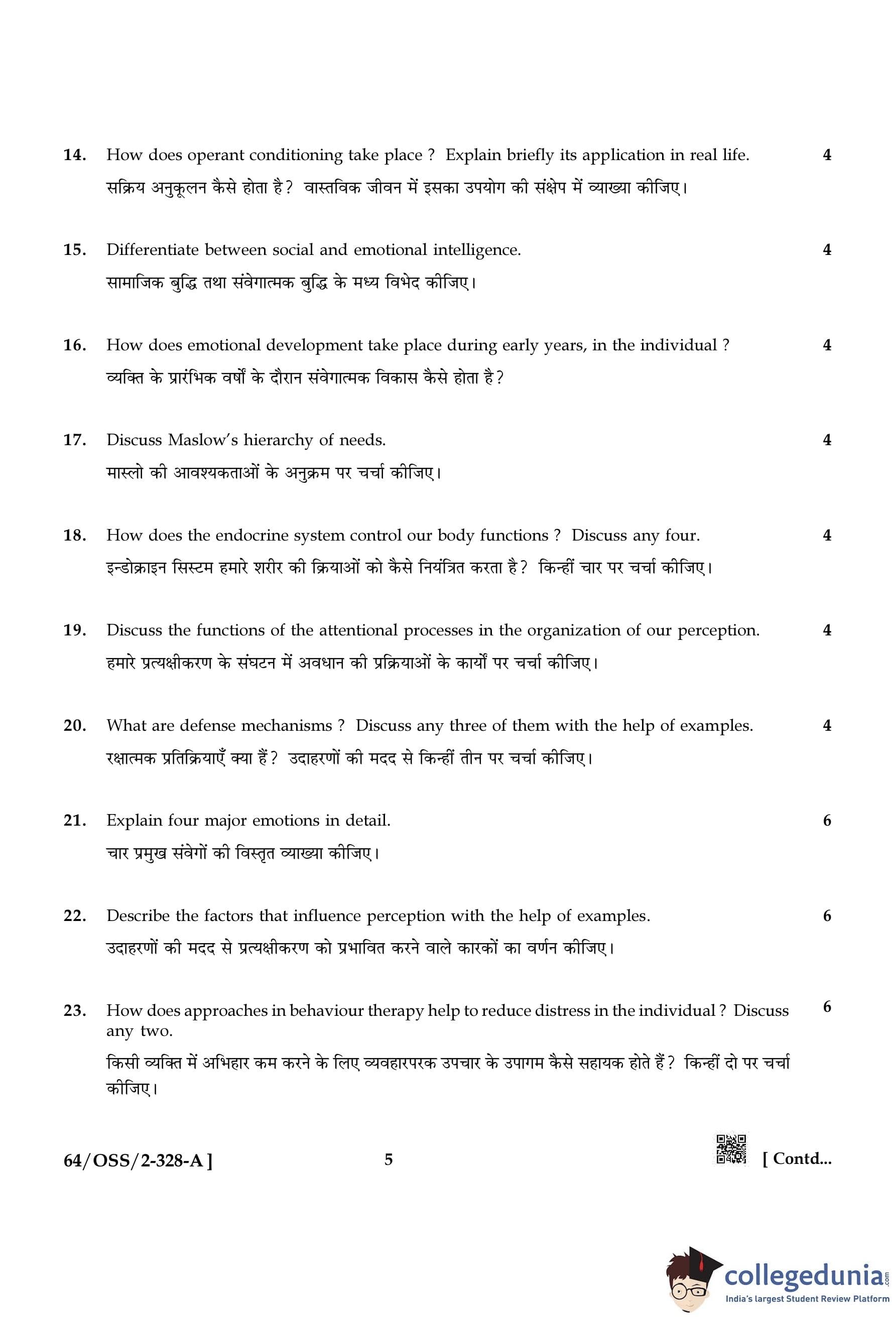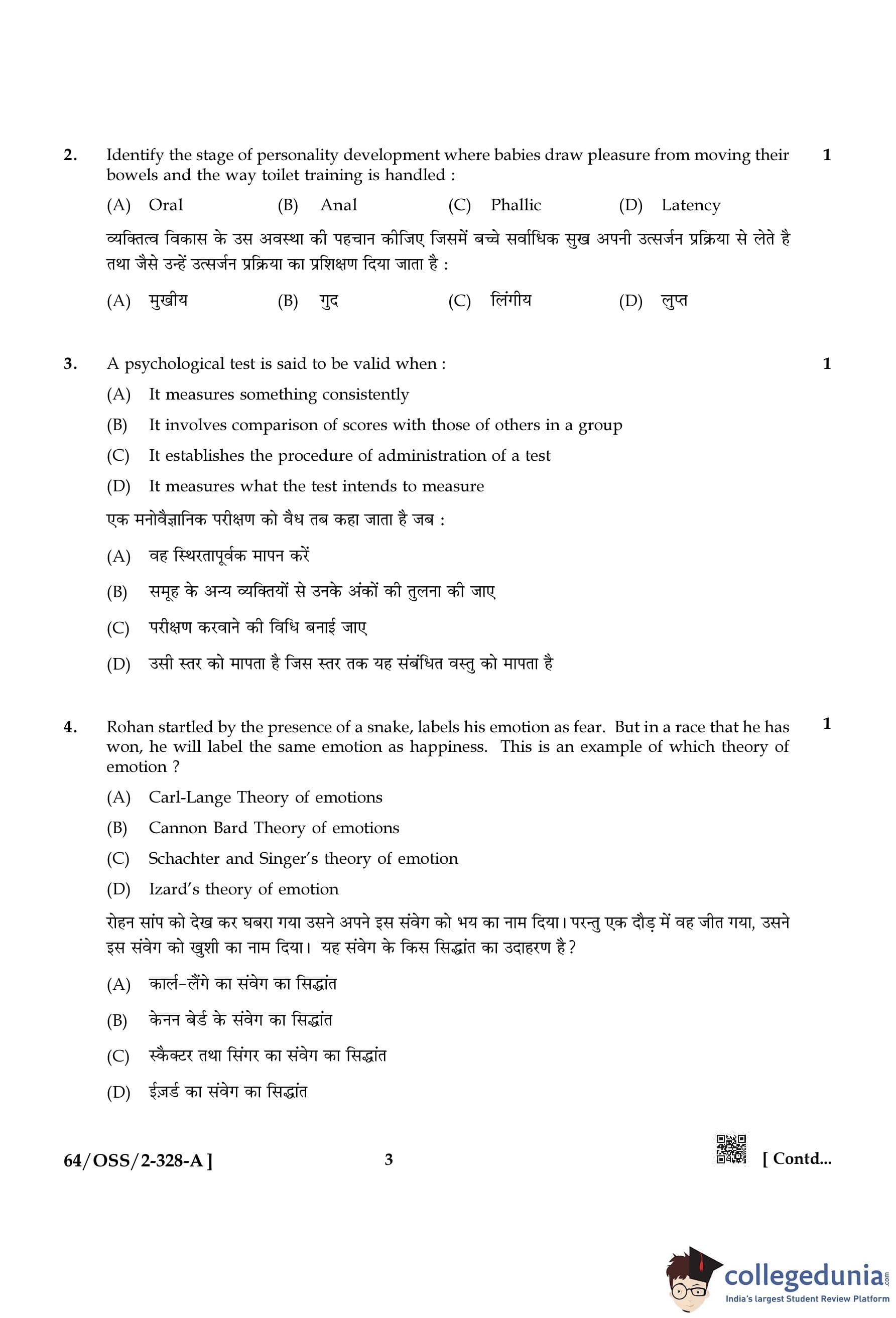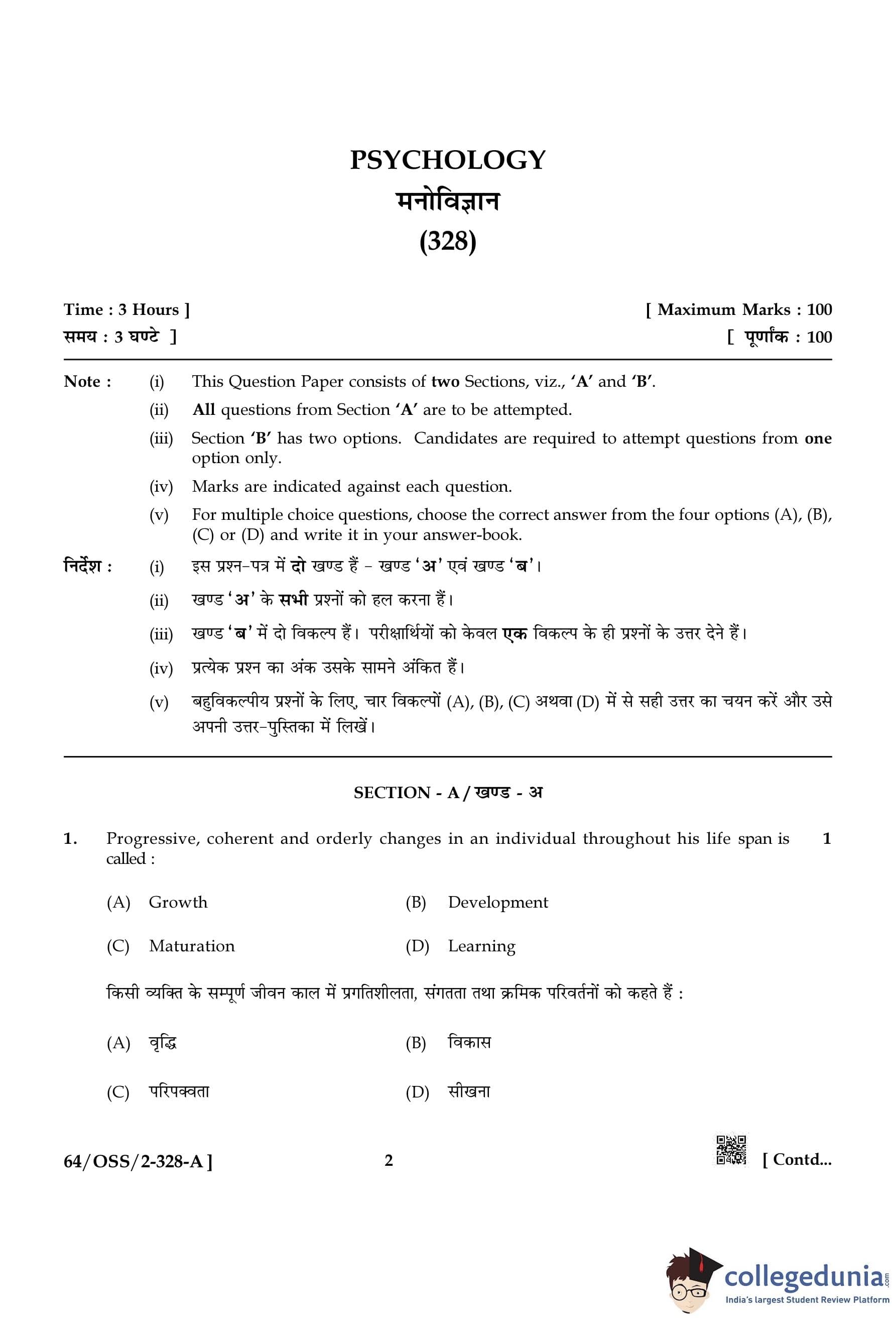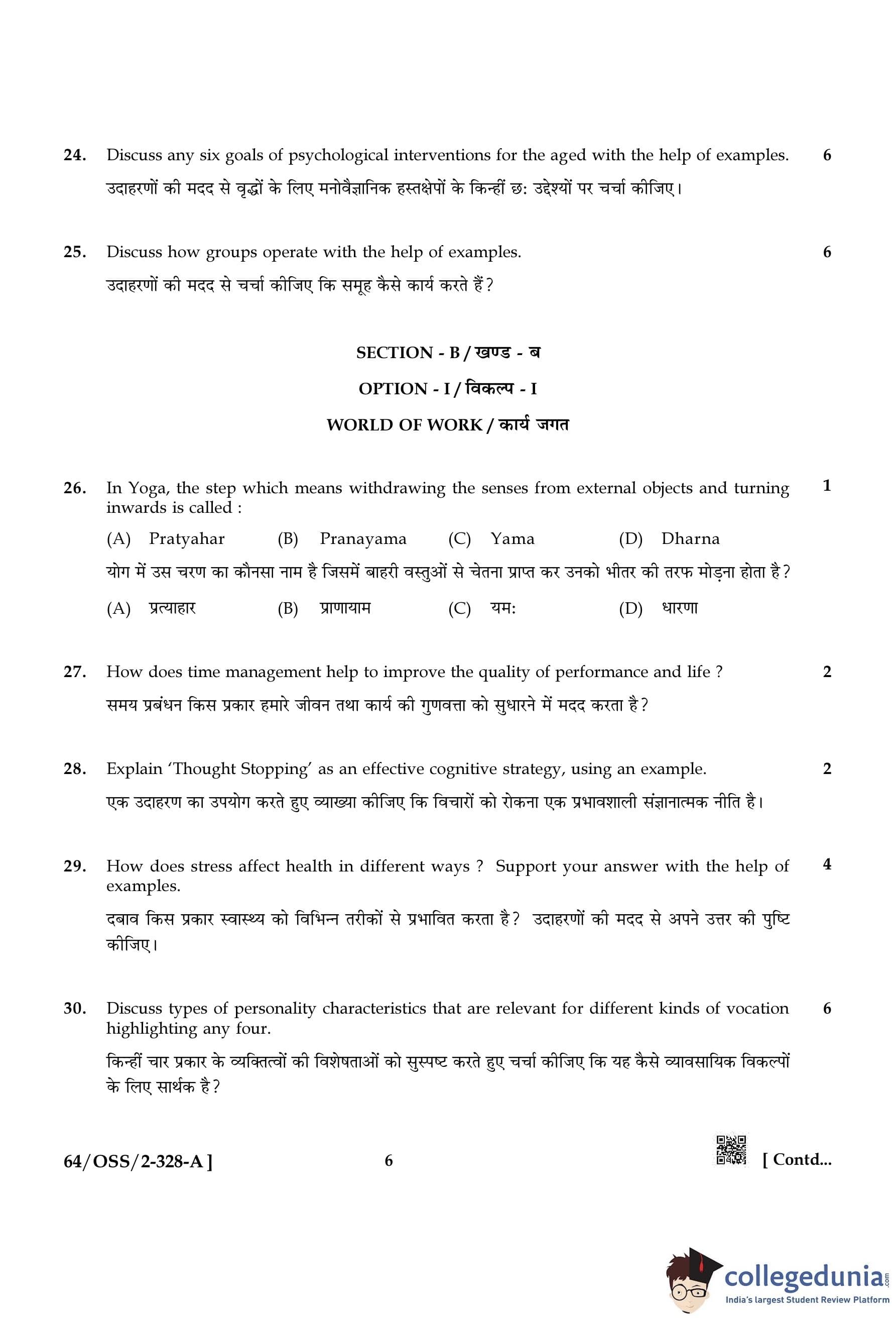 NIOS Class 12 Psychology Compartment Question Paper 2022 with Answer Key pdf (Set A) is available for download here. The exam was conducted by National Institute of Open Schooling on October 20, 2022 in the Afternoon Session 2:30 PM to 5:30 PM. The question paper comprised a total of 30 questions divided among 2 sections.