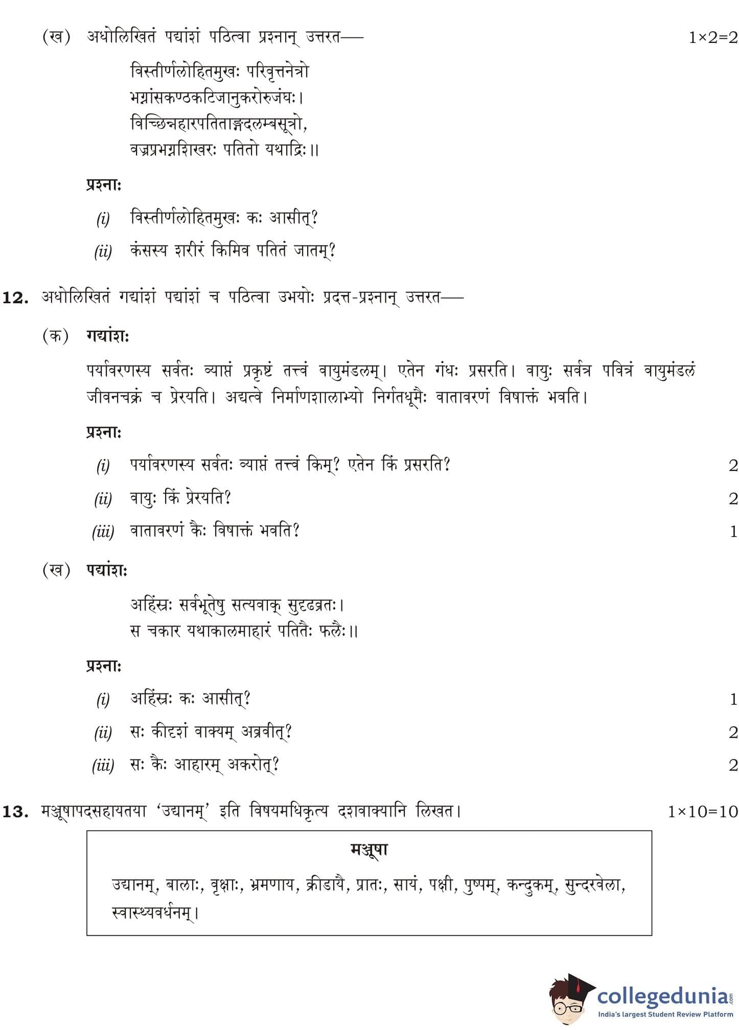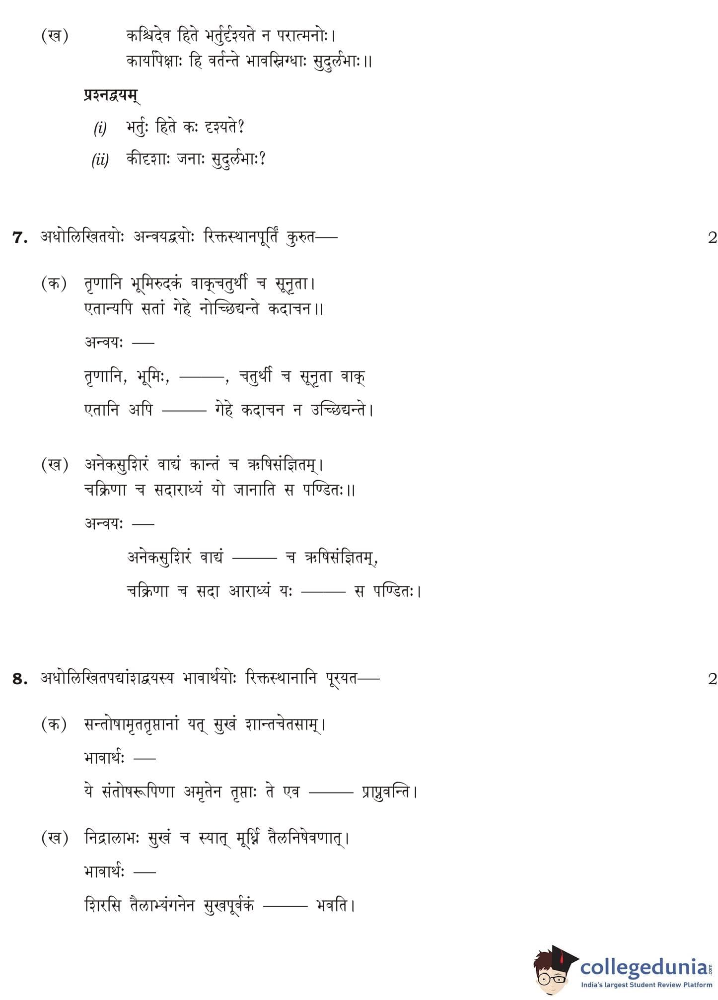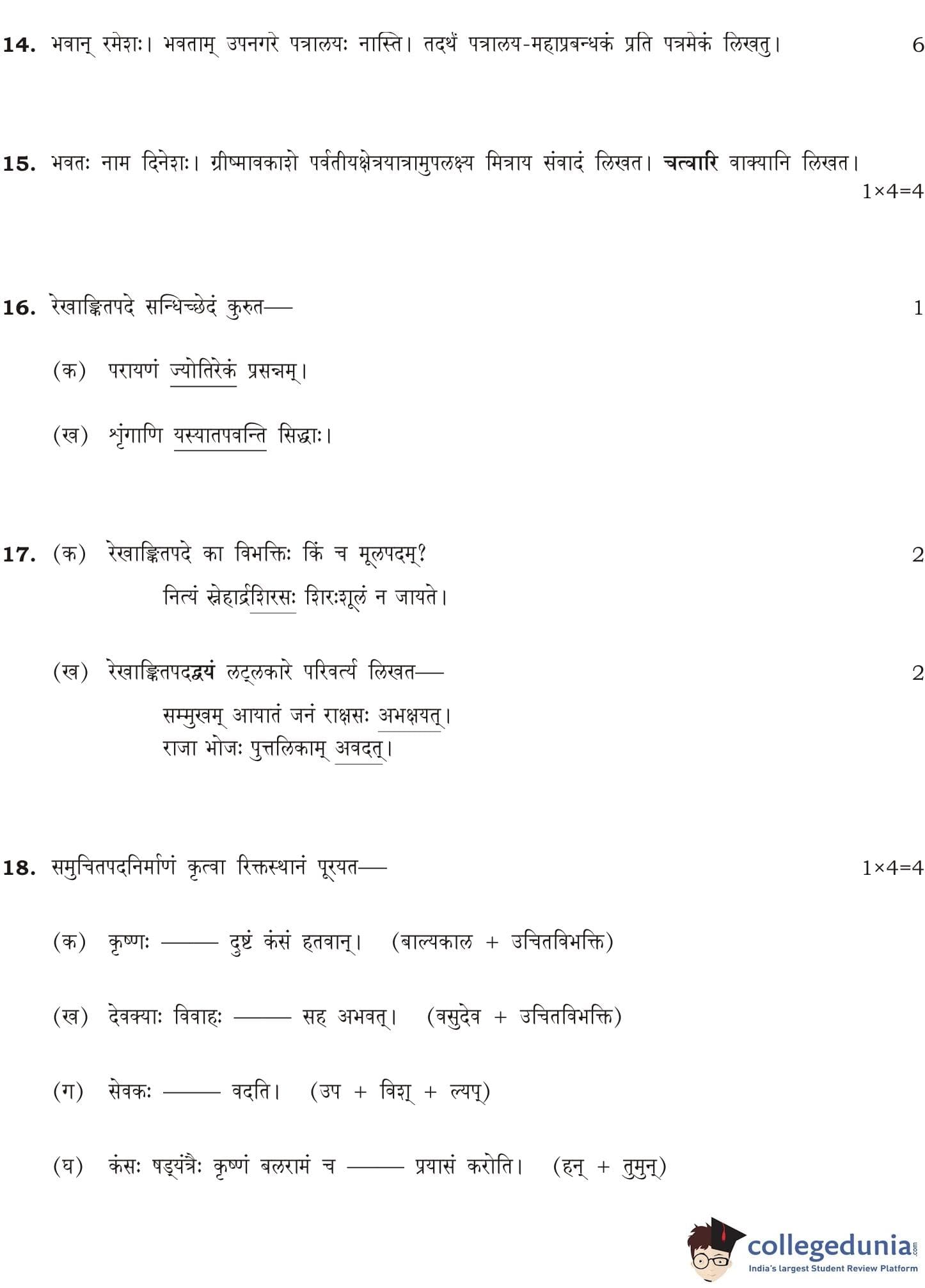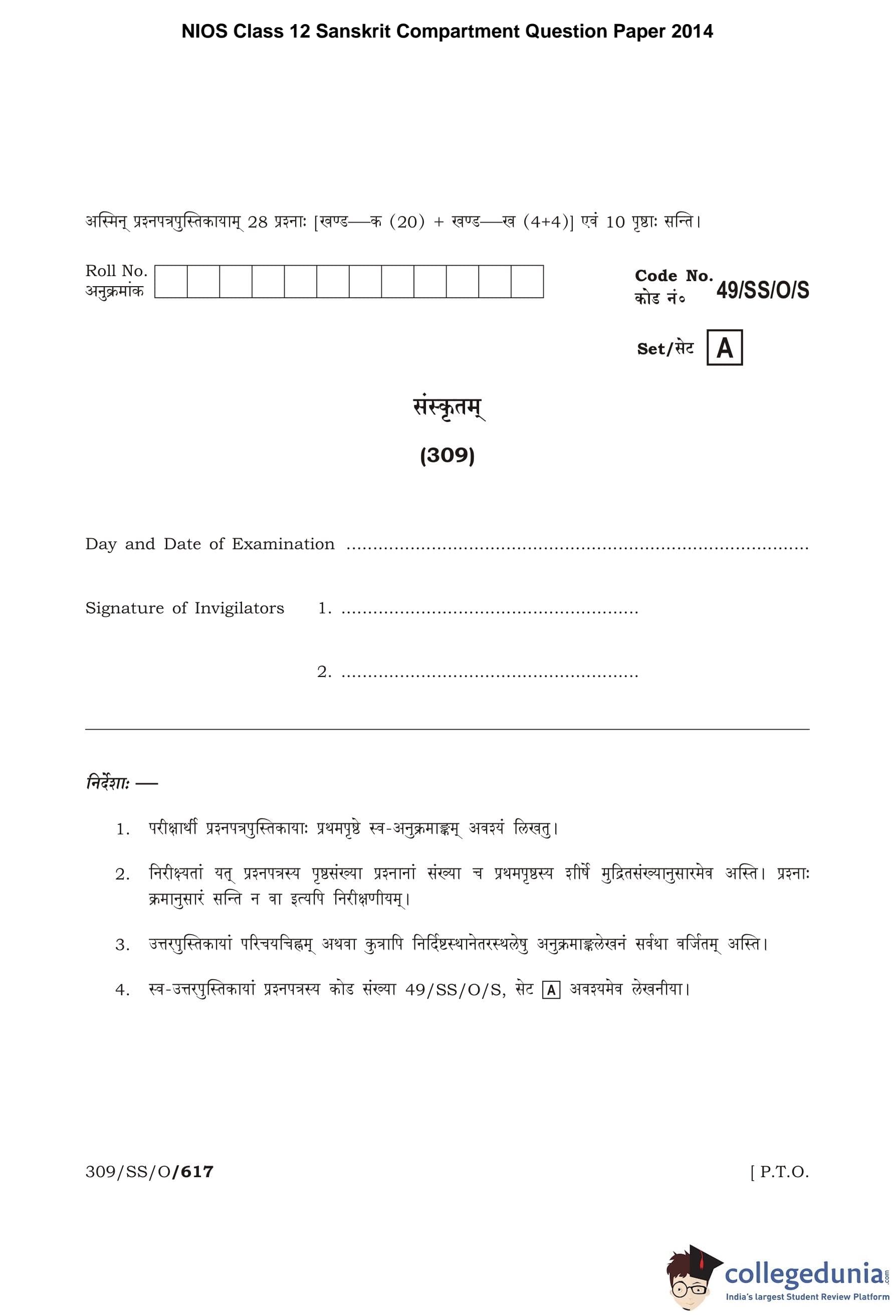 NIOS Class 12 Sanskrit Compartment Question Paper 2014 with Answer Key