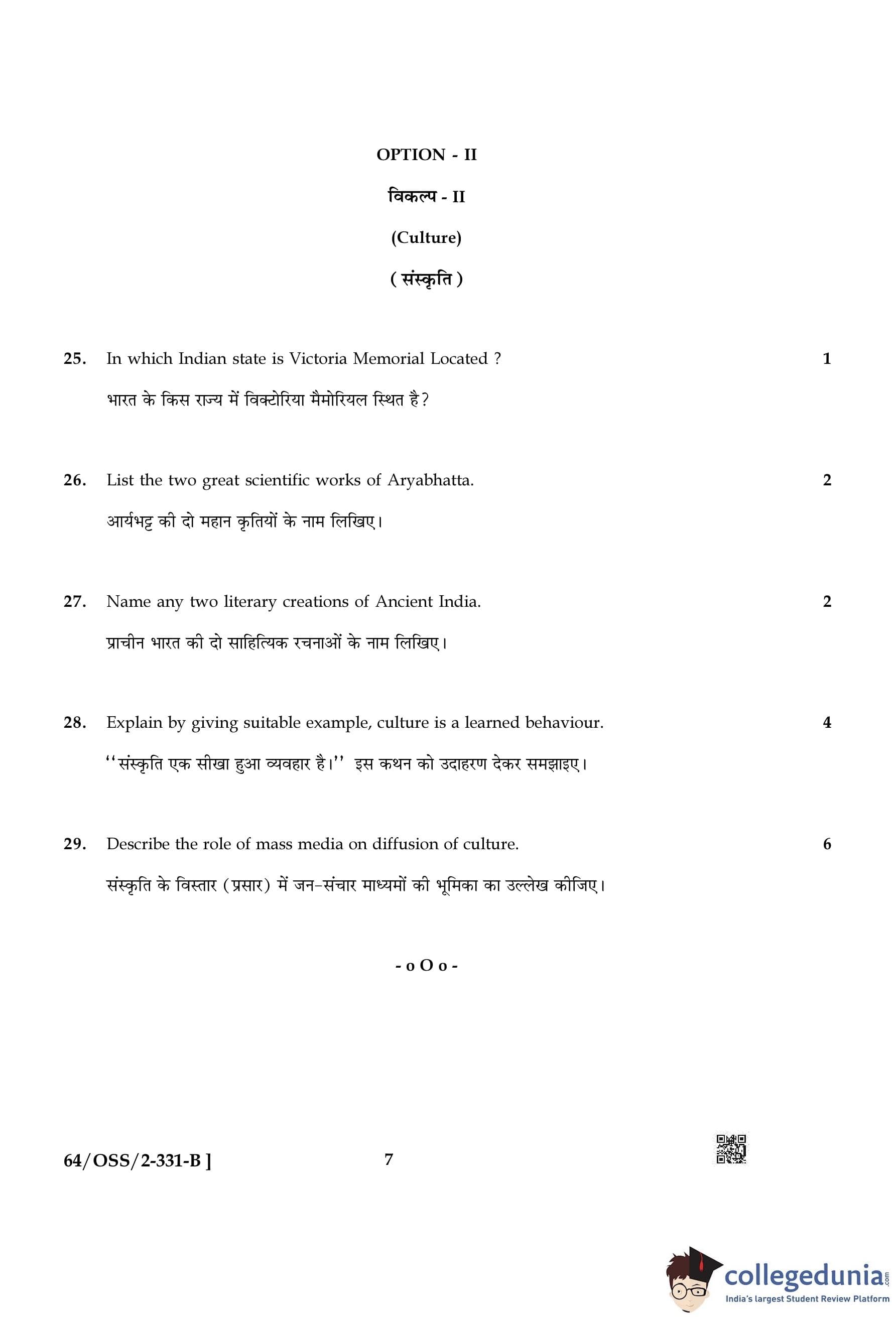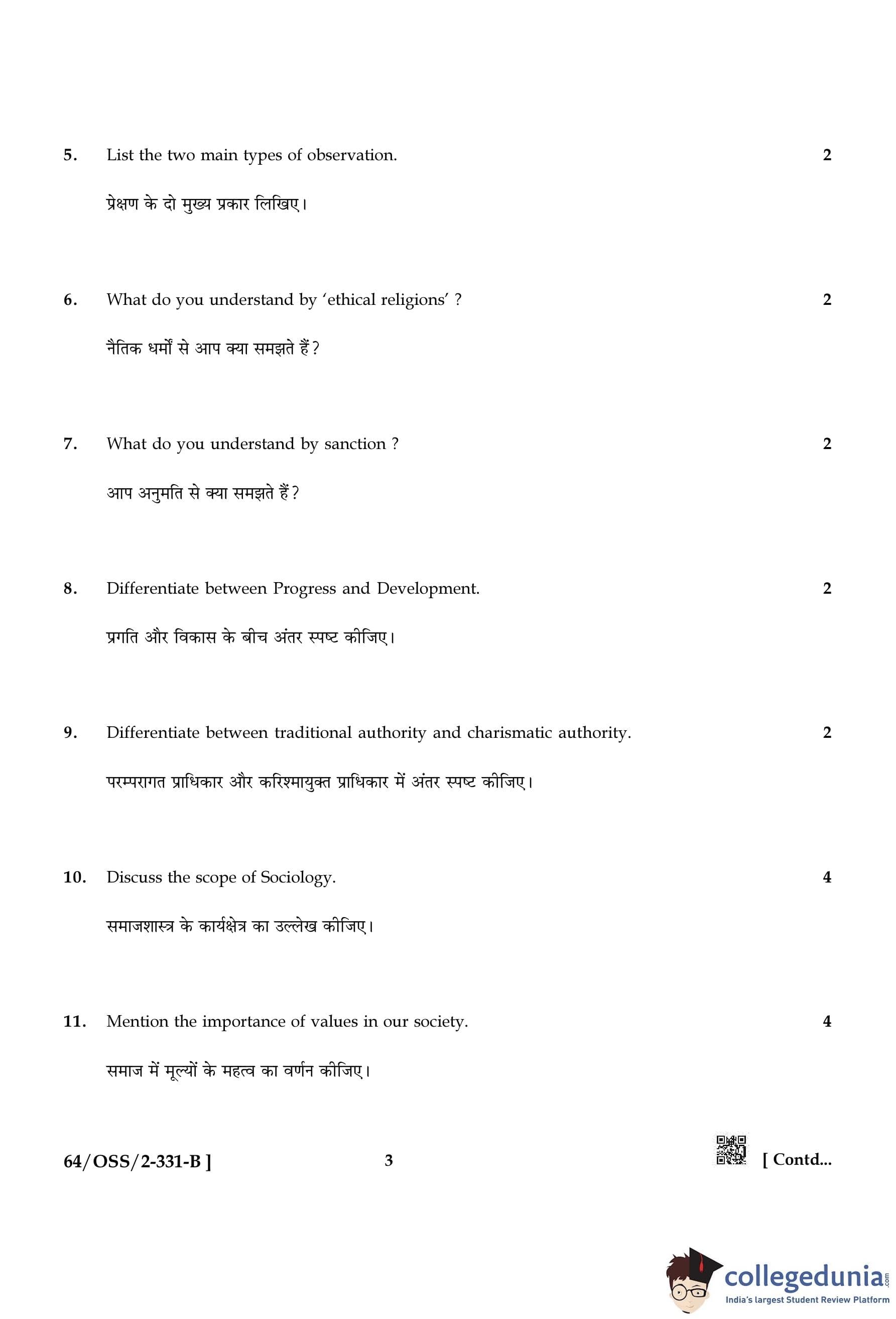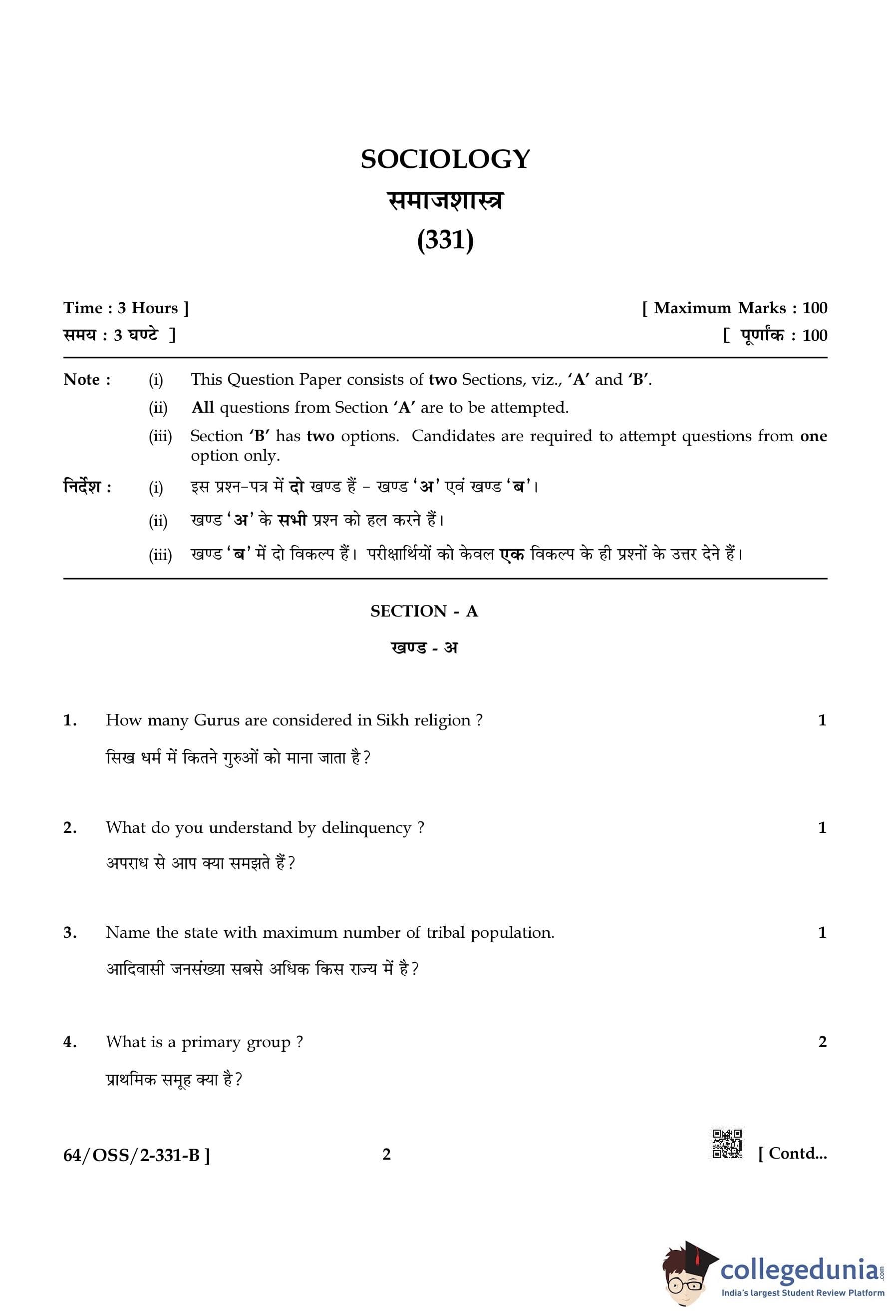 NIOS Class 12 Sociology Compartment Question Paper 2022 with Answer Key pdf (Set B) is available for download here. The exam was conducted by National Institute of Open Schooling on November 19, 2022 in the Afternoon Session 2:30 PM to 5:30 PM. The question paper comprised a total of 29 questions divided among 2 sections.