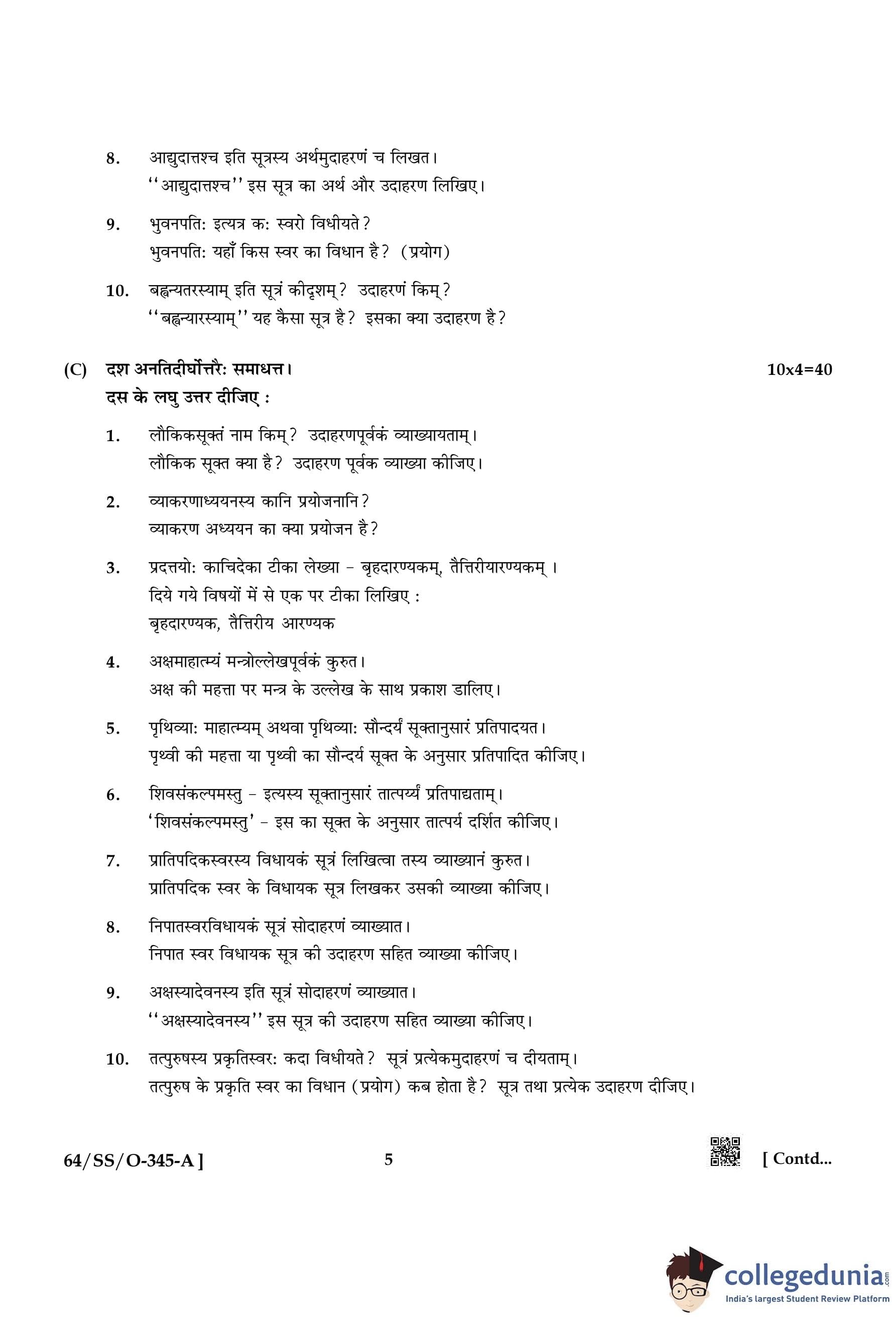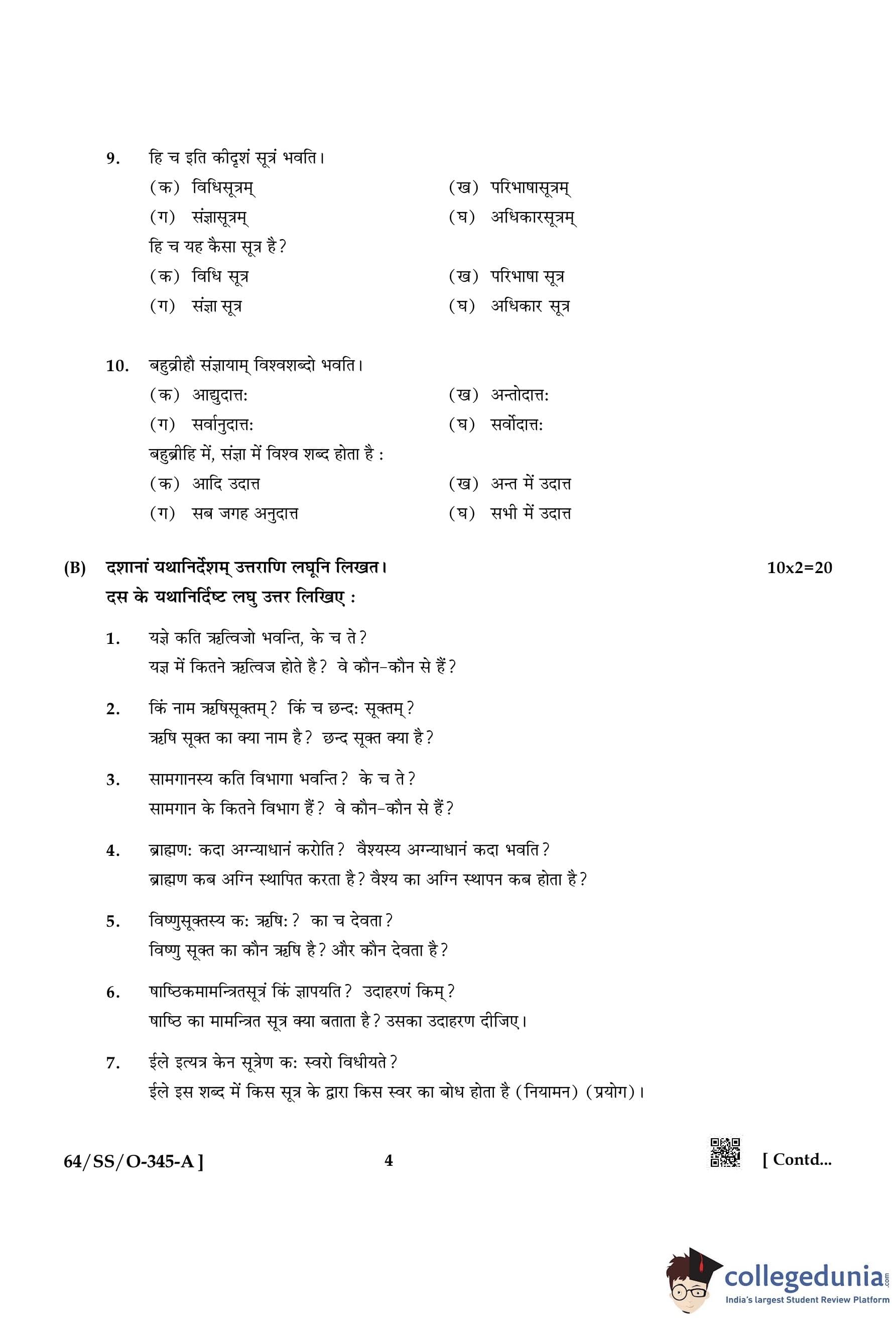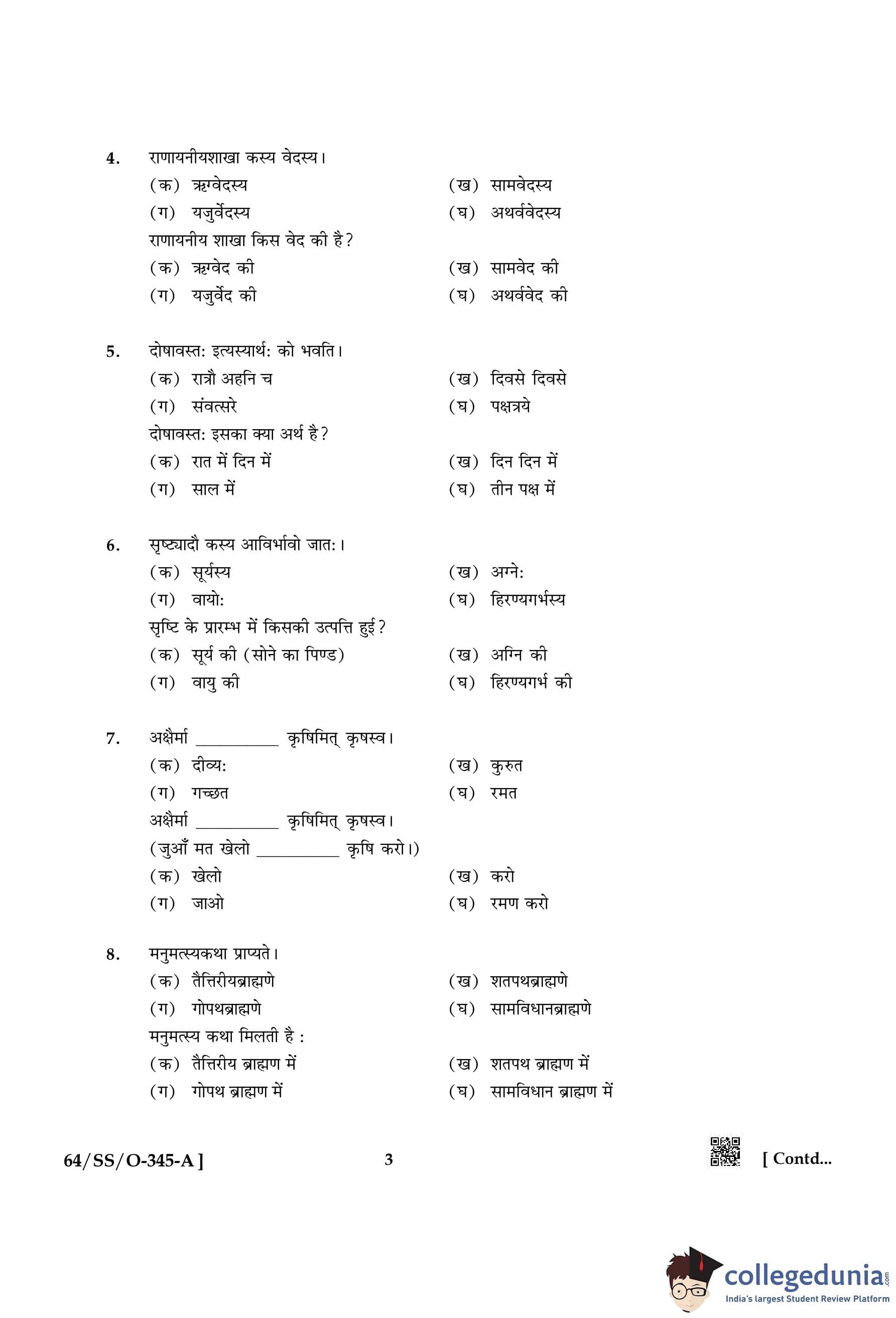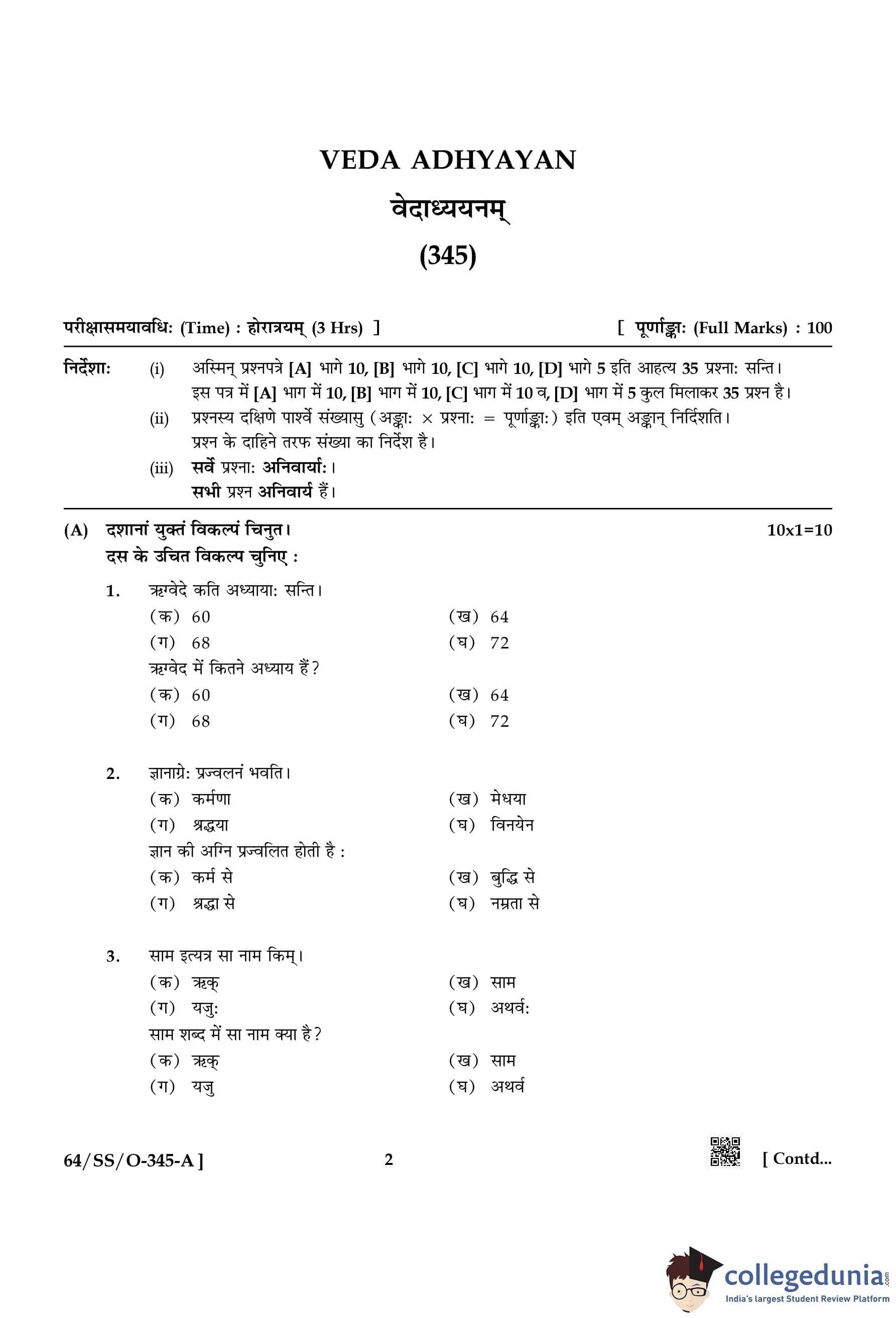 NIOS Class 12 Veda Adhyayan Compartment Question Paper 2022 with Answer Key pdf is available for download here. The exam was conducted by National Institute of Open Schooling on November 21, 2022 in the Afternoon Session 2:30 PM to 5:30 PM. The question paper comprised a total of 4 questions.