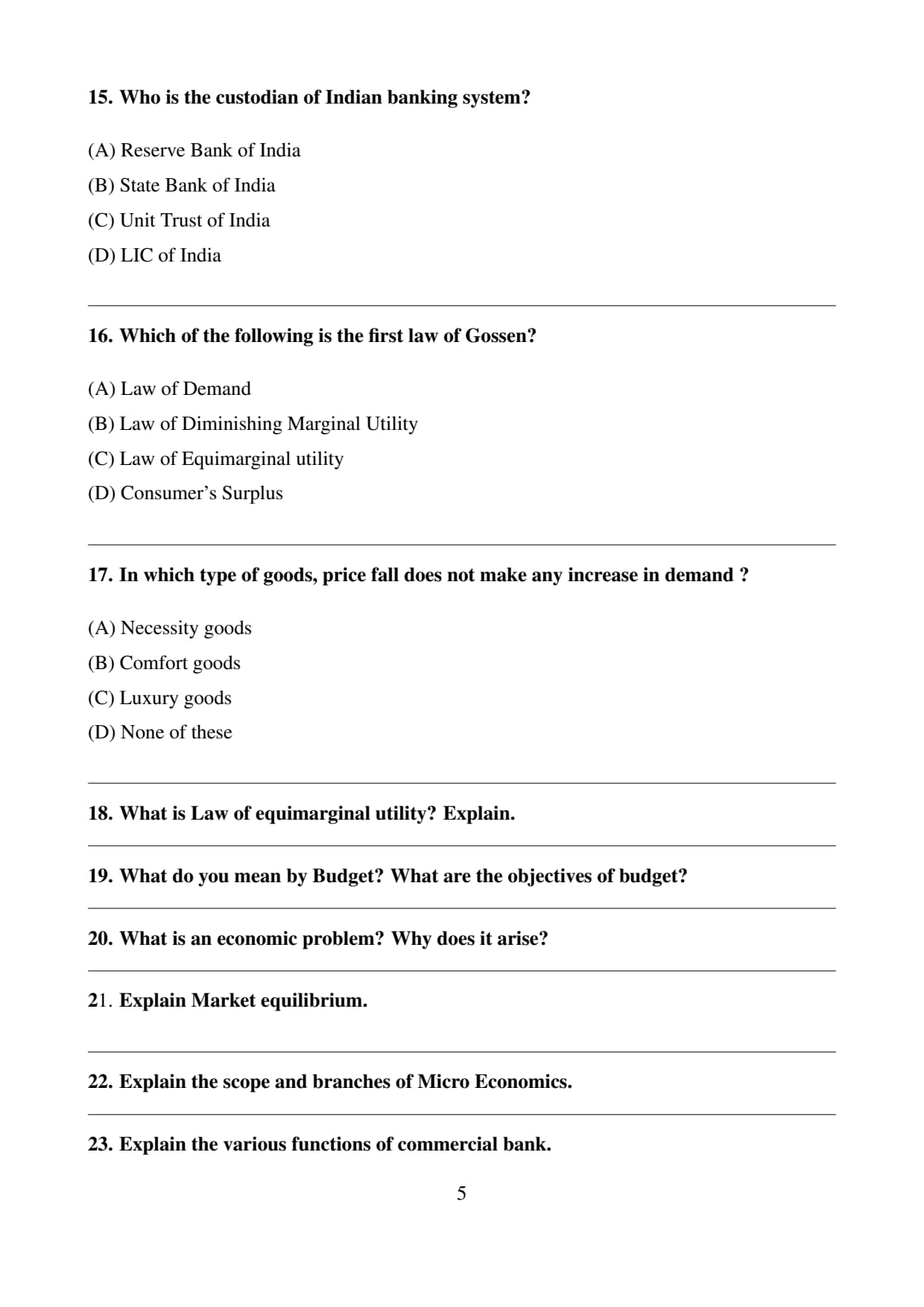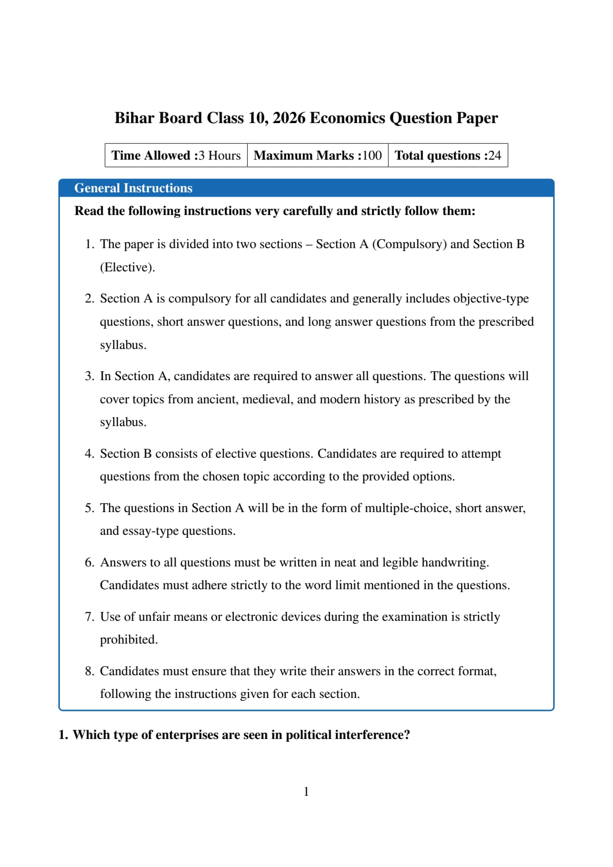 The official question paper of Bihar Board Class 10 Economics Board Exam 2026 is provided below. Students can download the official paper in PDF format for reference.