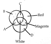 (b) Among the colours A, B, C and D identify the primary colours and write down the colours.