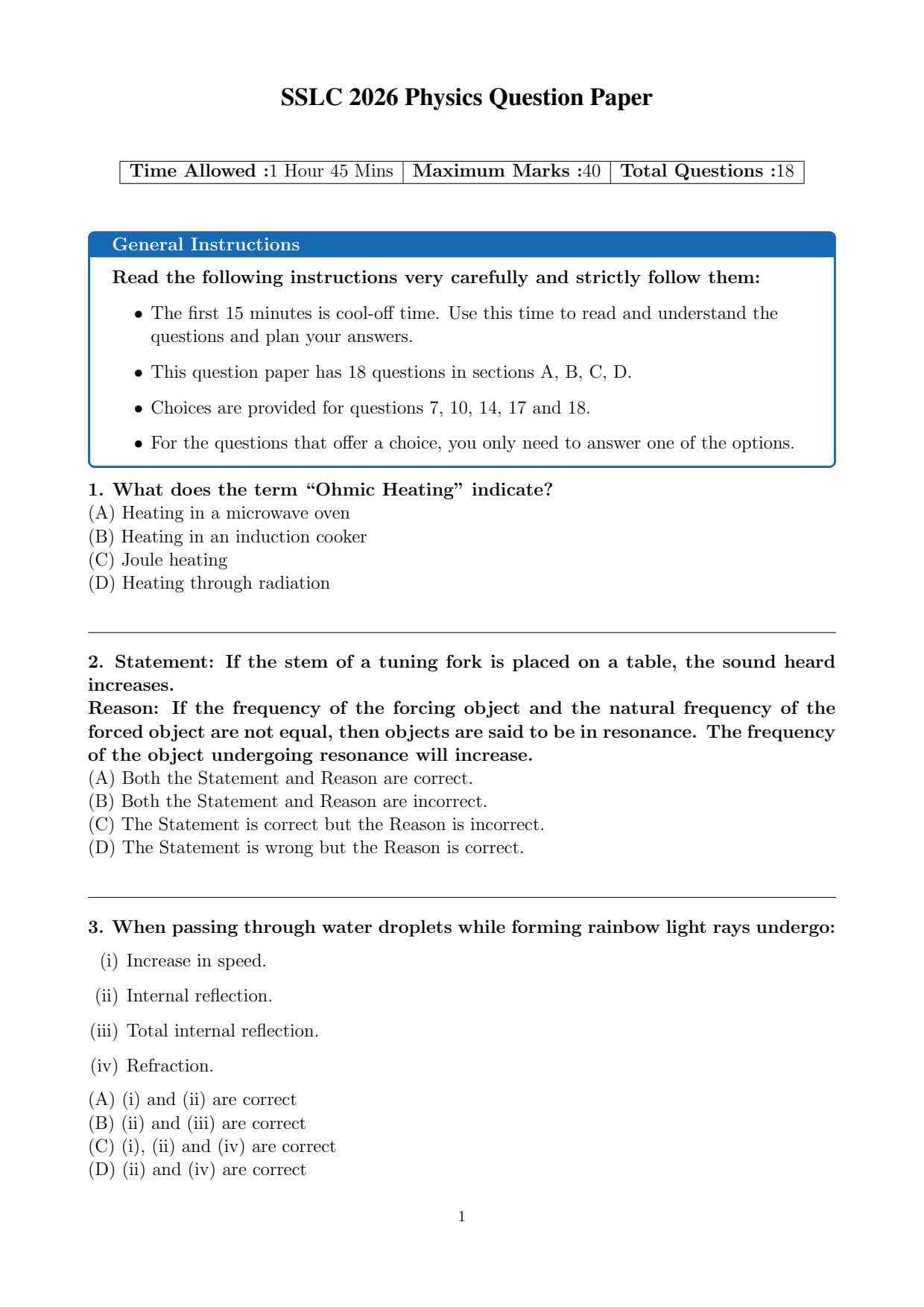 | Kerala Board Class 10 Physics Question Paper 2026 | Download PDF | Check Solution |