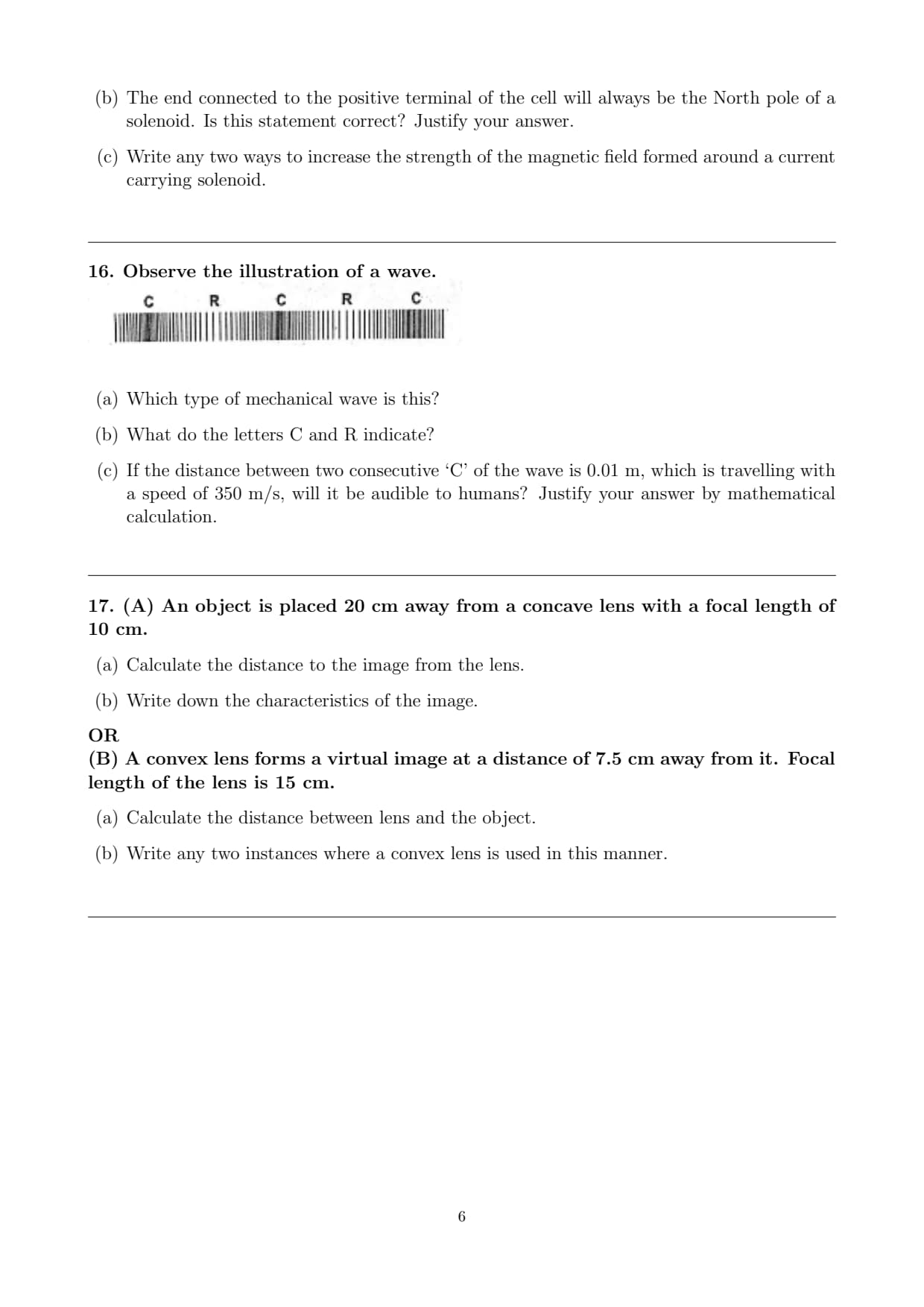 (c) Write any two ways to increase the strength of the magnetic field formed around a current carrying solenoid.