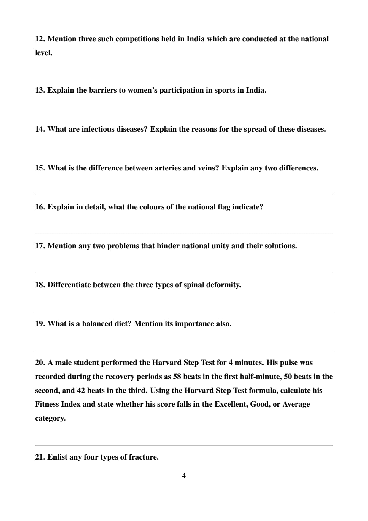 The Haryana Board Class 10 Physical Education (NSQF) paper covered key topics from physical fitness, sports nutrition, health-related fitness, and fitness training techniques. Students should focus on understanding fitness components, nutrition for athletes, and injury prevention. The exam is marked out of 100, with 80 marks for the theory paper and 20 for internal assessment.