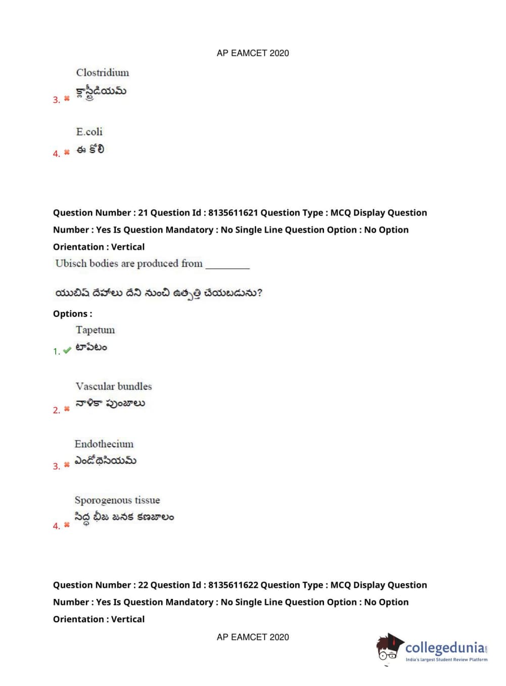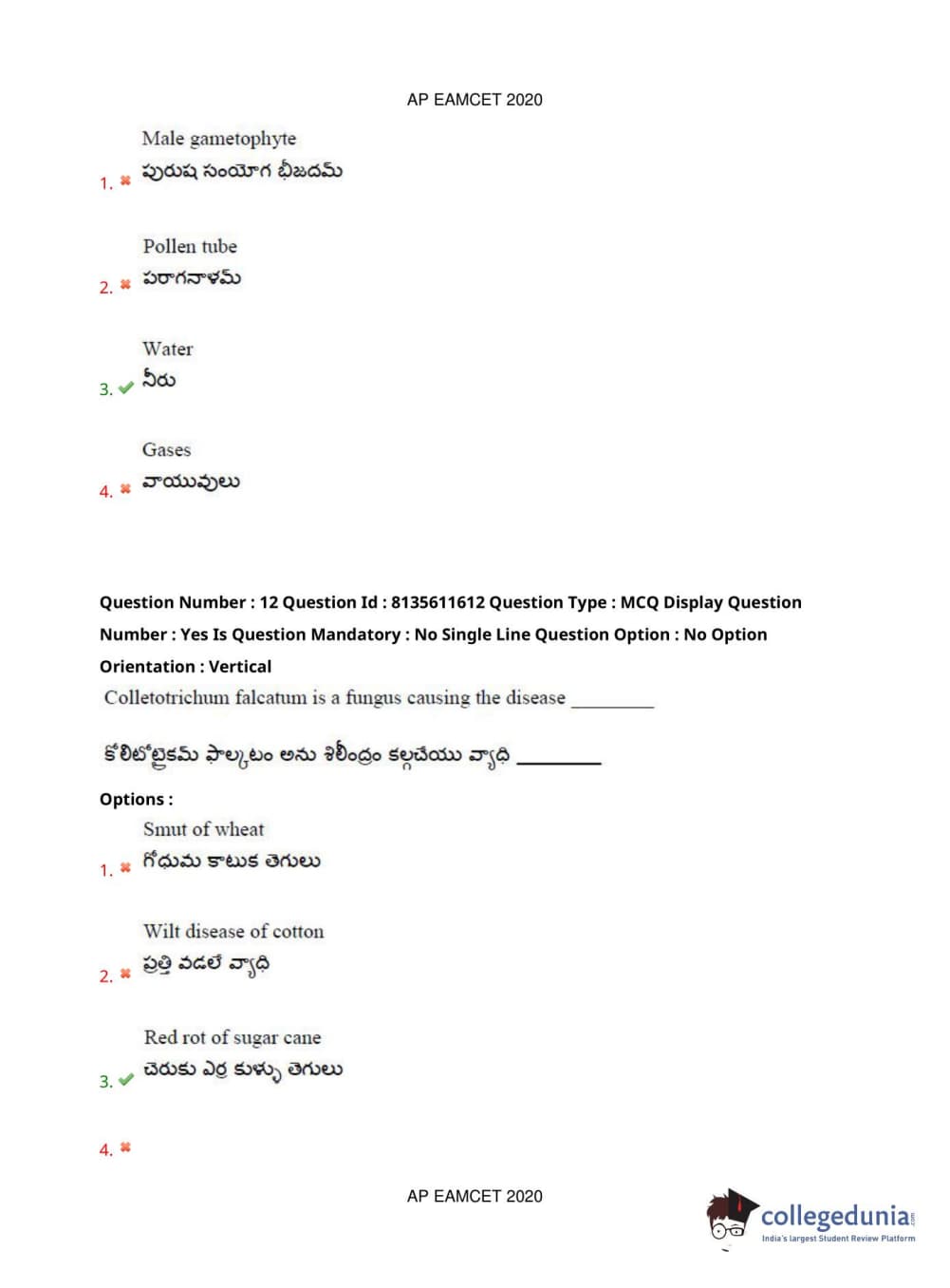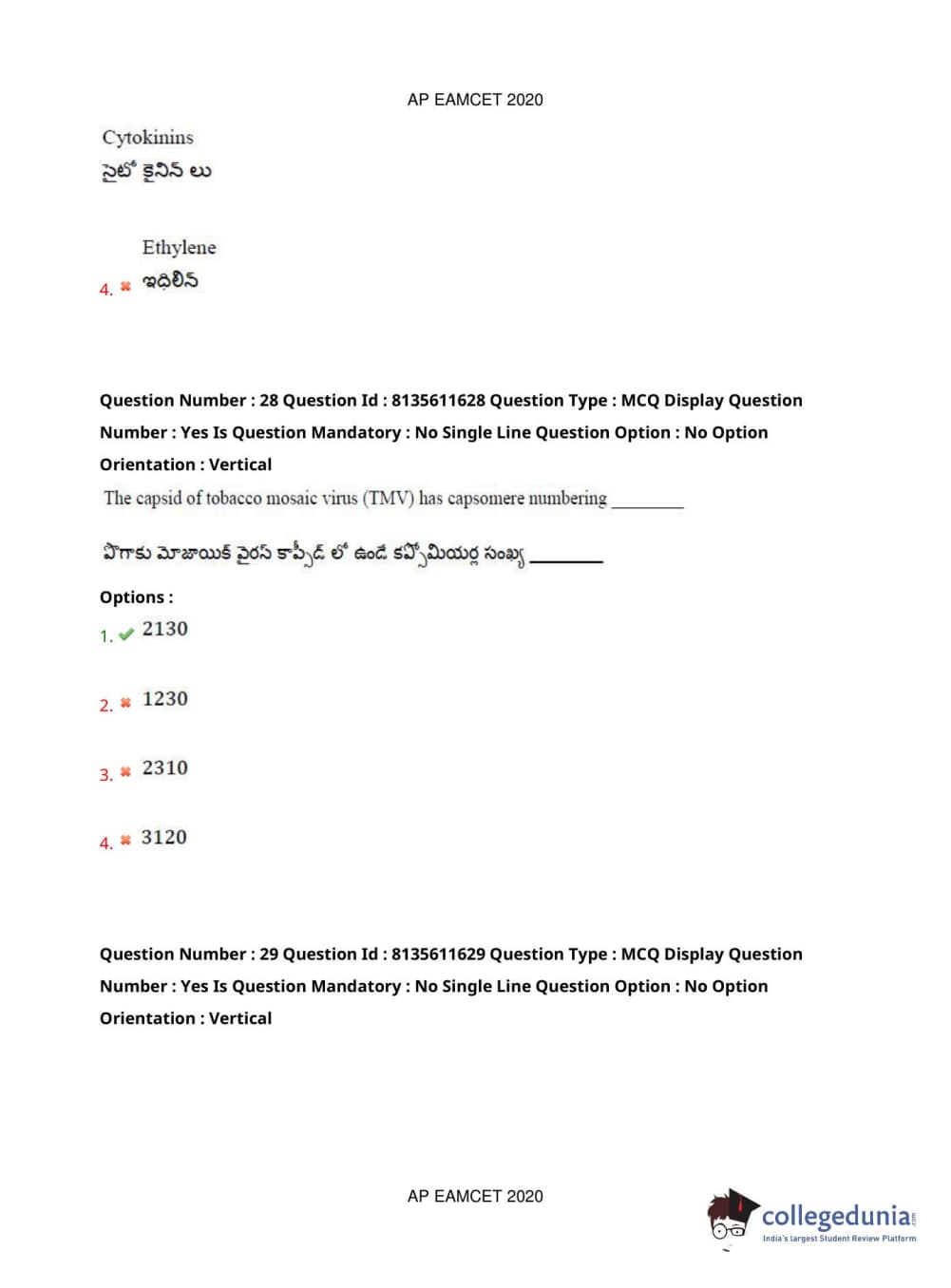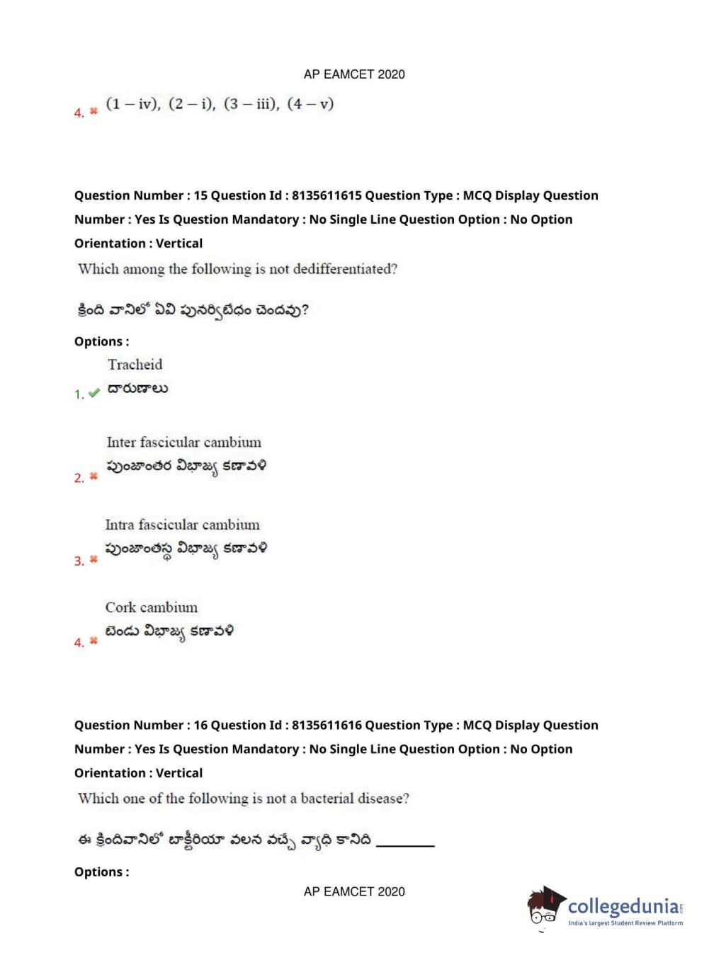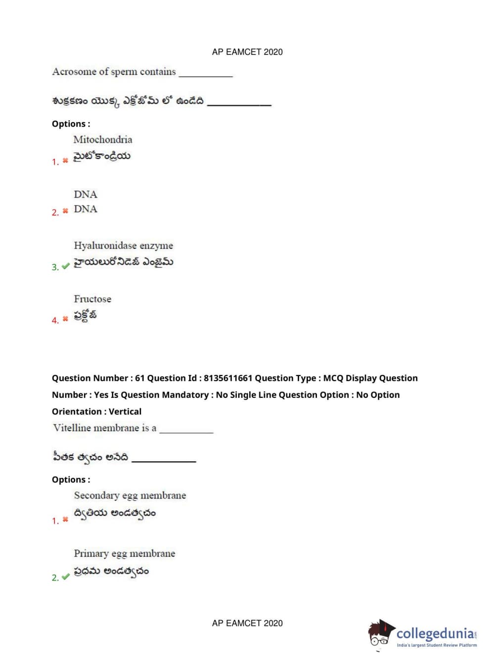 AP EAPCET 2020 Agriculture and Medical Question Paper with Answer Key PDFs Forenoon Session