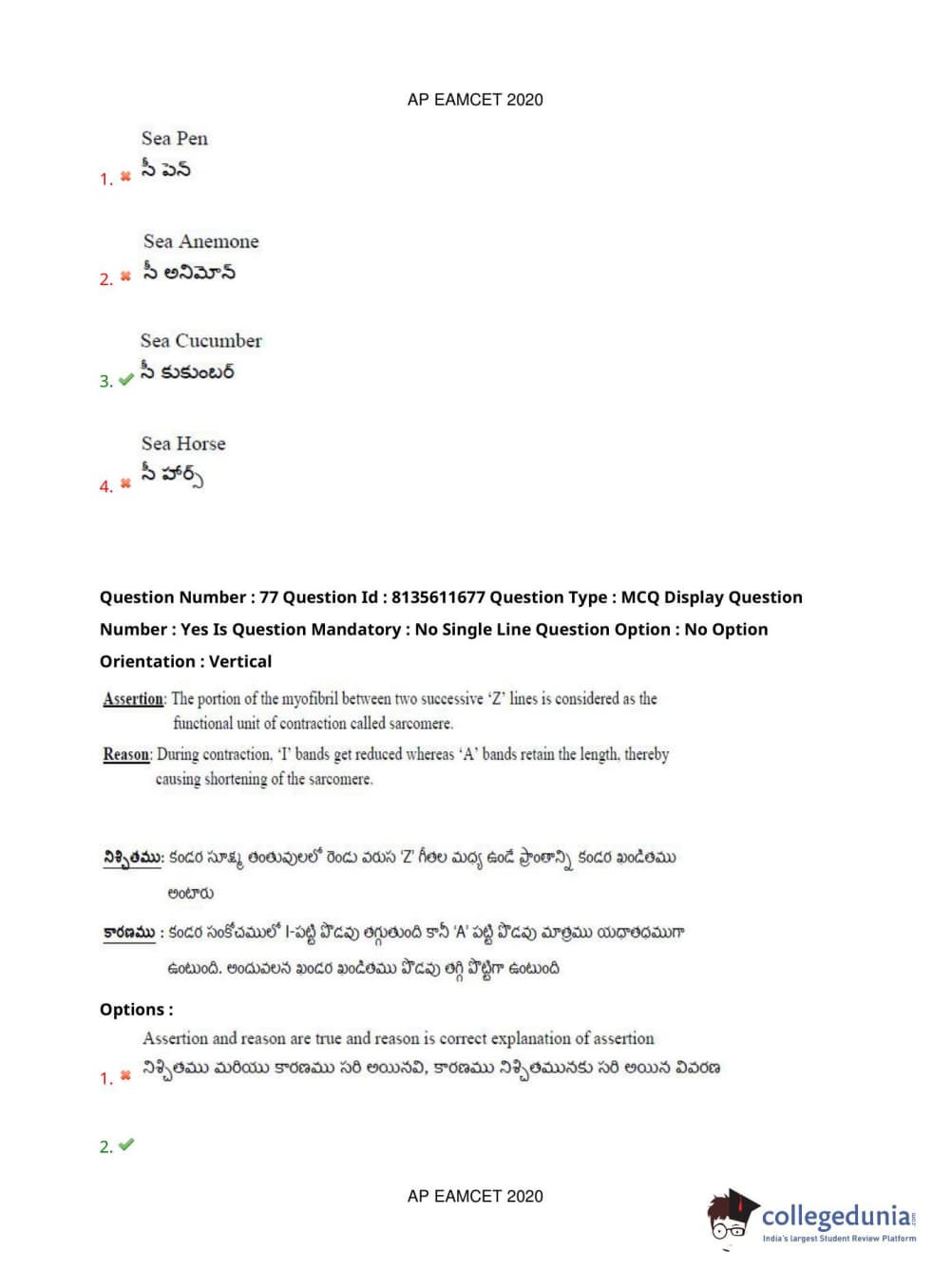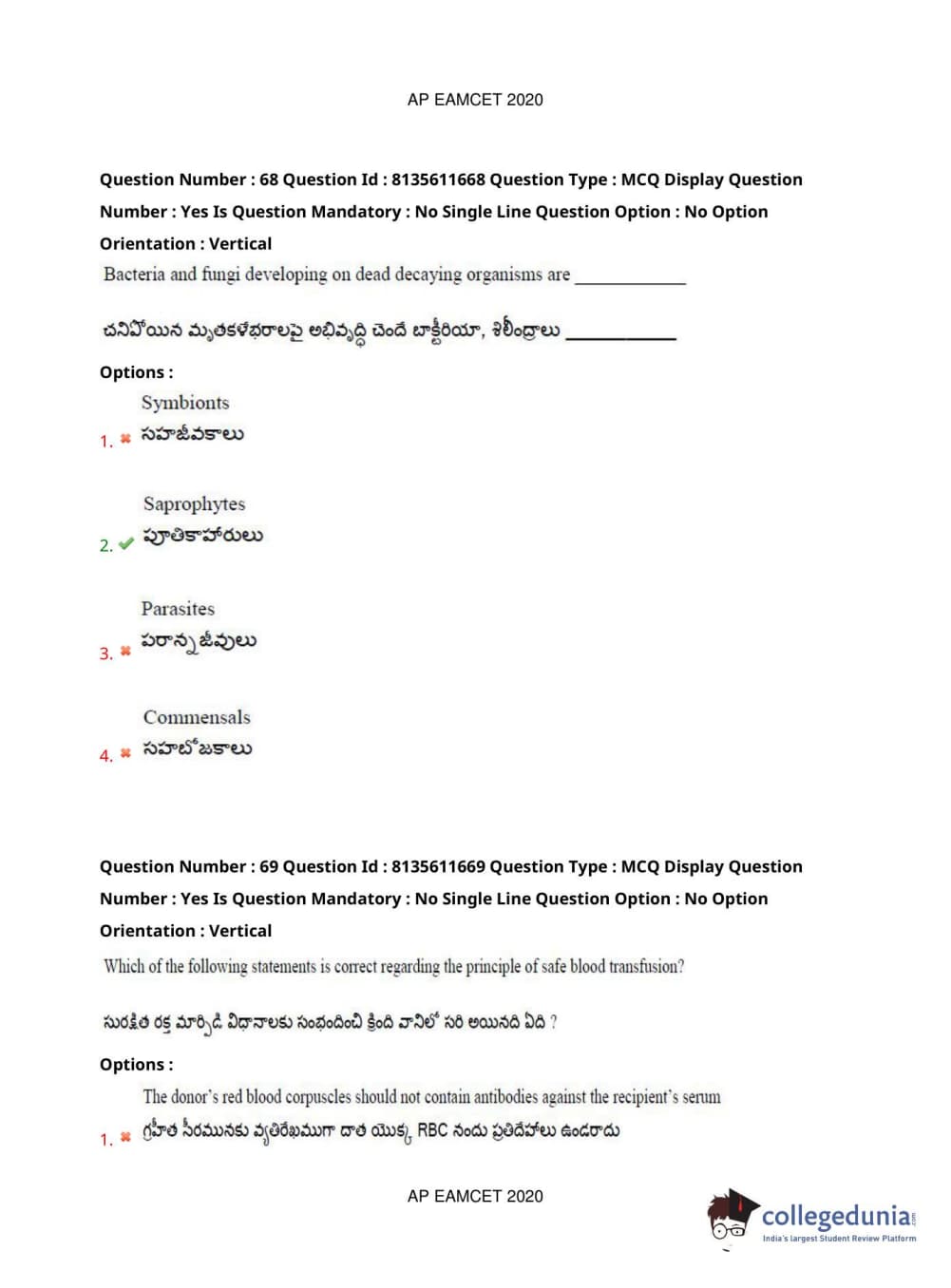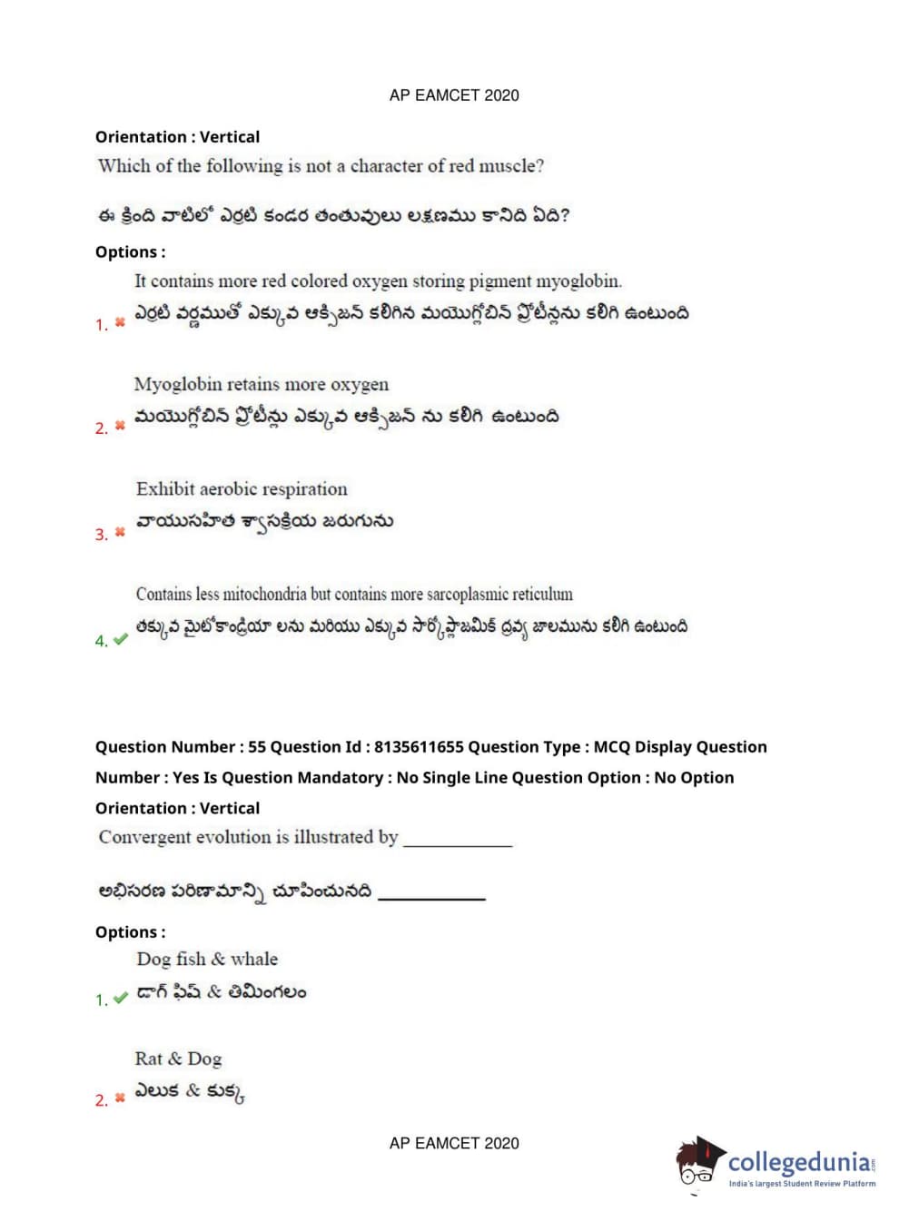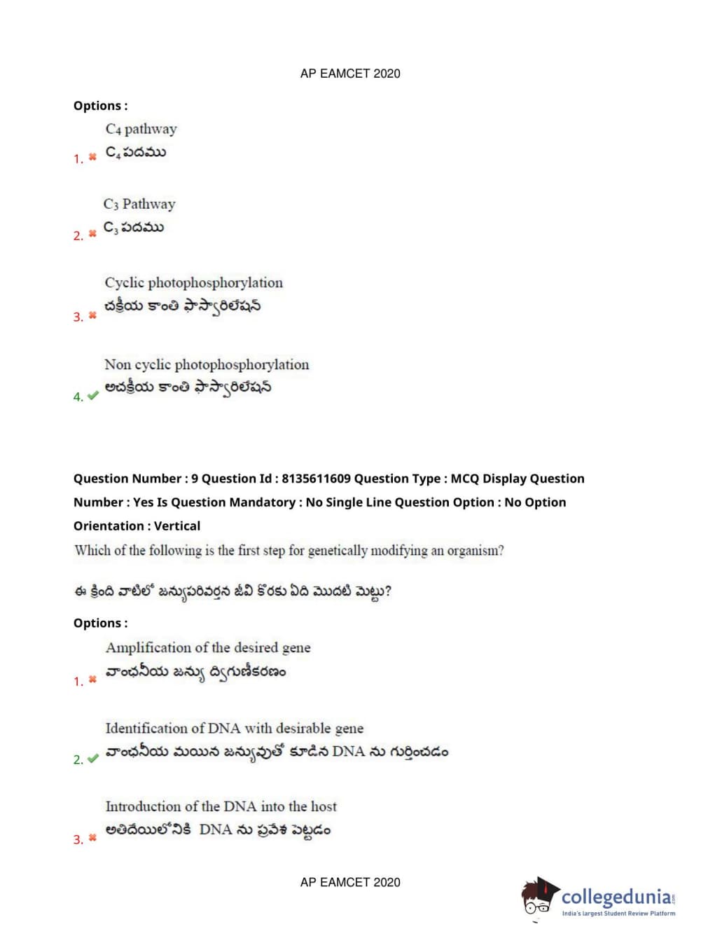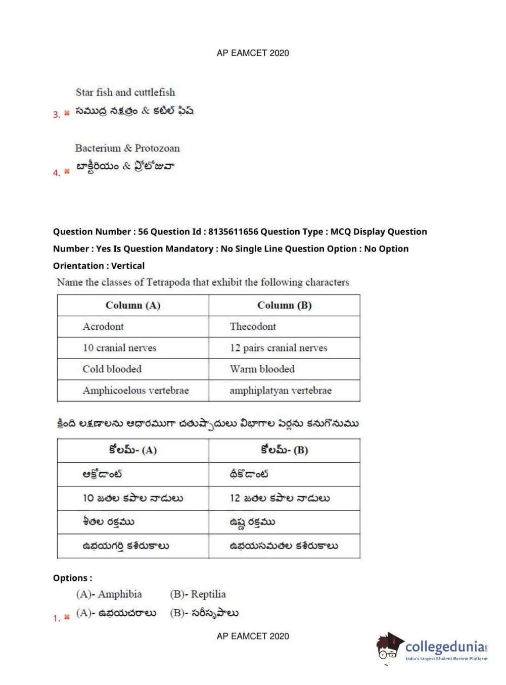 AP EAPCET 2020 Agriculture and Medical Question Paper with Answer Key PDFs Forenoon Session