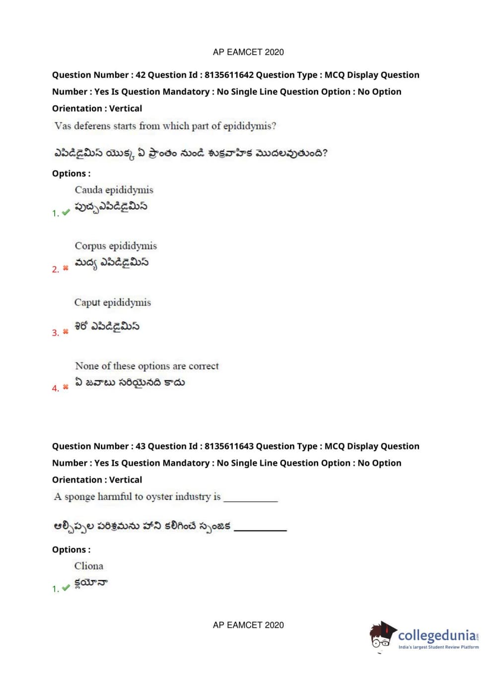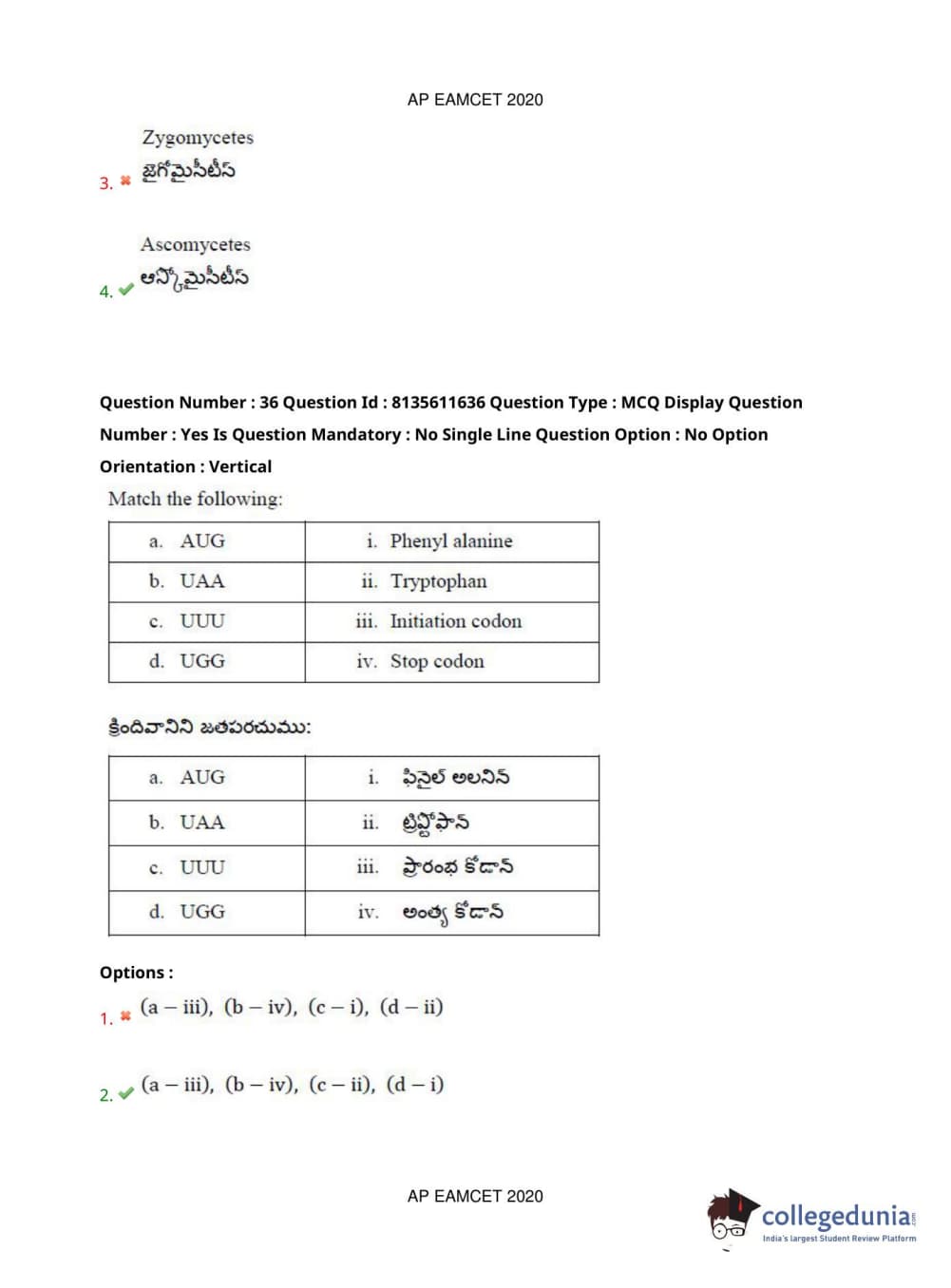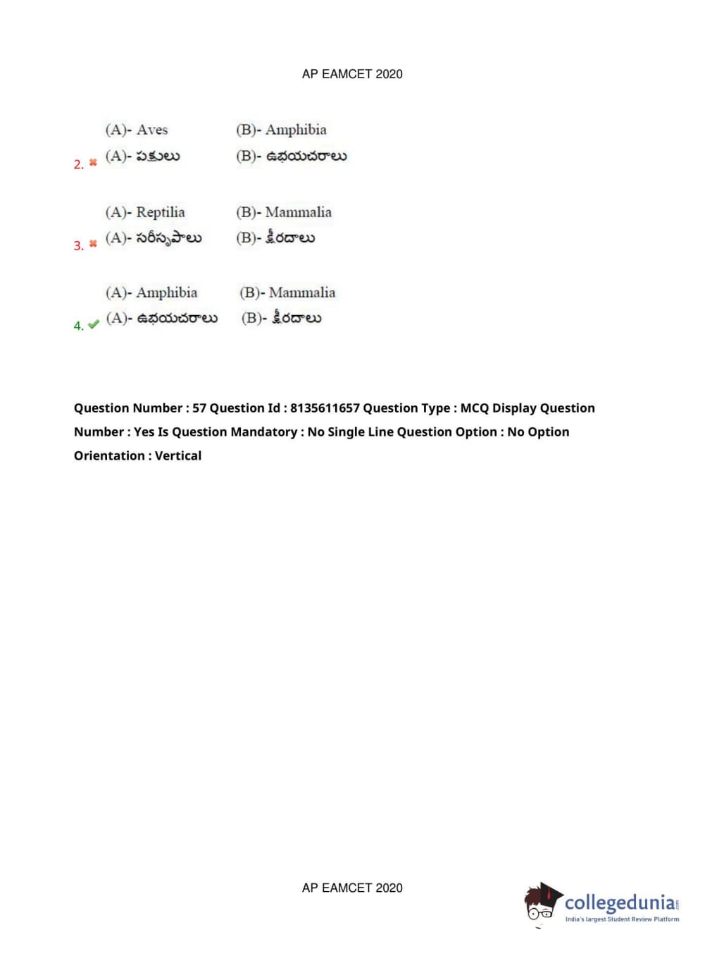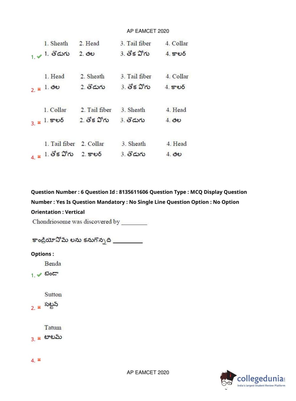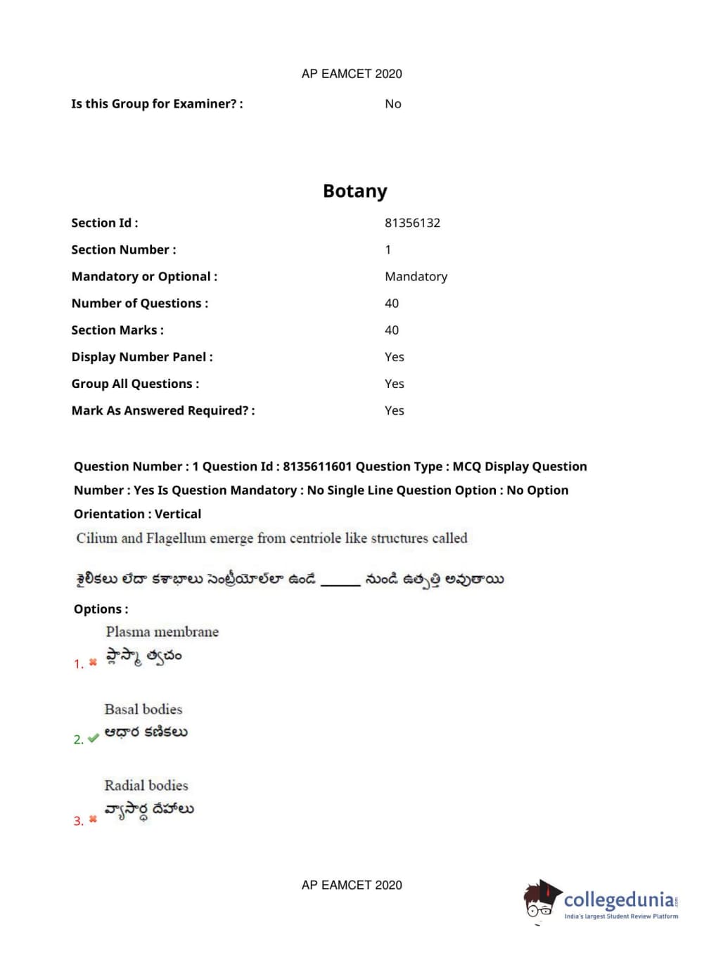 AP EAPCET 2020 Agriculture and Medical Question Paper with Answer Key PDFs Forenoon Session