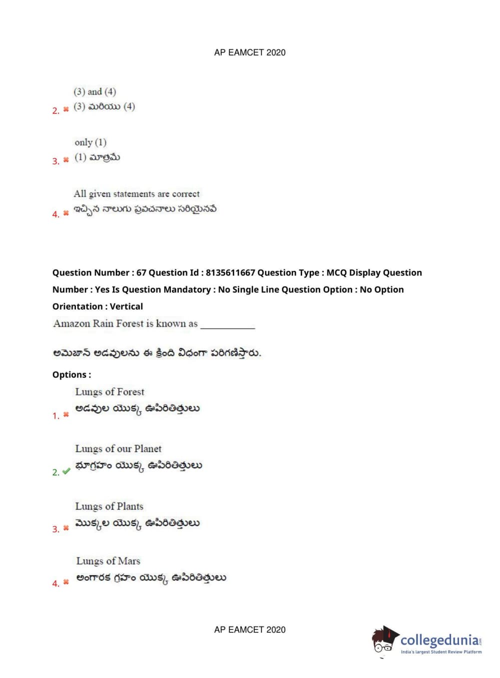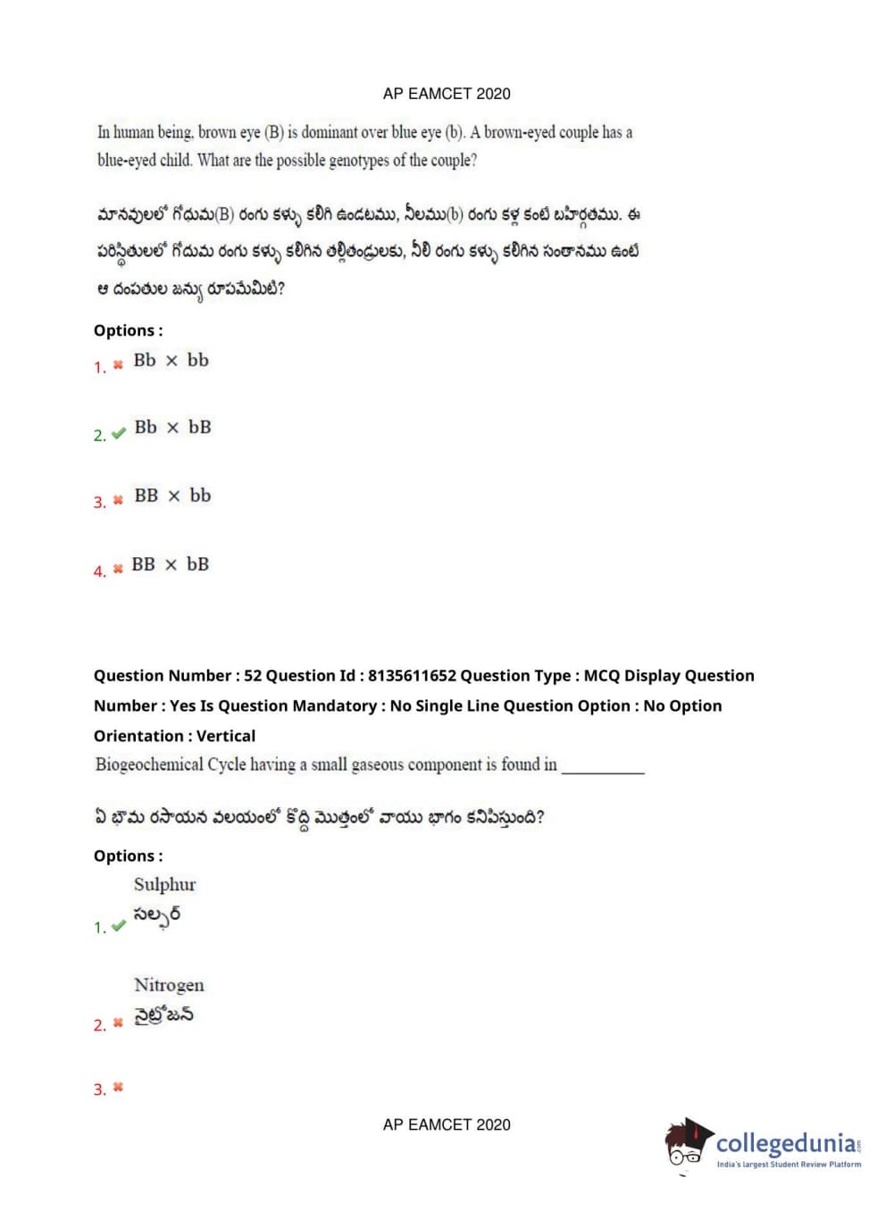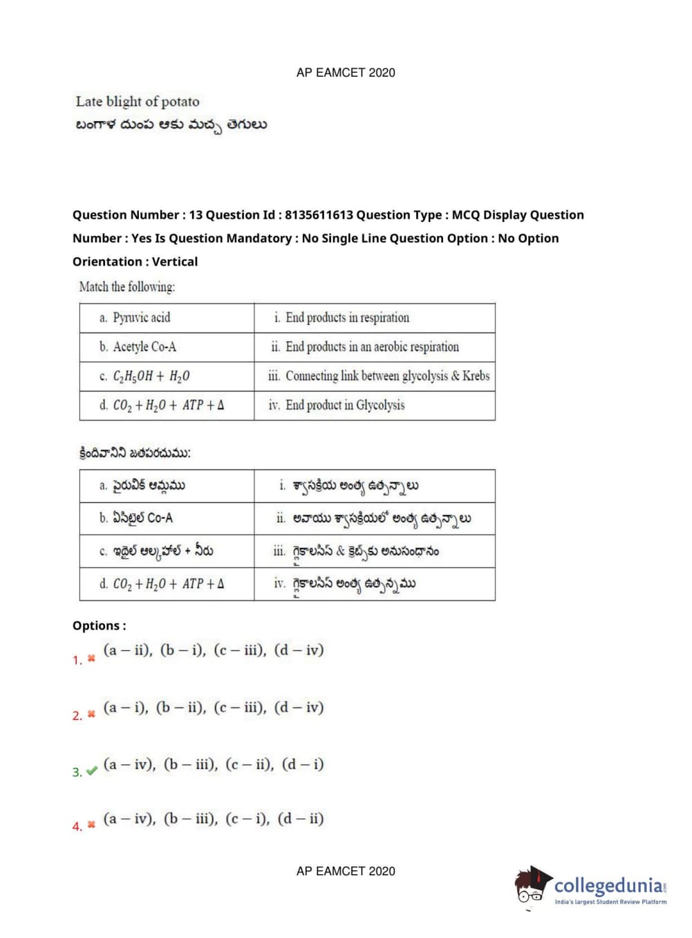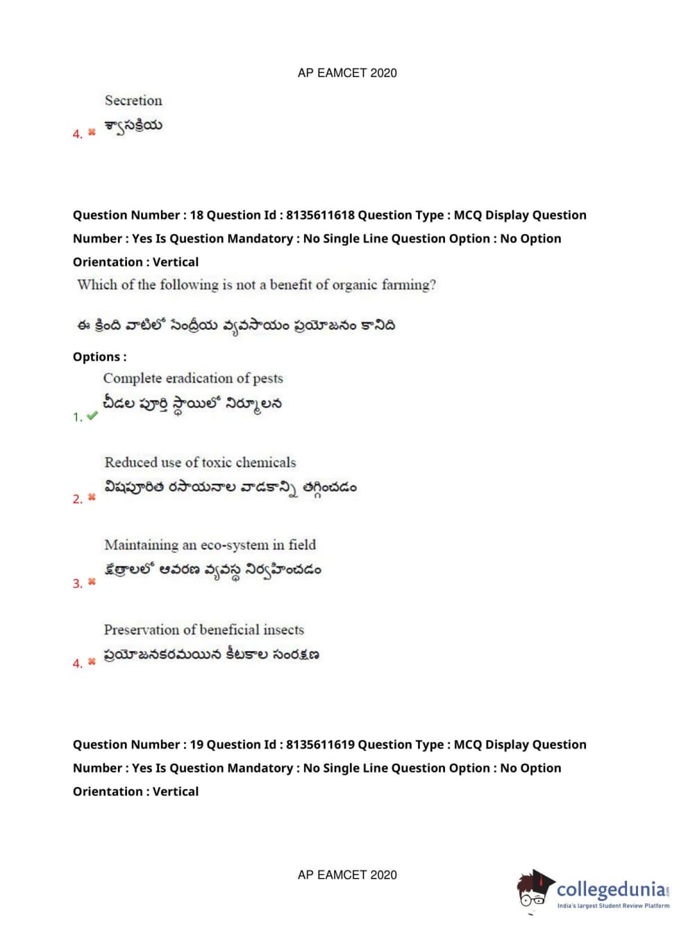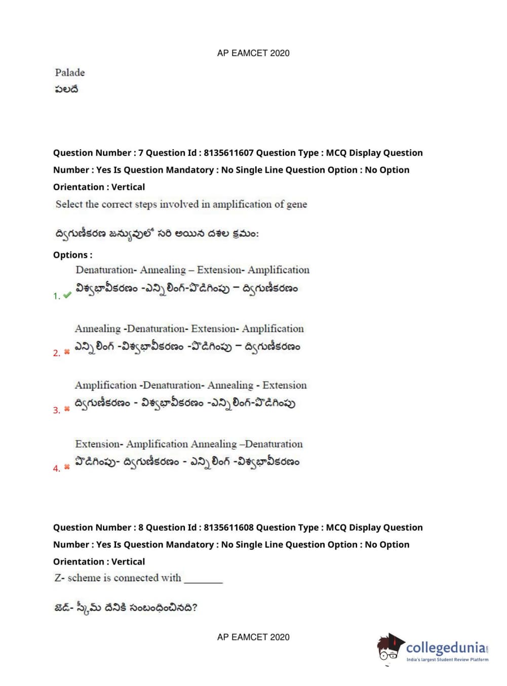 AP EAPCET 2020 Agriculture and Medical Question Paper with Answer Key PDFs Forenoon Session