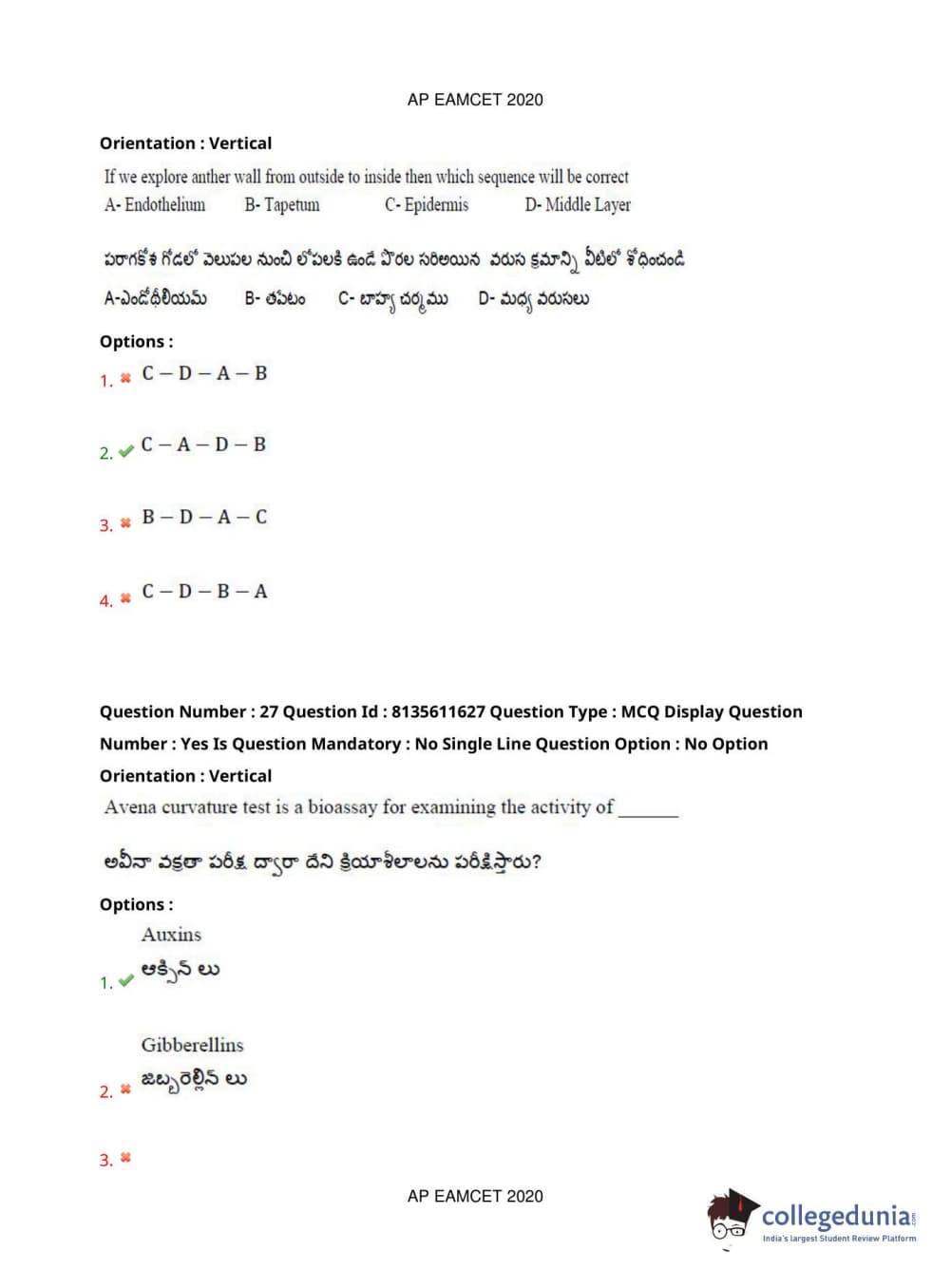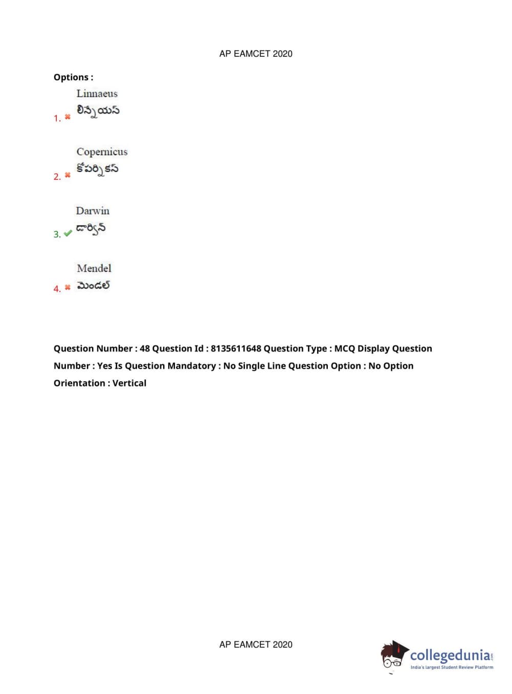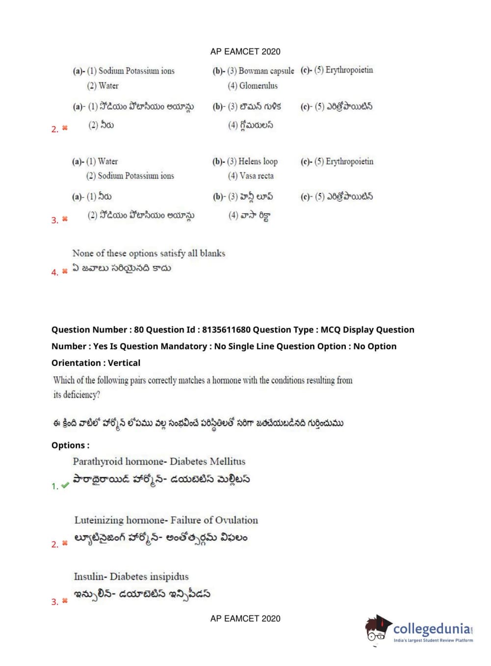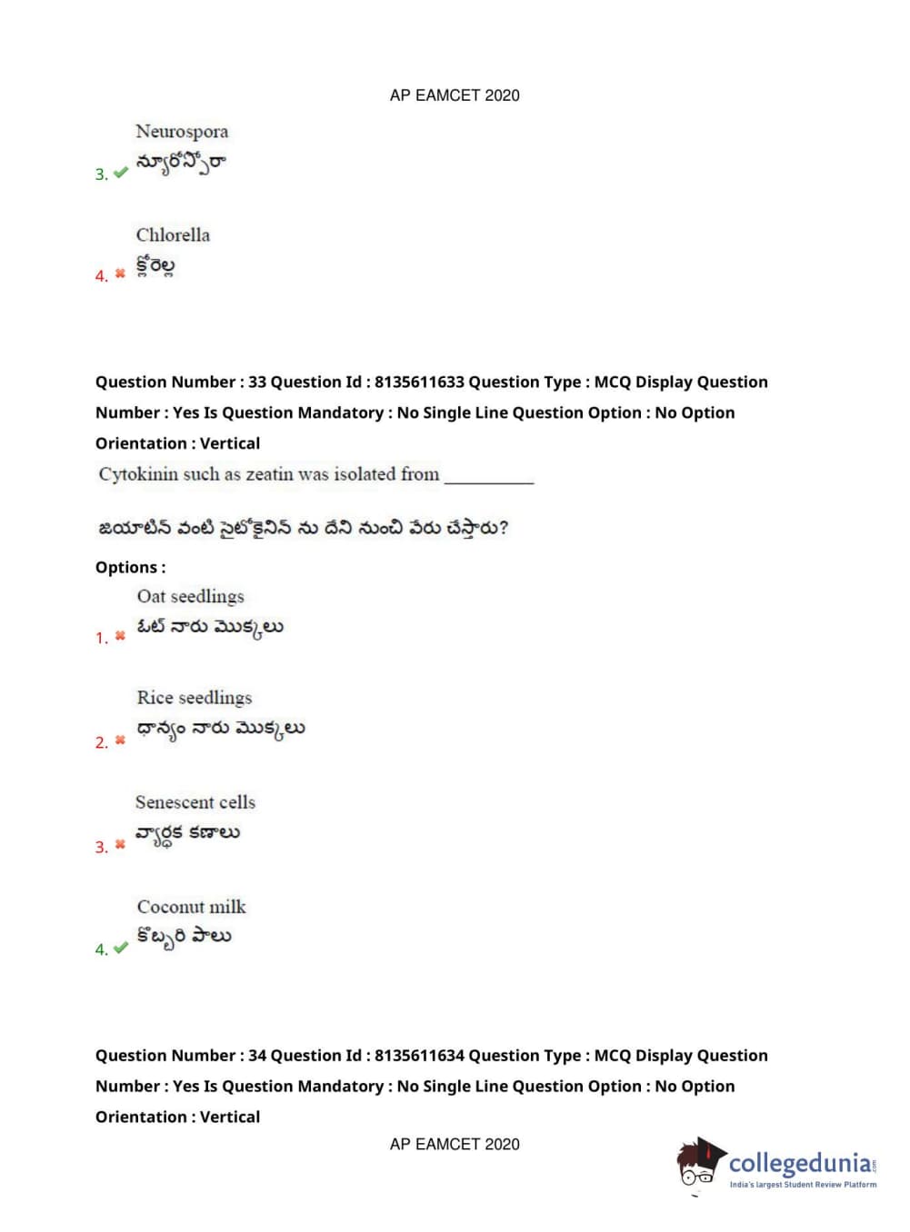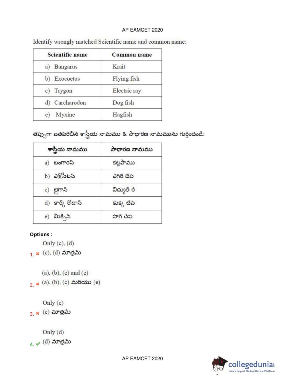 AP EAPCET 2020 Agriculture and Medical Question Paper with Answer Key PDFs Forenoon Session