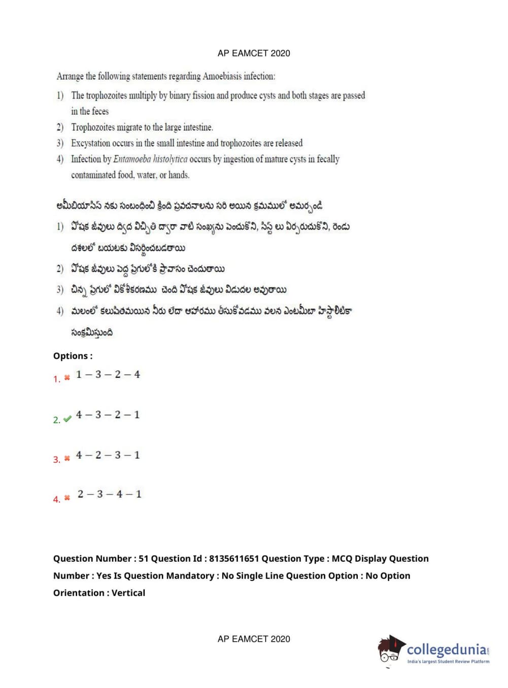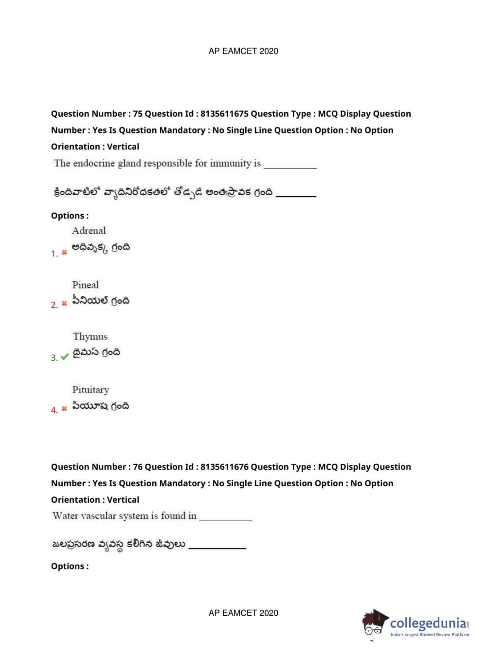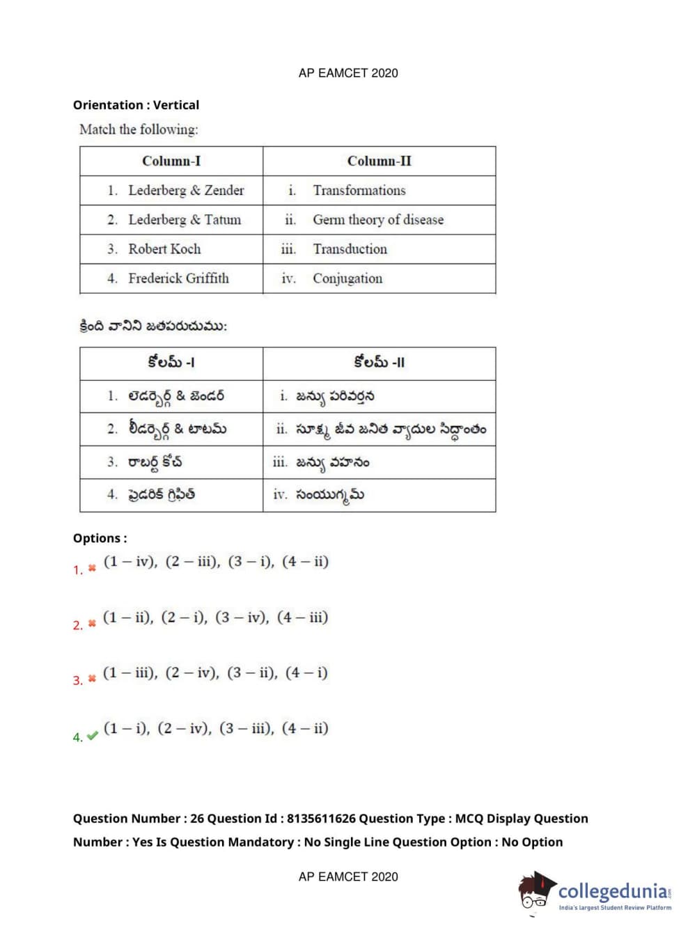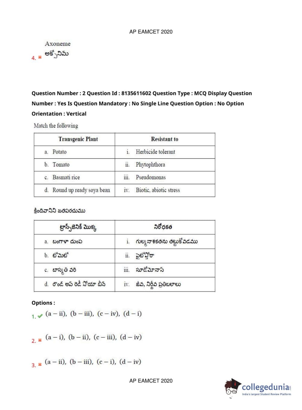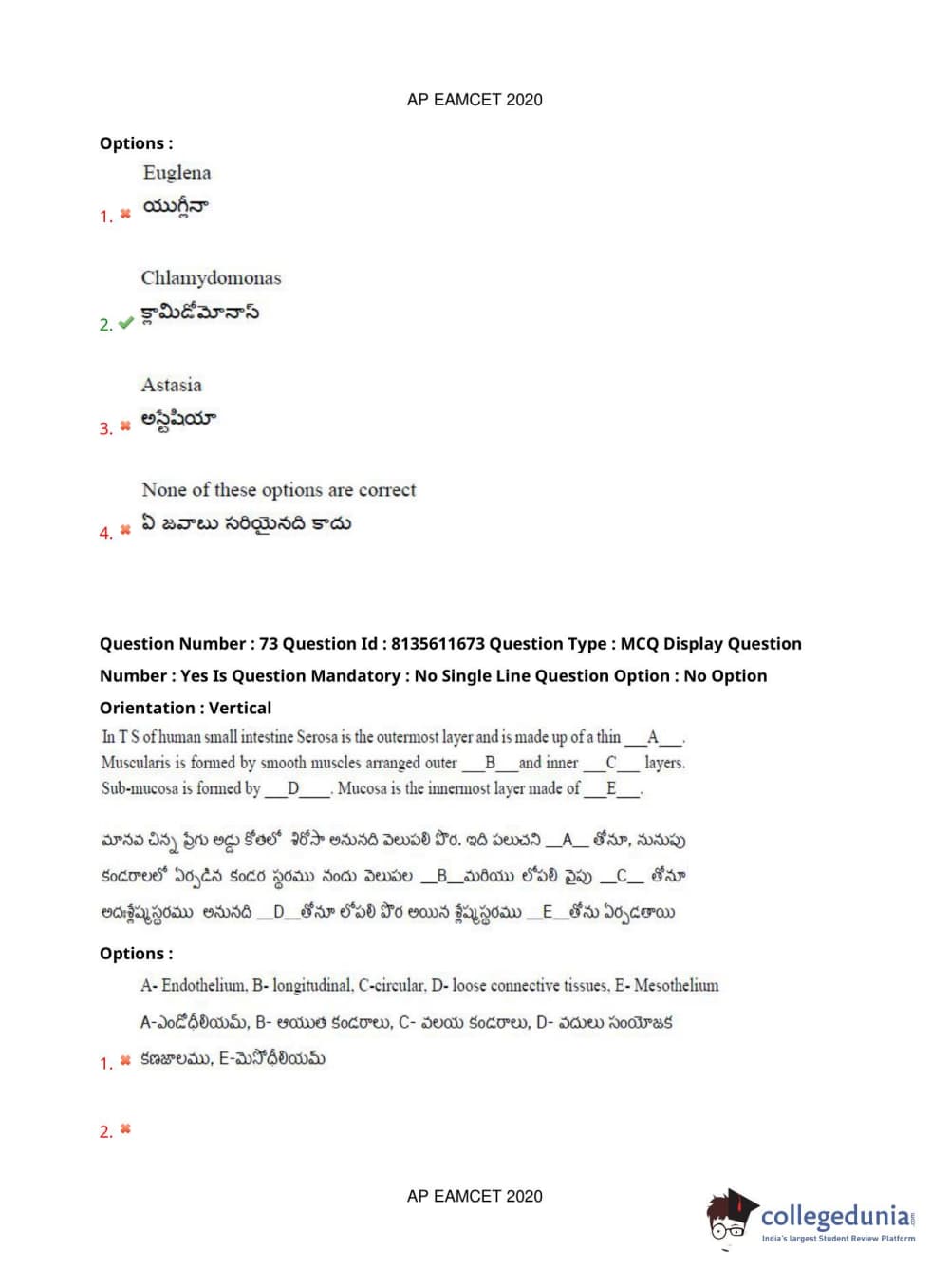 AP EAPCET 2020 Agriculture and Medical Question Paper with Answer Key PDFs Forenoon Session