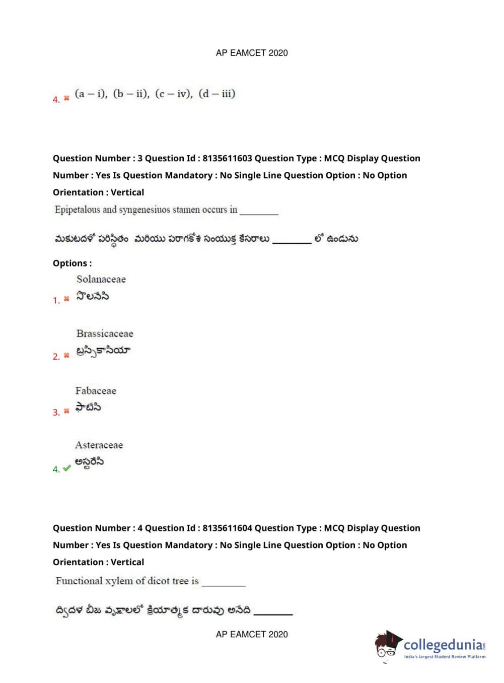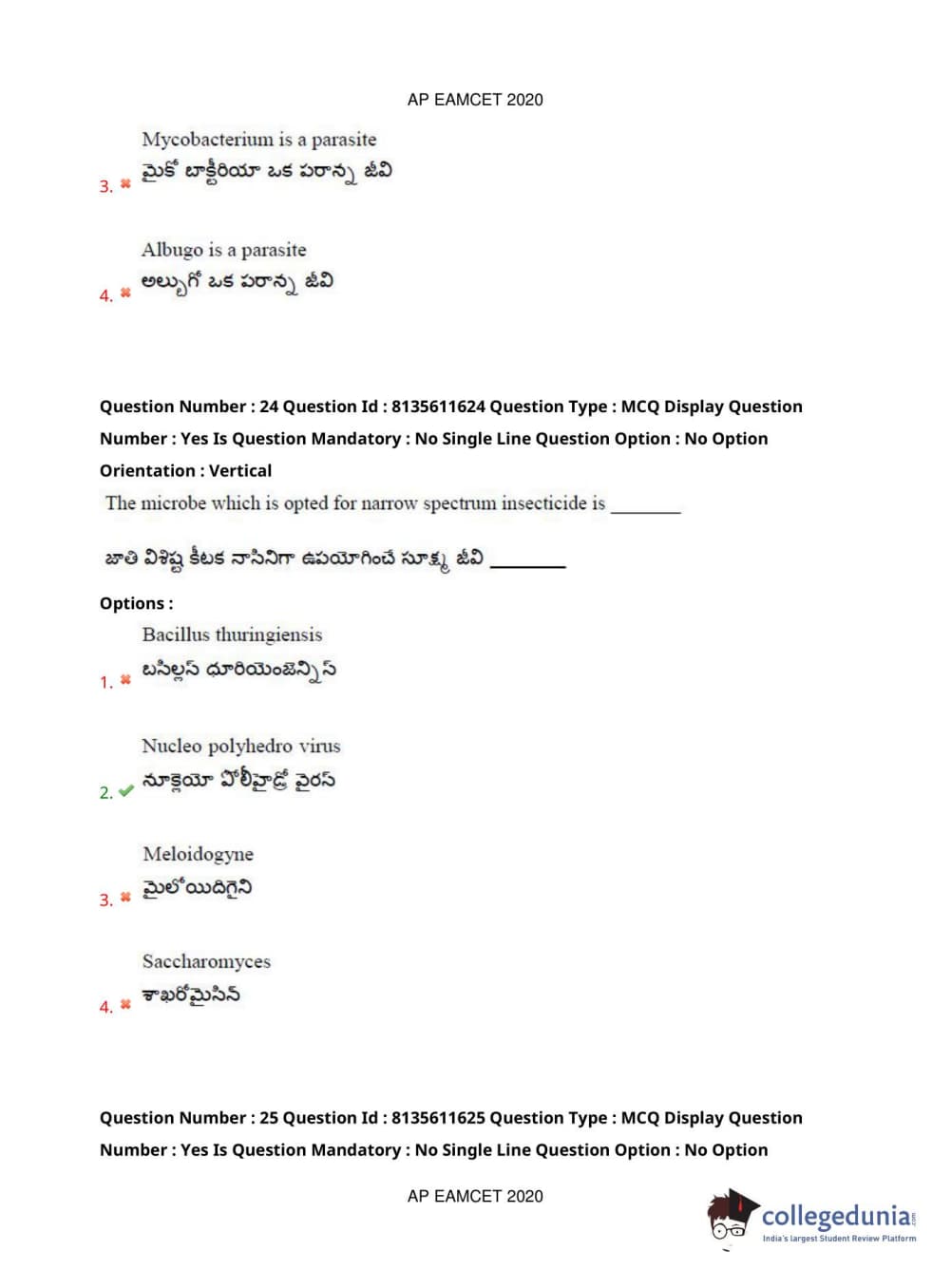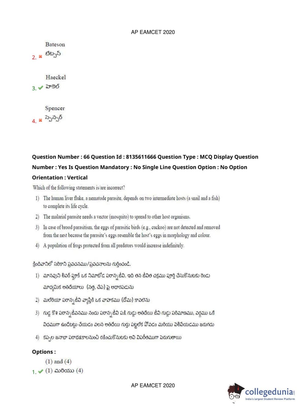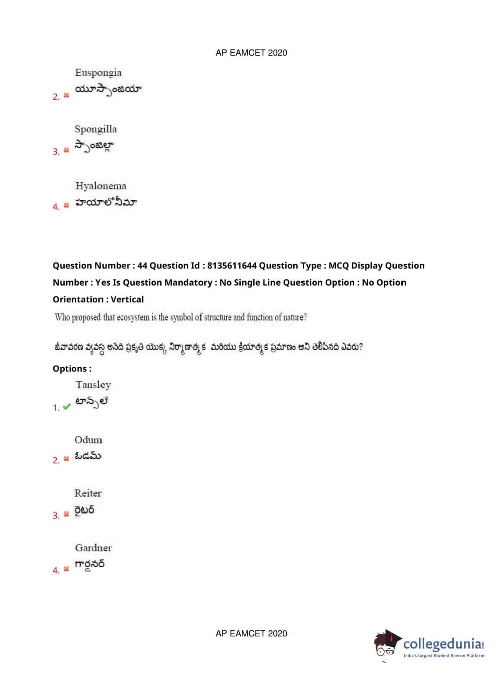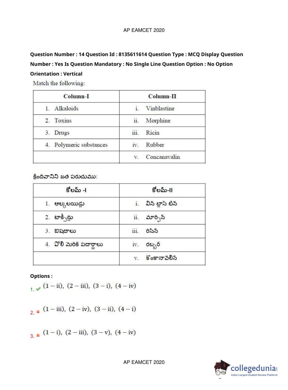 AP EAPCET 2020 Agriculture and Medical Question Paper with Answer Key PDFs Forenoon Session
