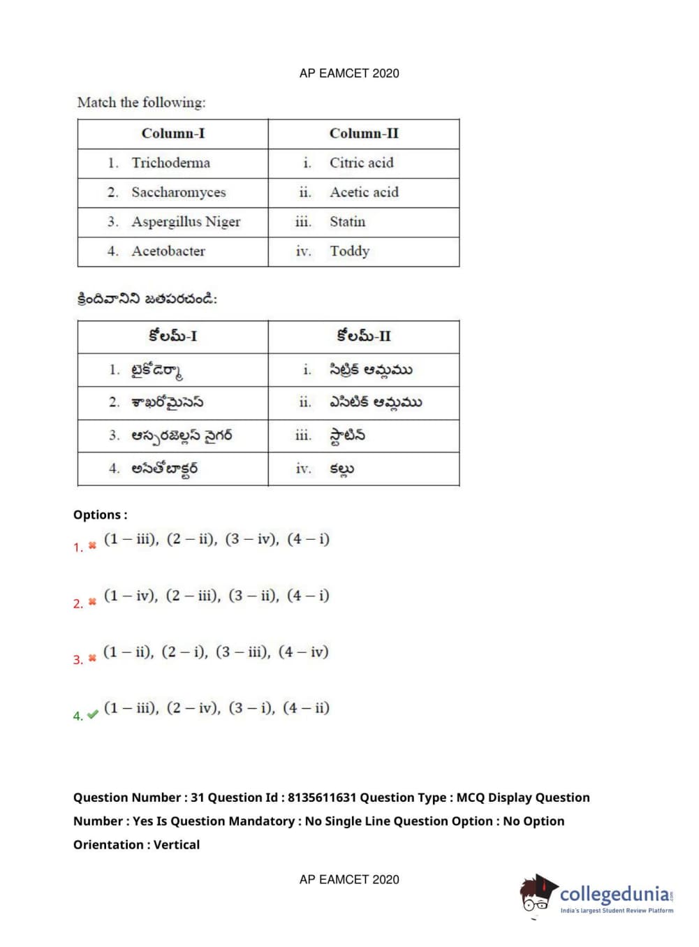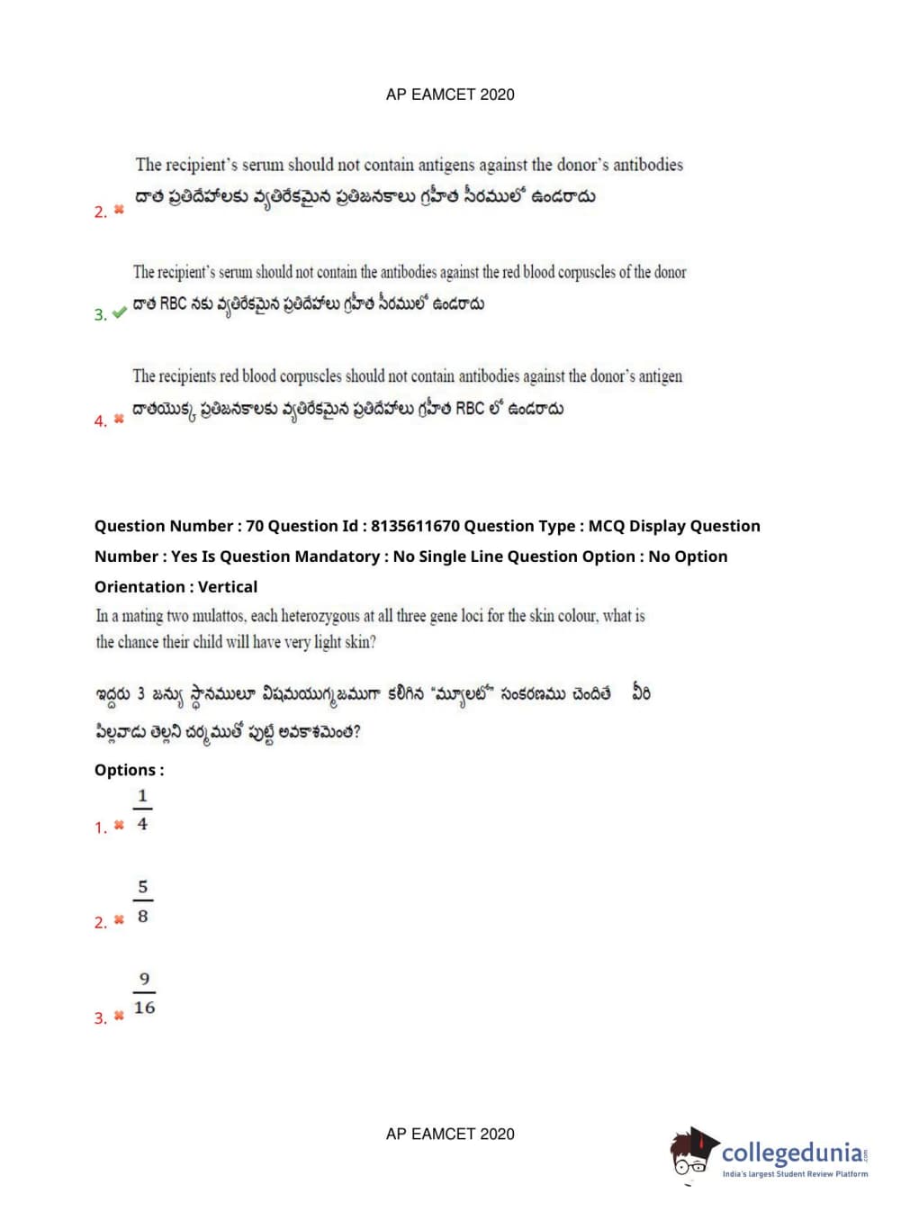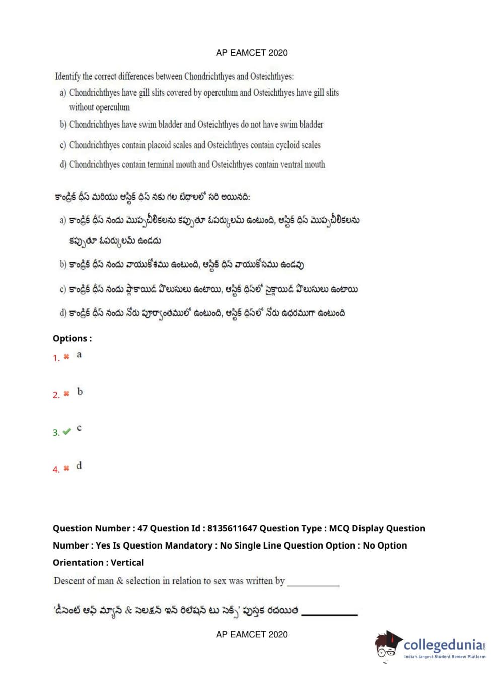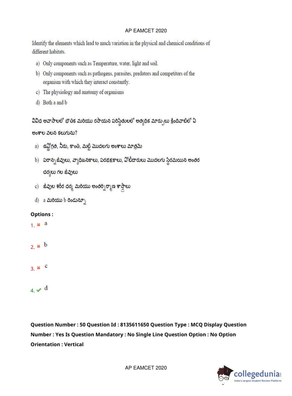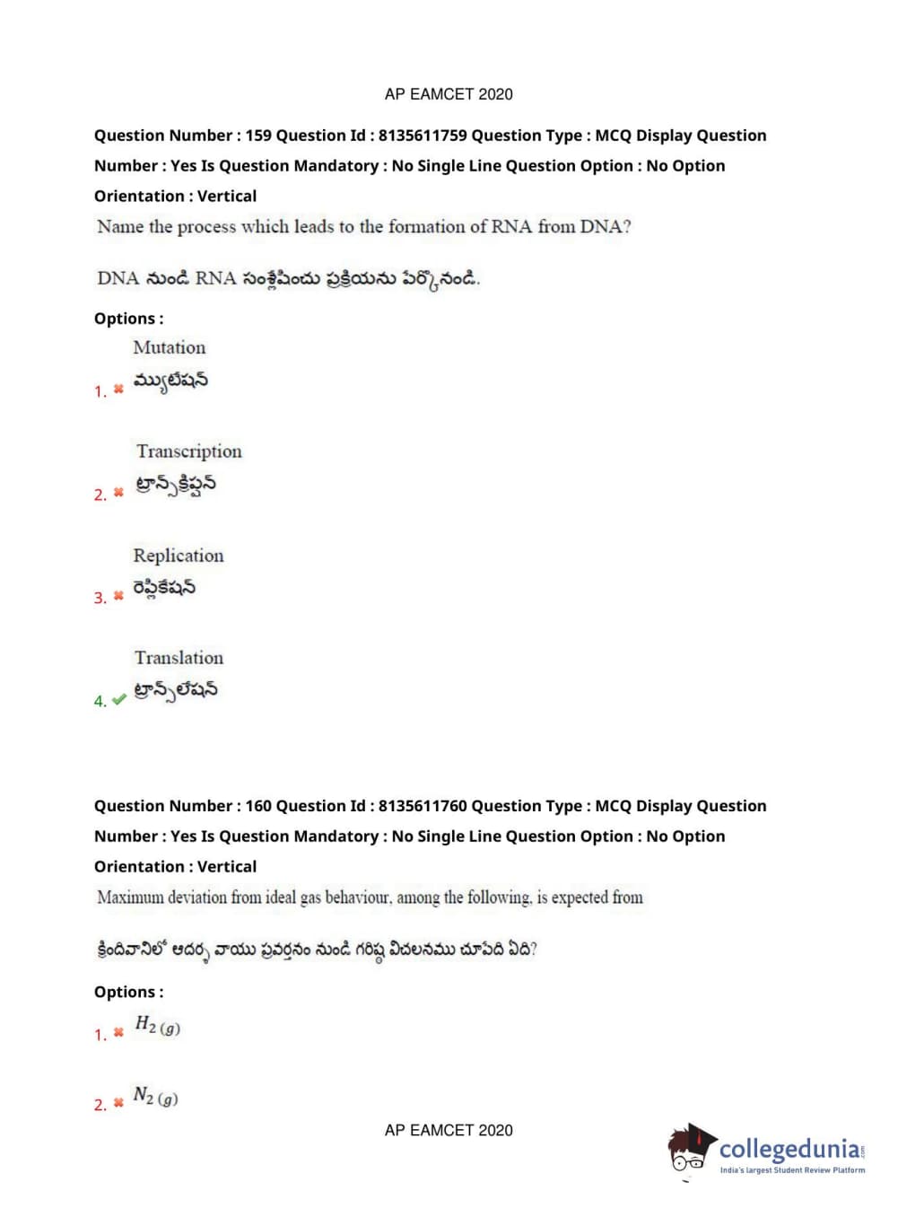 AP EAPCET 2020 Agriculture and Medical Question Paper with Answer Key PDFs Forenoon Session