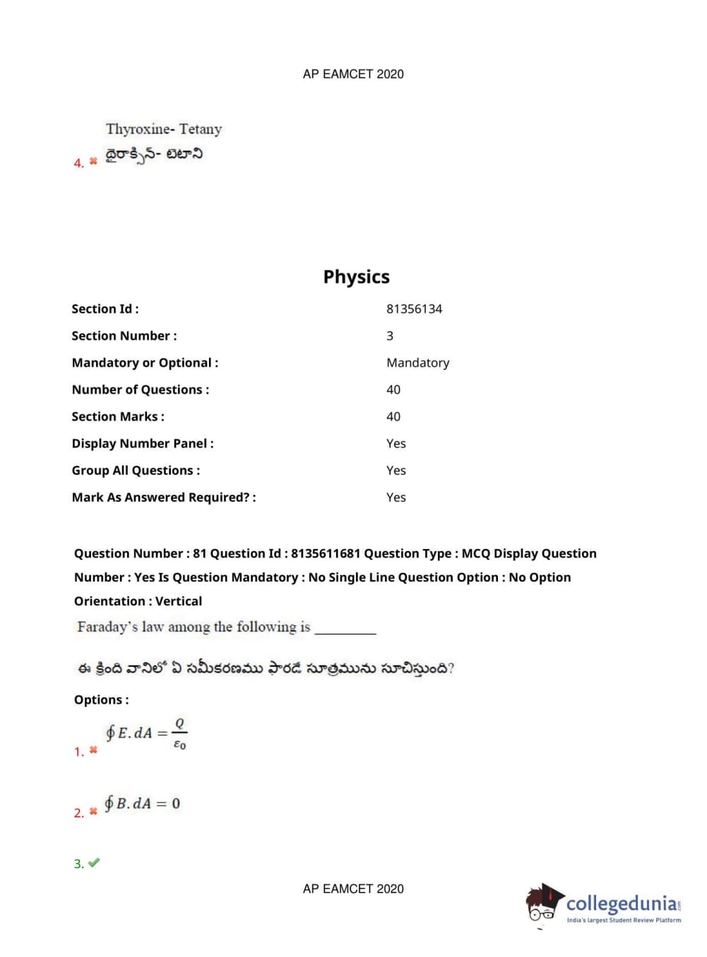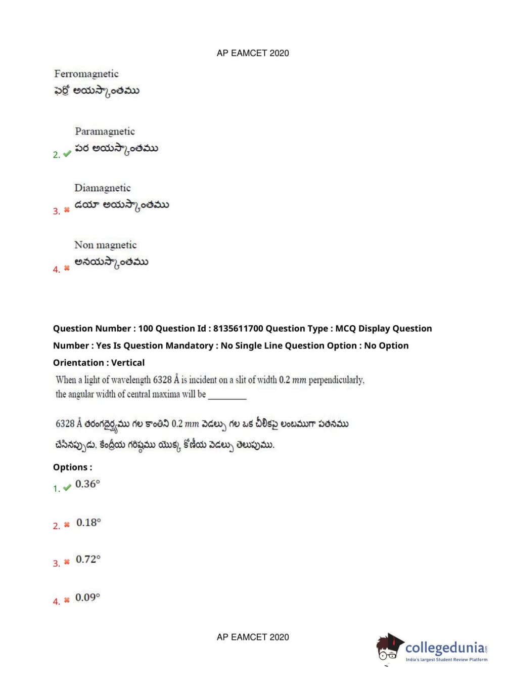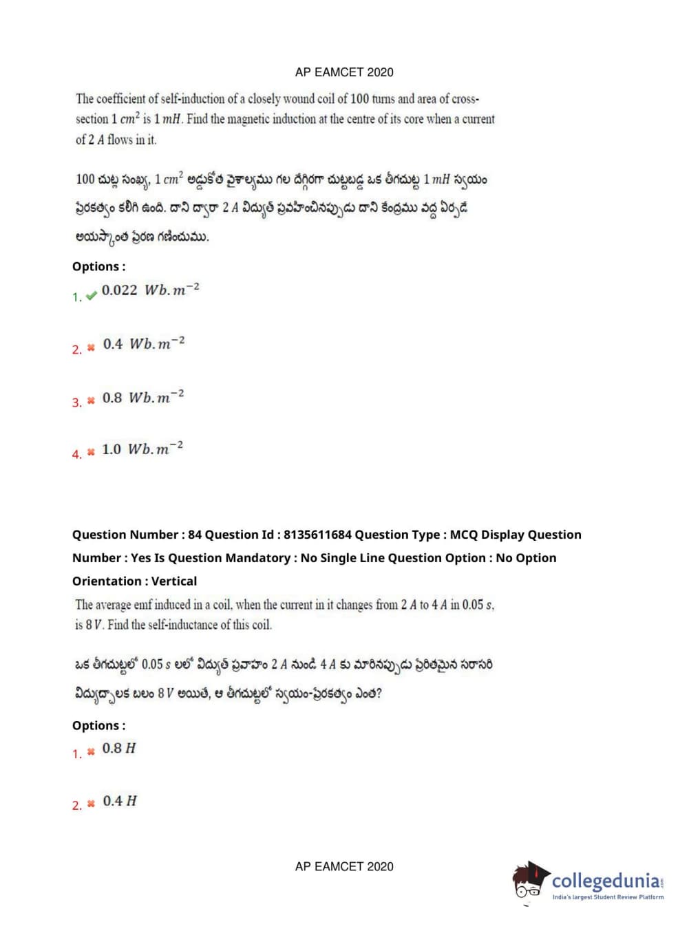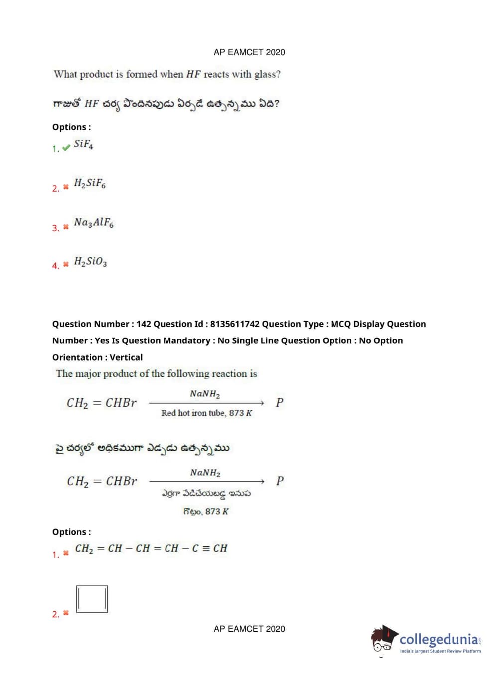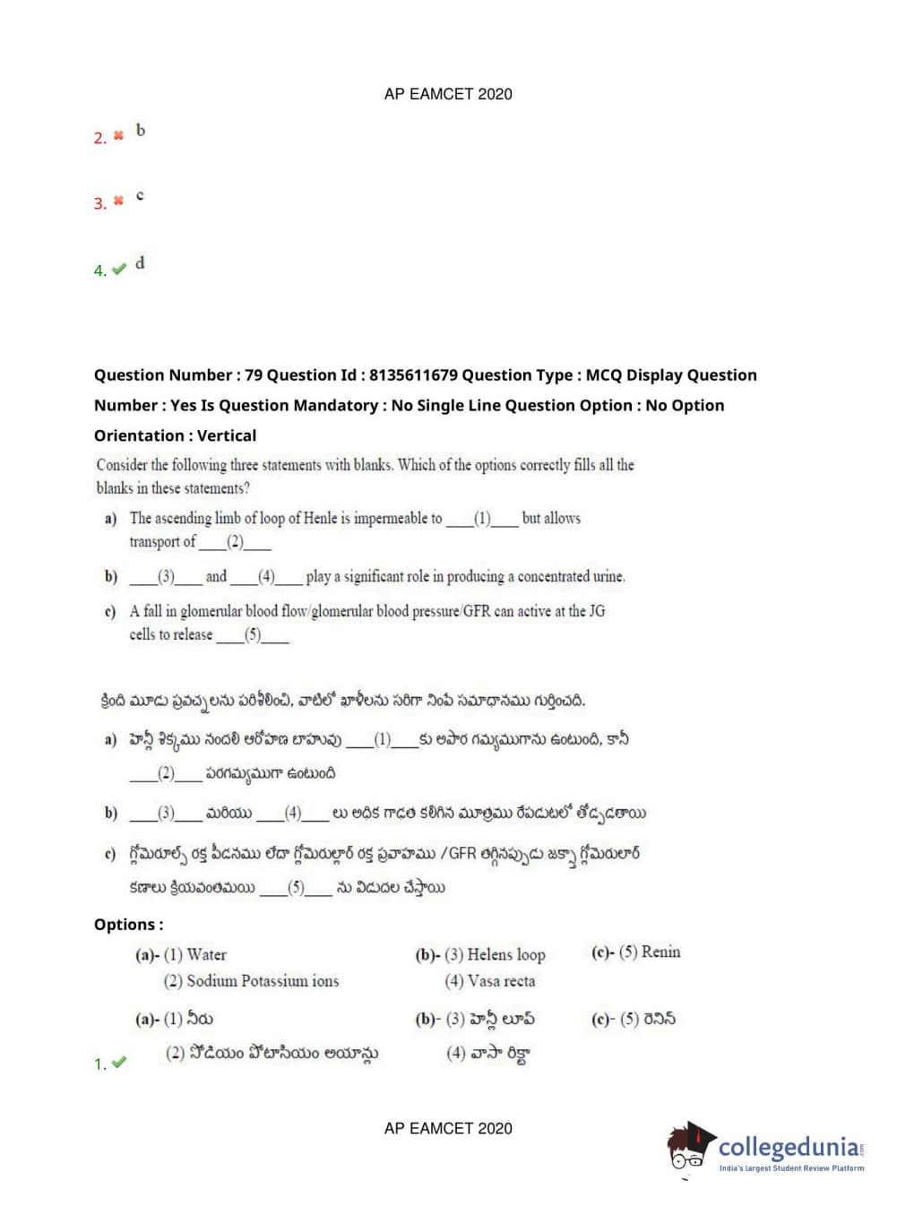 AP EAPCET 2020 Agriculture and Medical Question Paper with Answer Key PDFs Forenoon Session