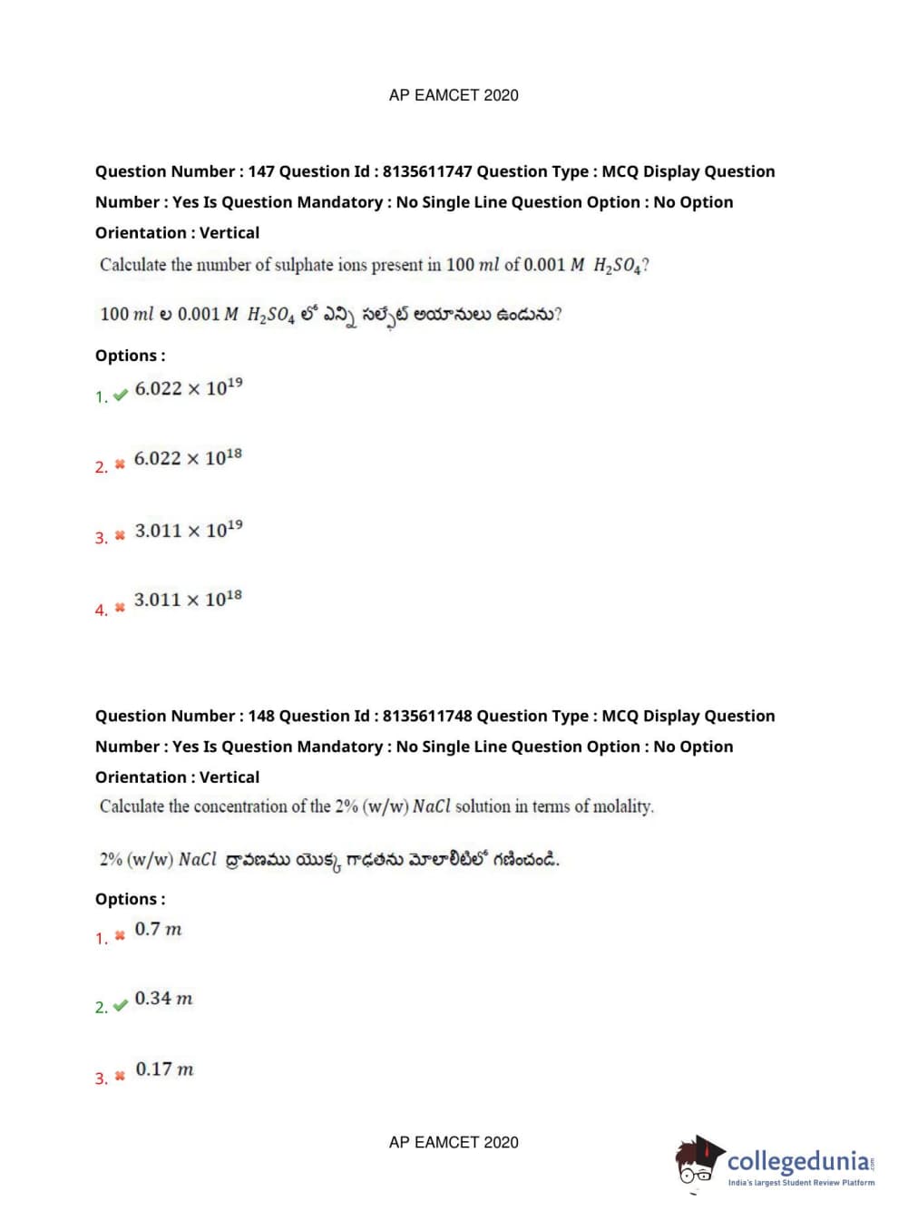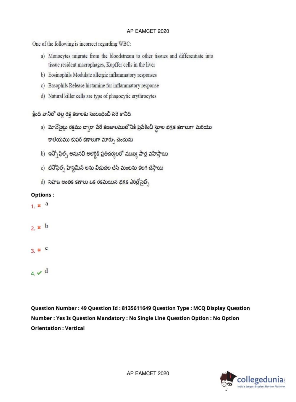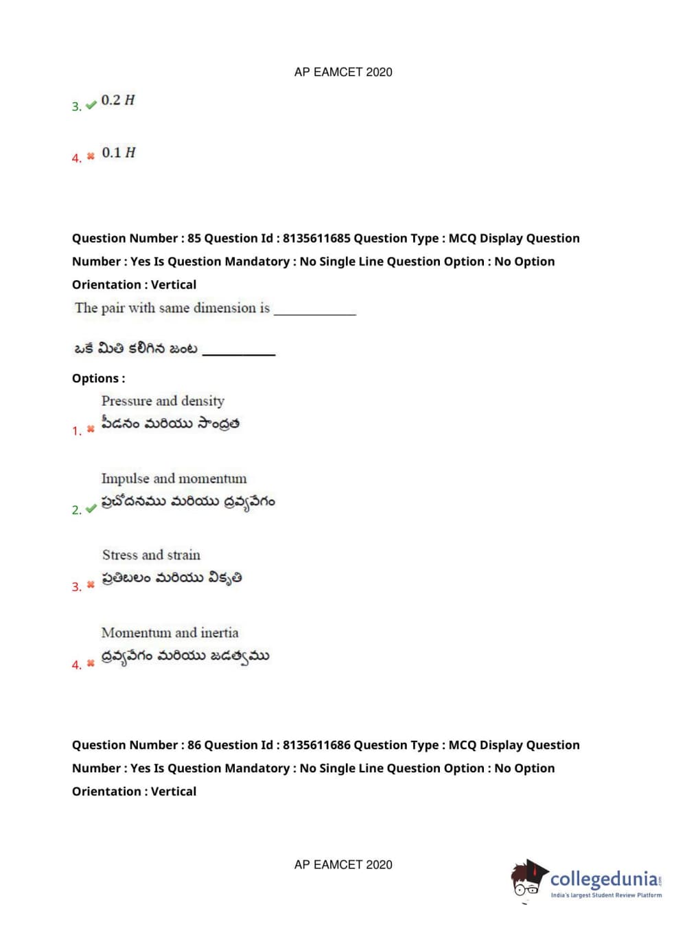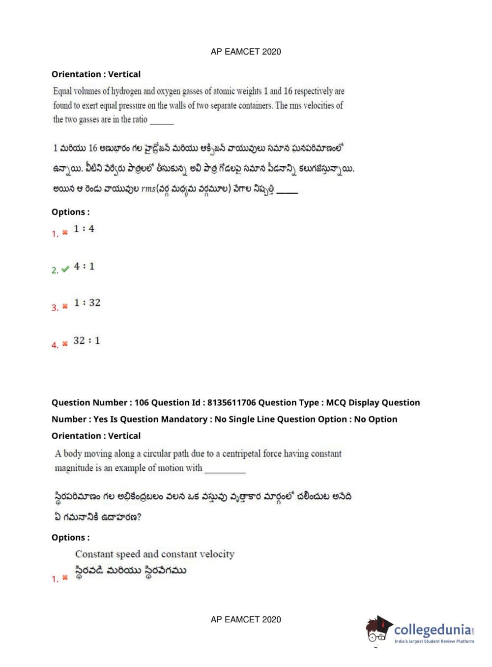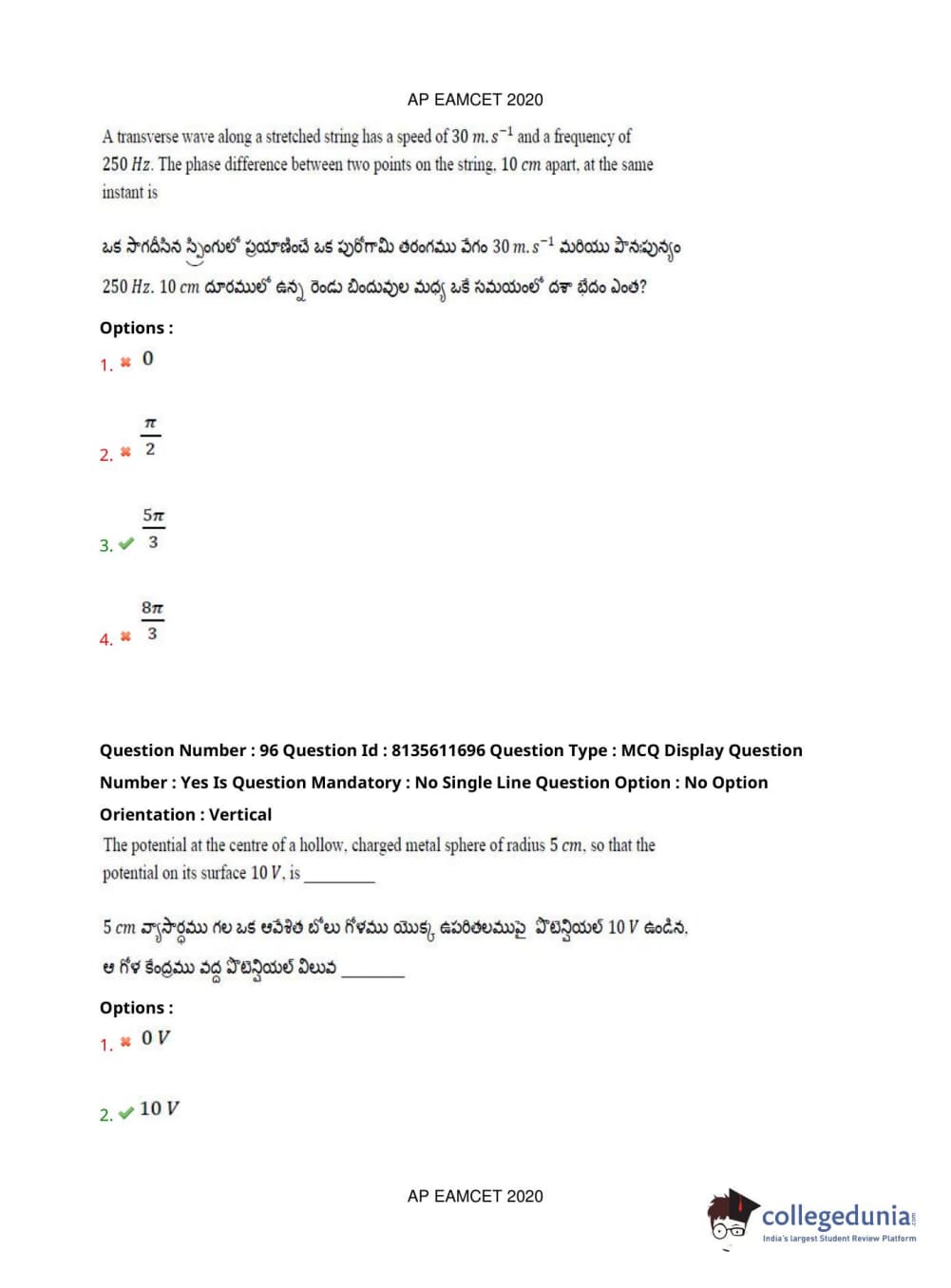AP EAPCET 2020 Agriculture and Medical Question Paper with Answer Key PDFs Forenoon Session