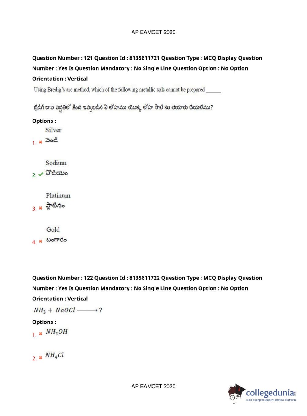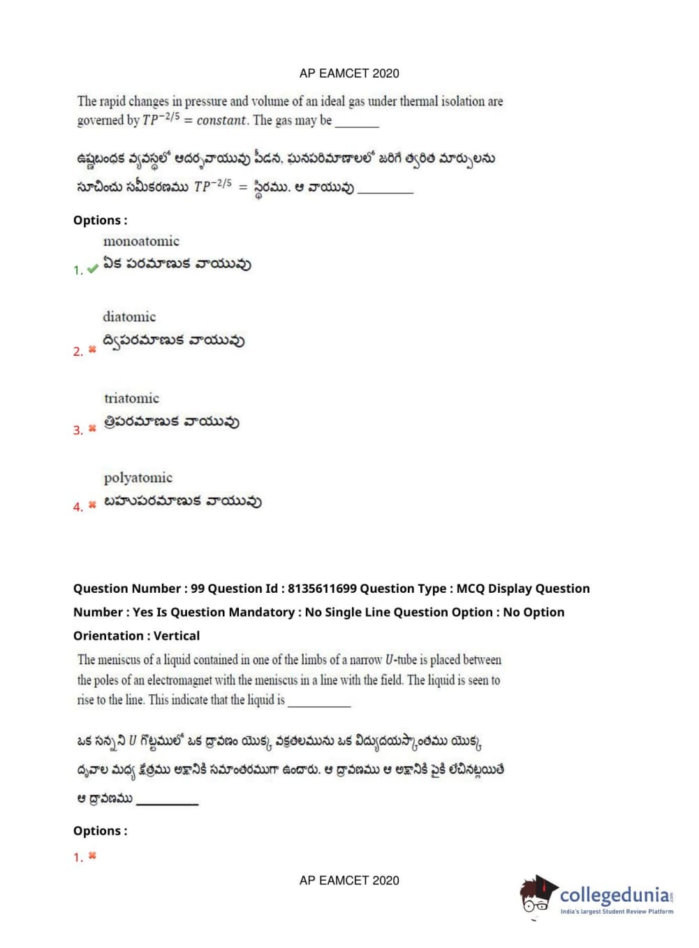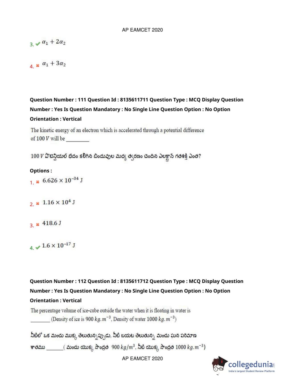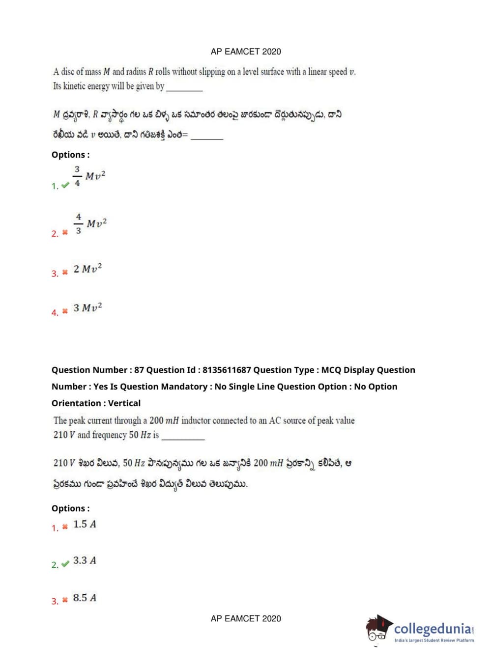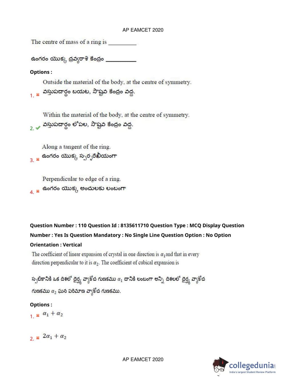 AP EAPCET 2020 Agriculture and Medical Question Paper with Answer Key PDFs Forenoon Session