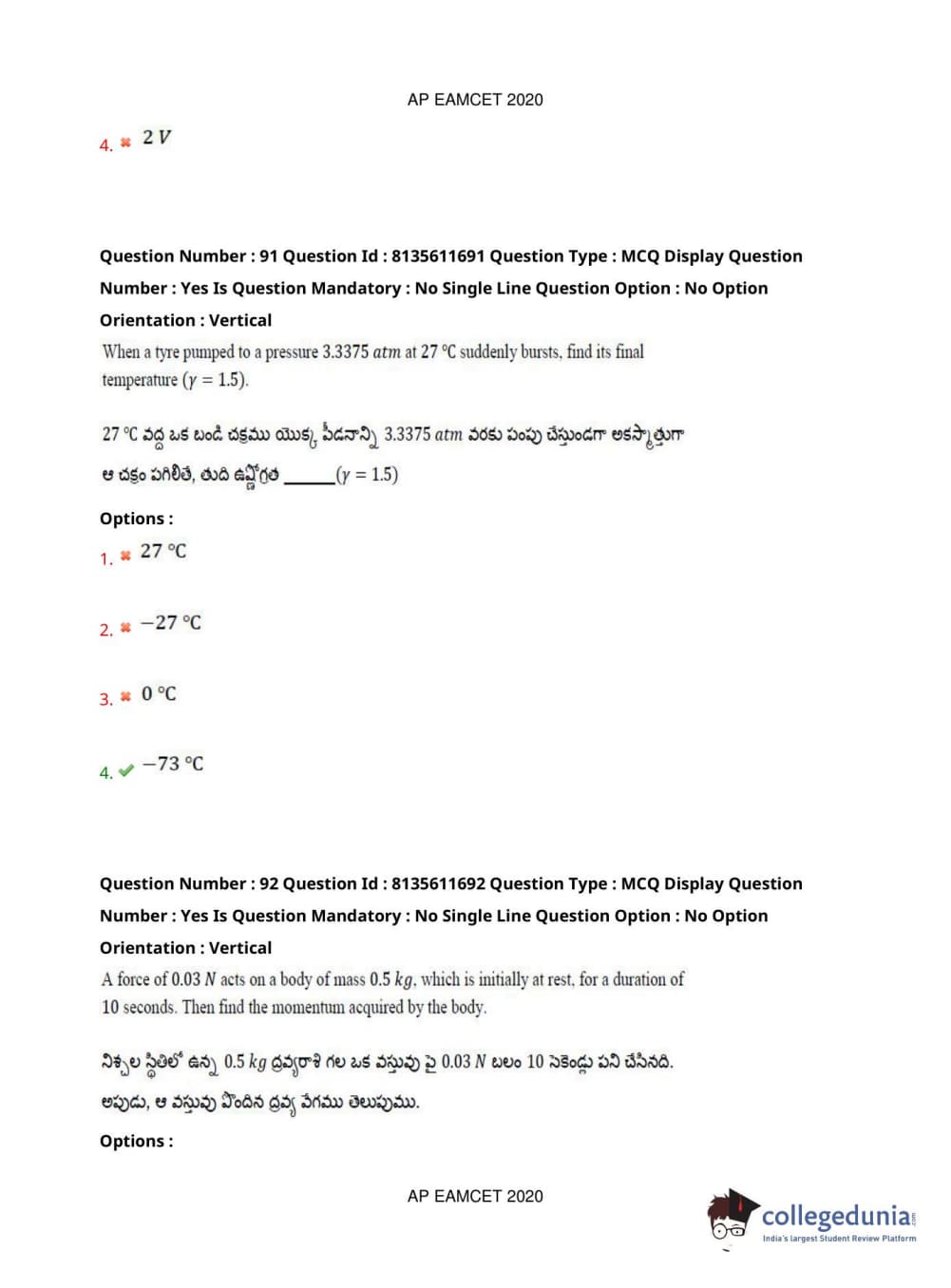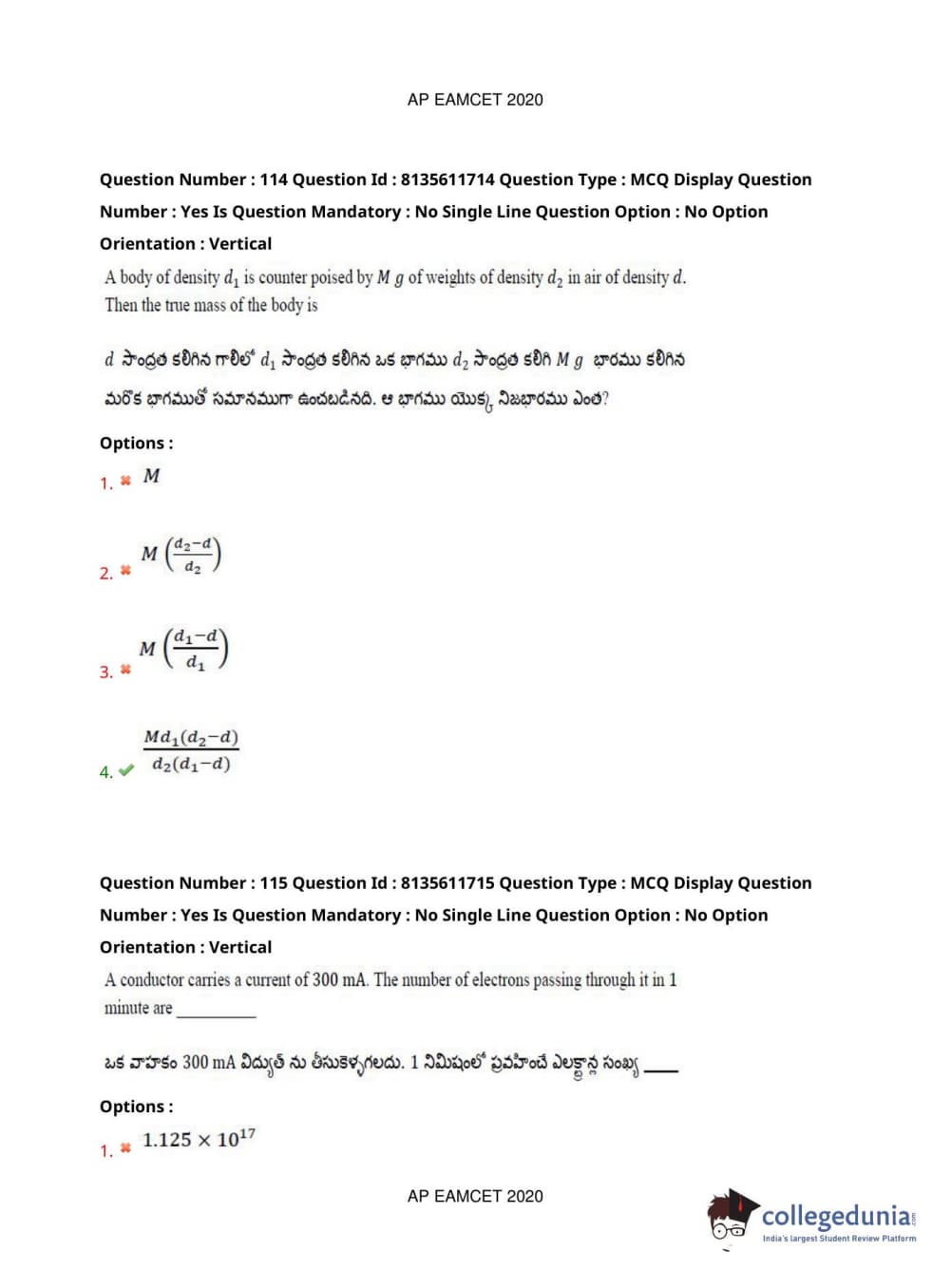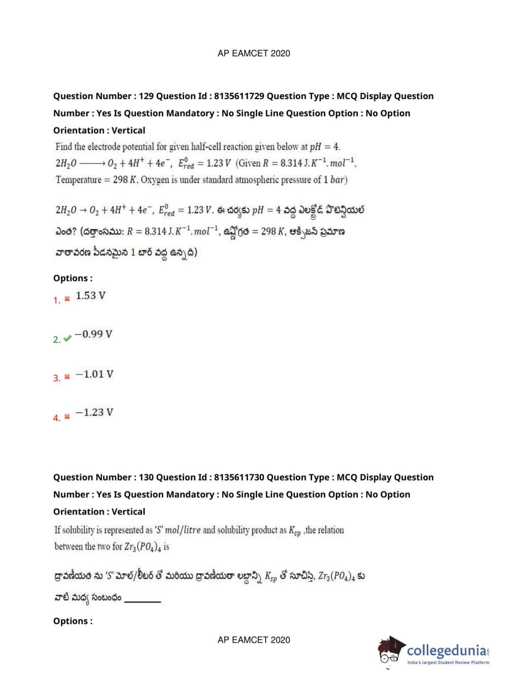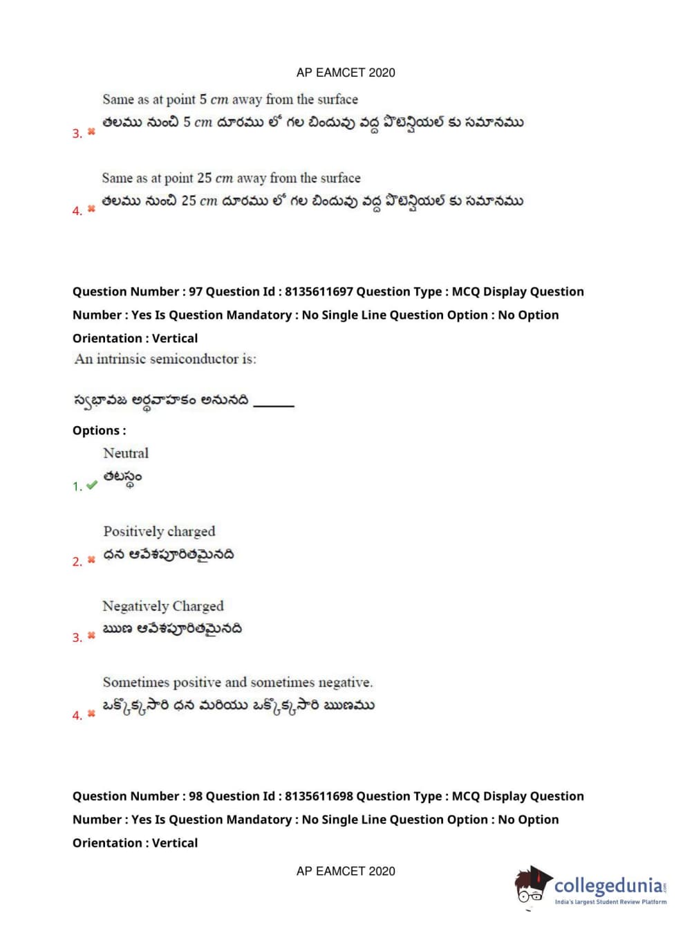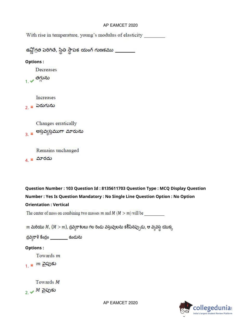 AP EAPCET 2020 Agriculture and Medical Question Paper with Answer Key PDFs Forenoon Session