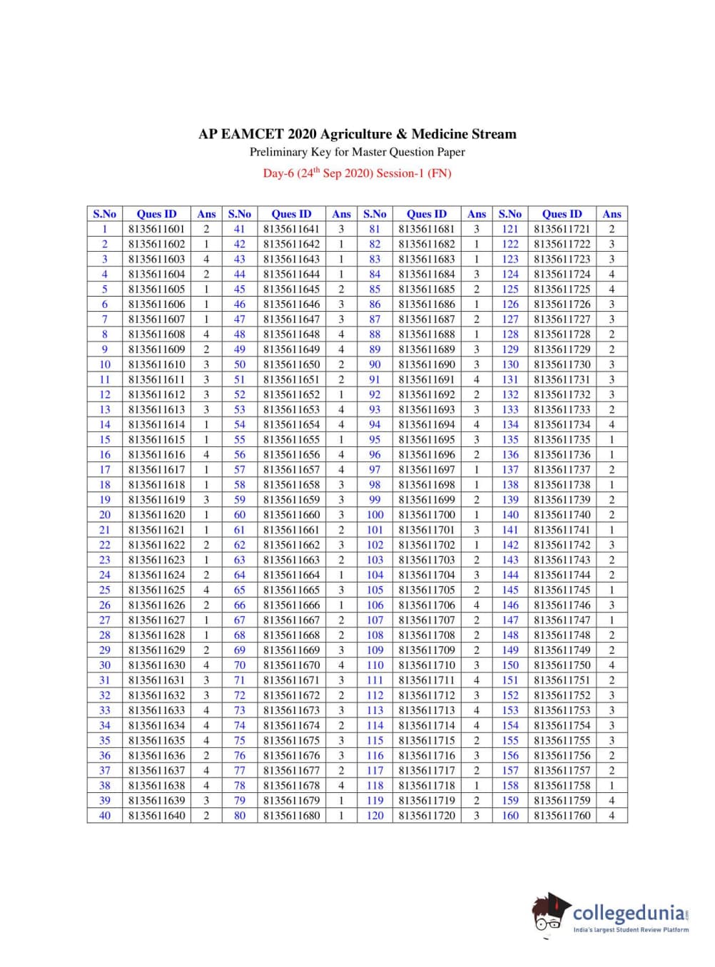 | AP EAPCET 2020 Agriculture and Medical Question Paper PDF | AP EAPCET 2020 Agriculture and Medical Answer Key PDF |