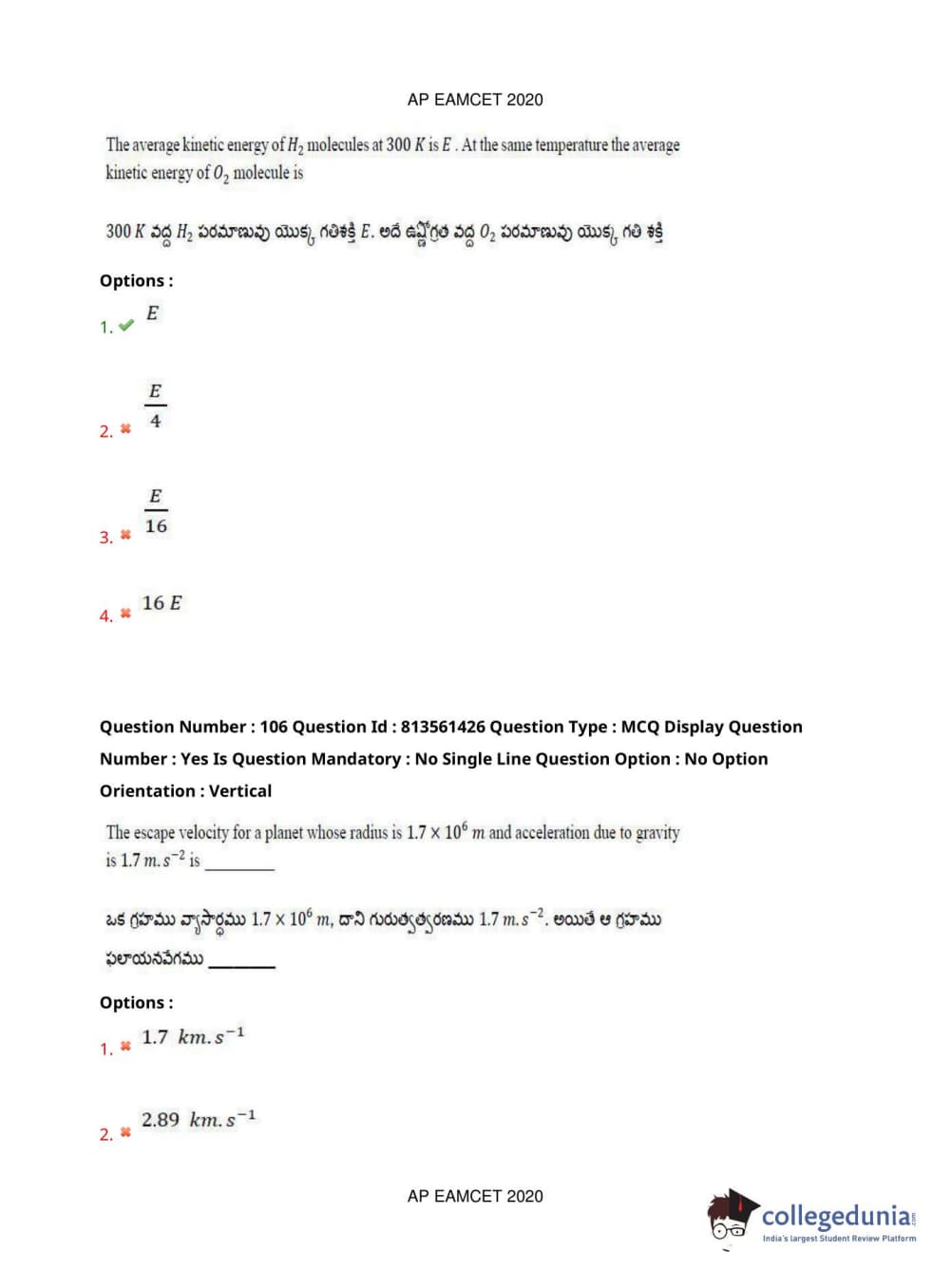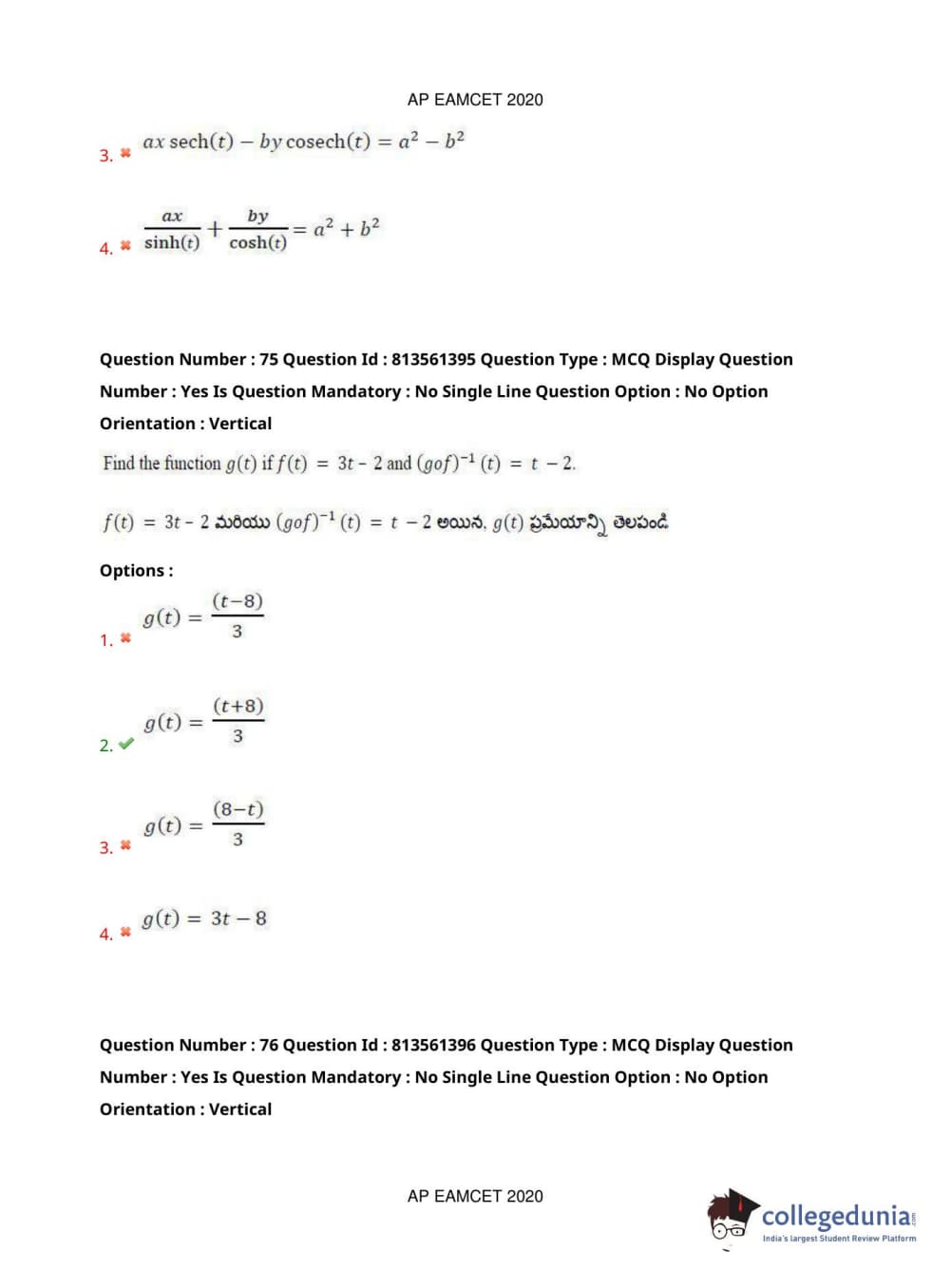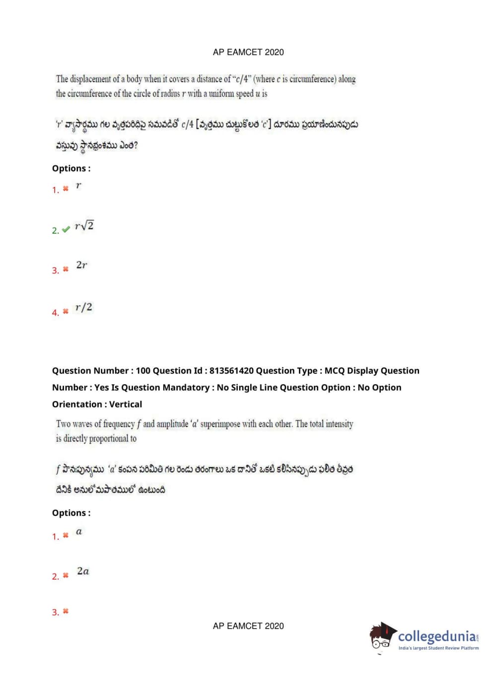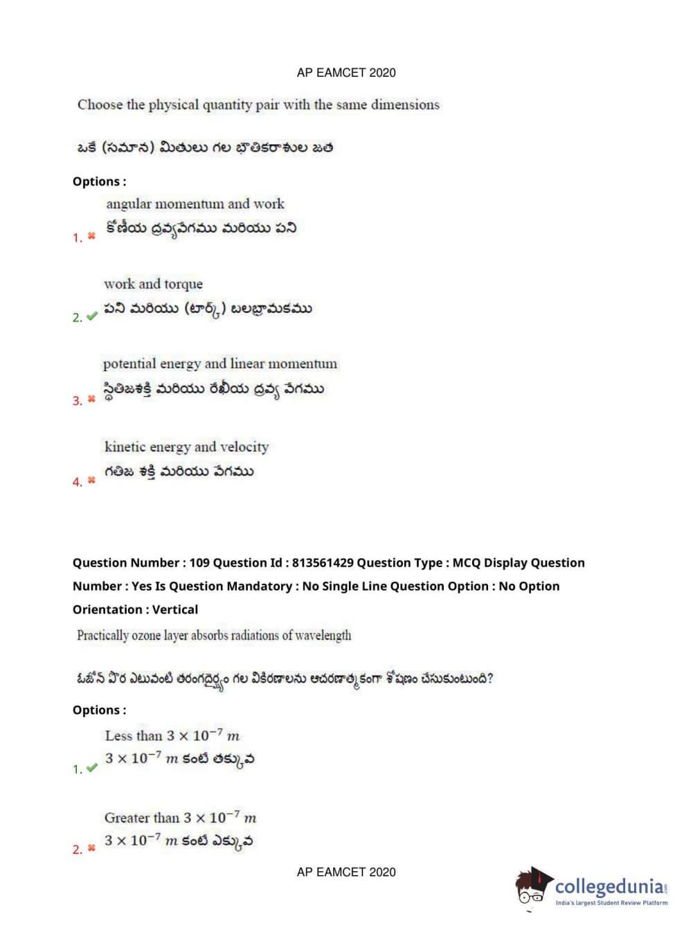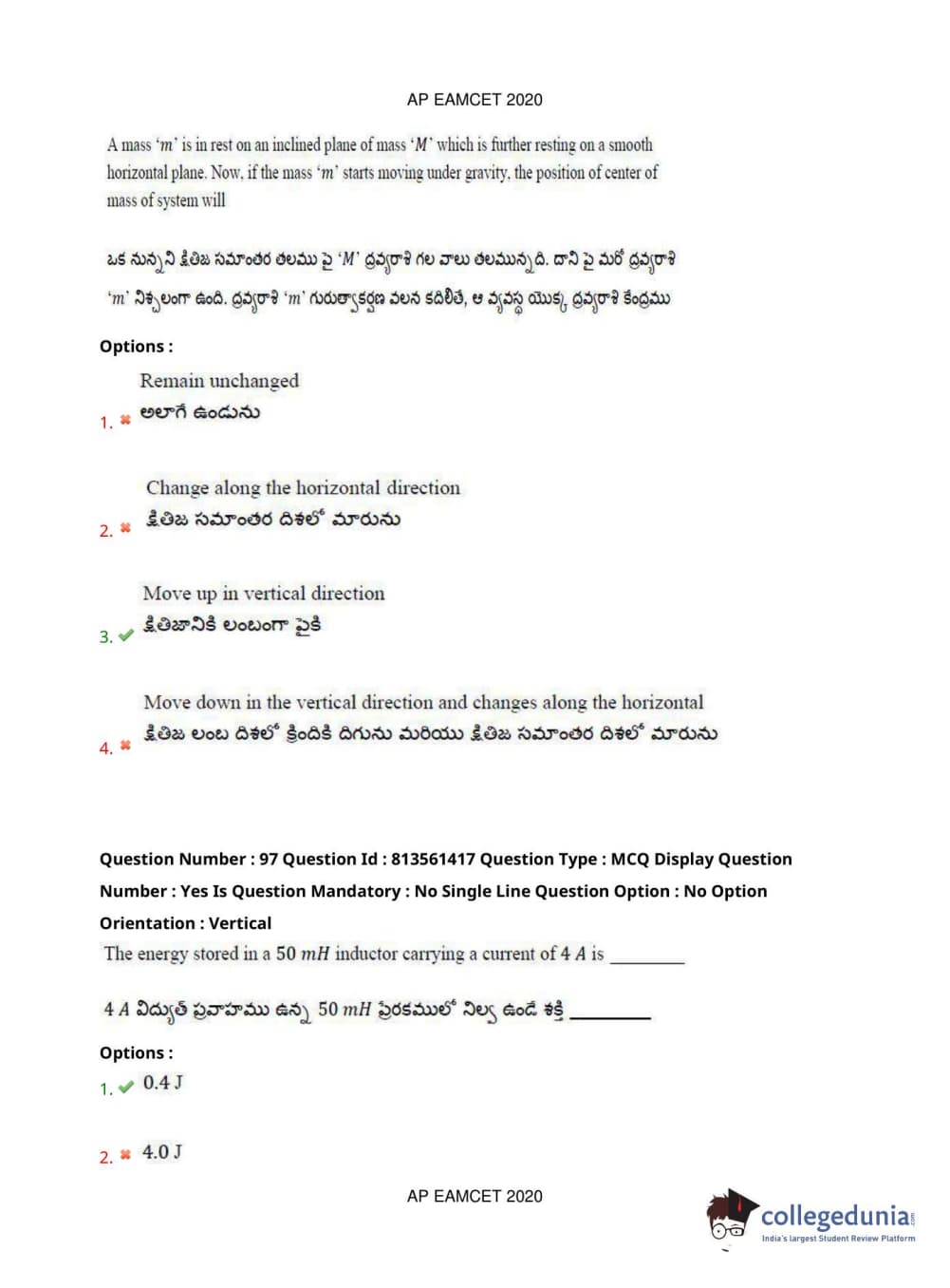 AP EAPCET 2020 Engineering Question Paper with Answer Key PDFs